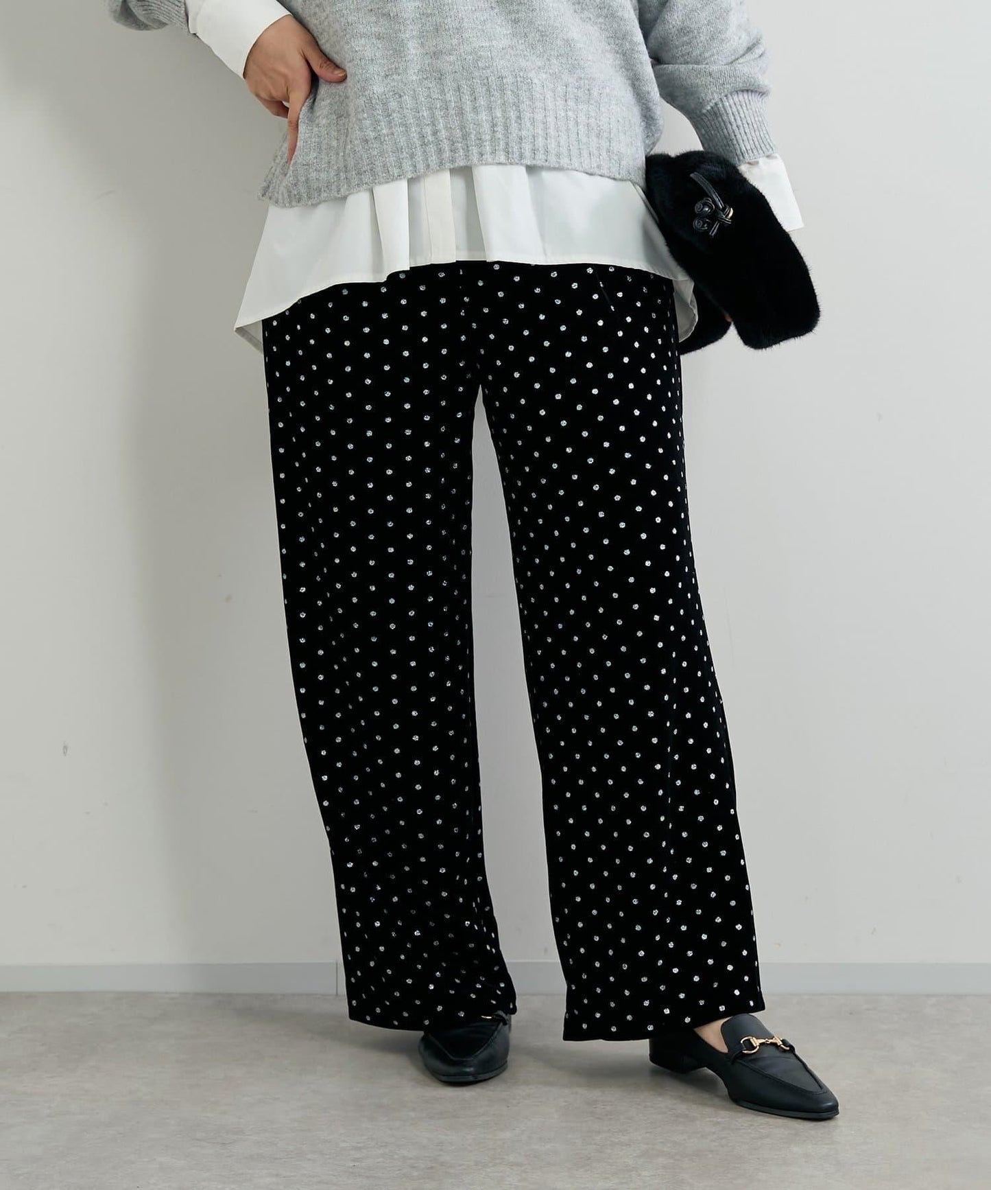 圓點圖案長褲,熠熠生輝。
