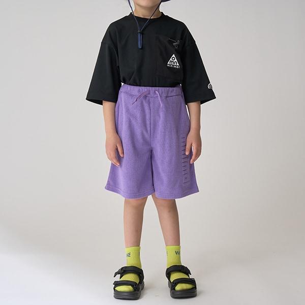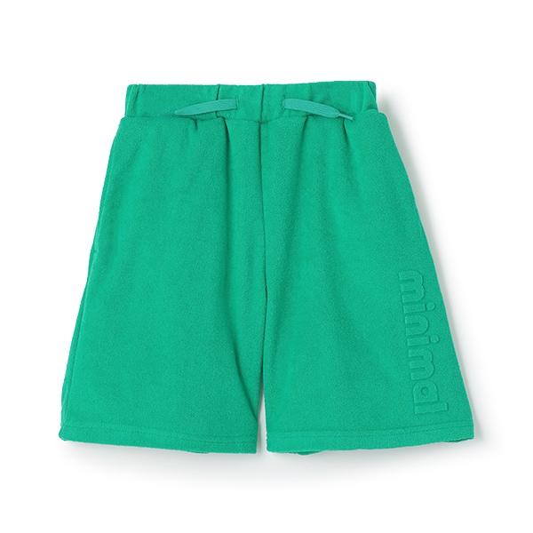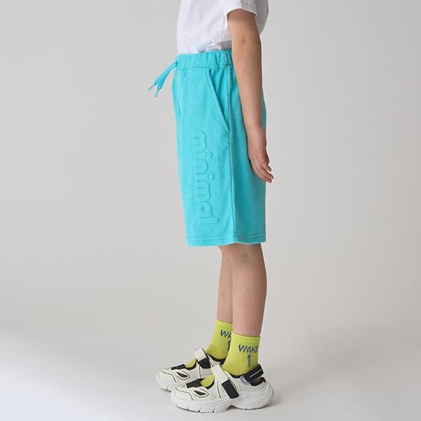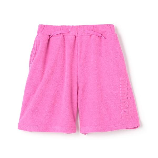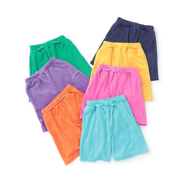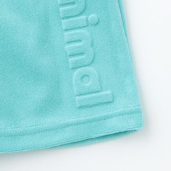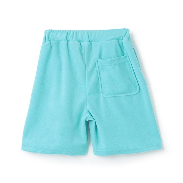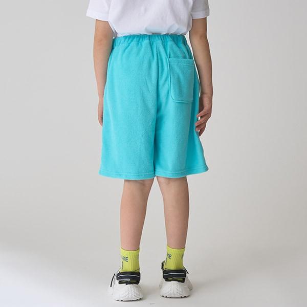 半截褲由柔軟蓬鬆的絨毛面料製成。