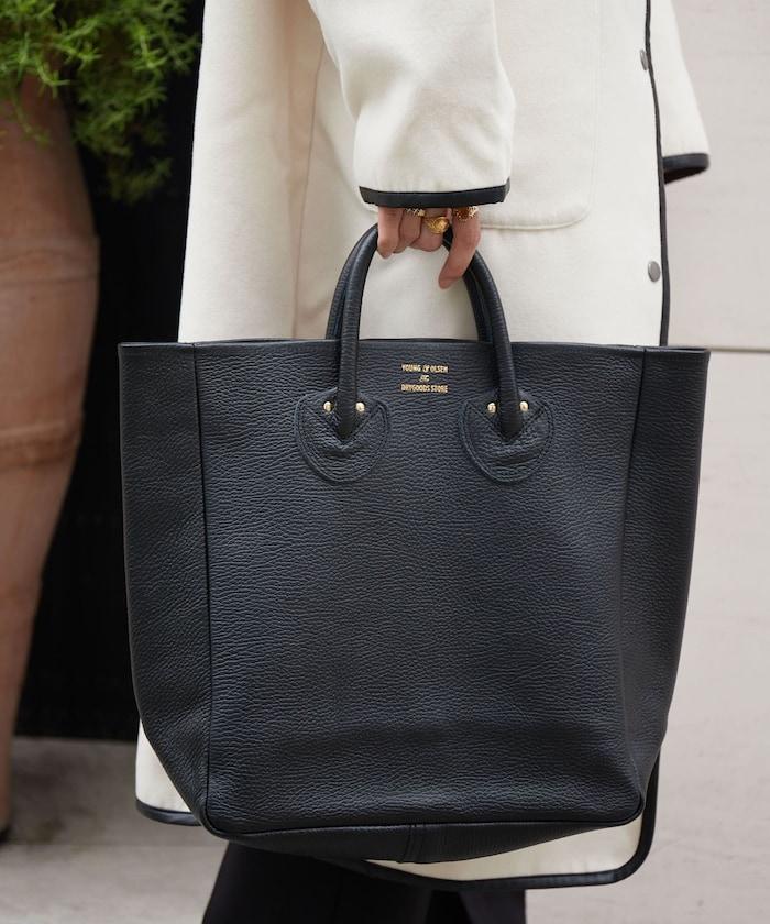 皮革表面的粒面處理使劃痕和其他痕跡不易察覺,大容量可容納大量 A4 大小的物品,使用起來非常方便。