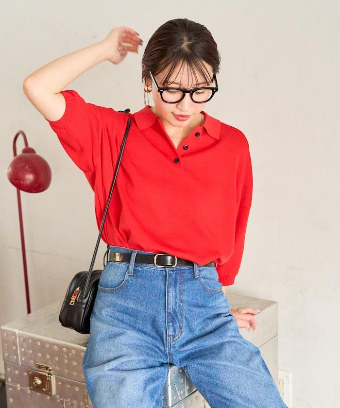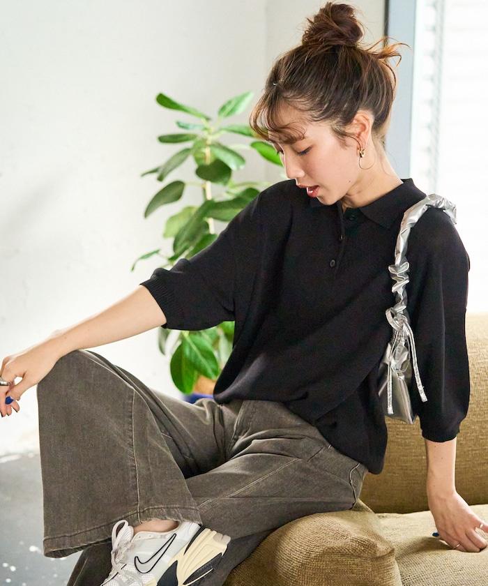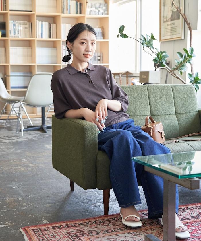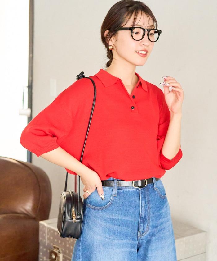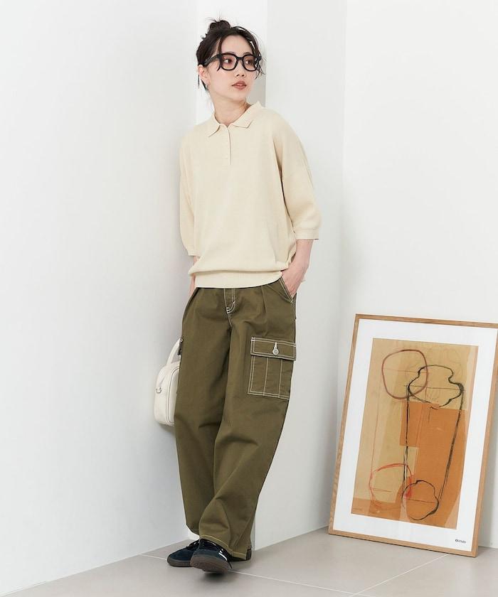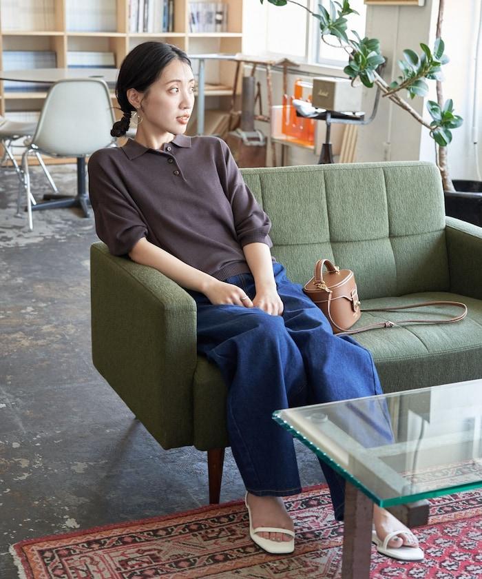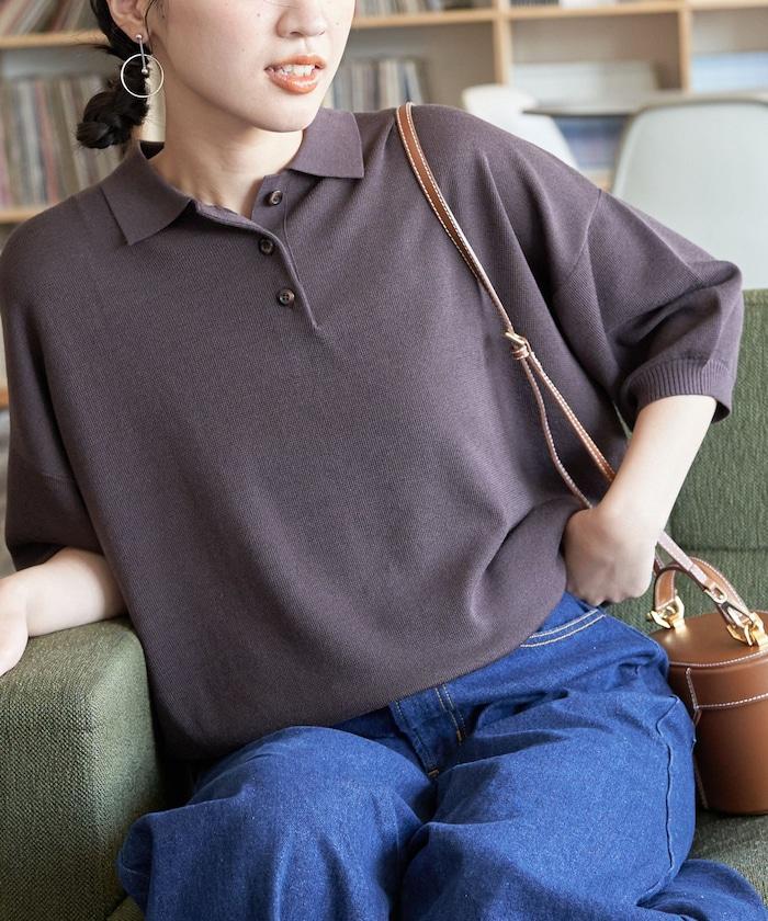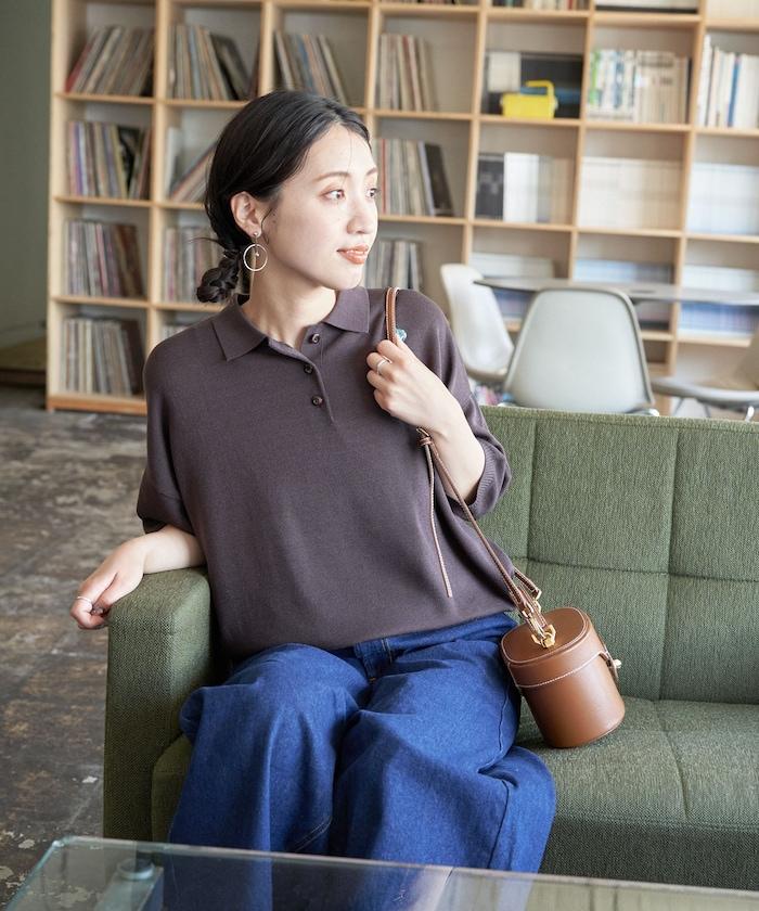 這款短袖 polo 針織衫根據下裝搭配的不同,給人完全不同的感覺。
