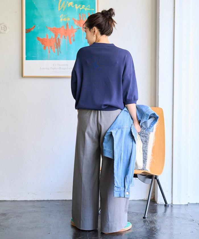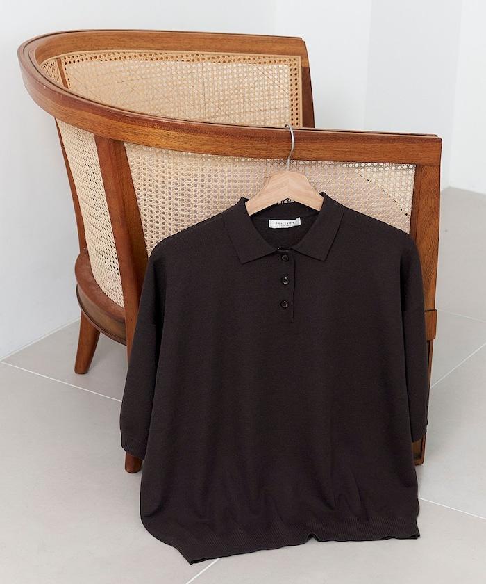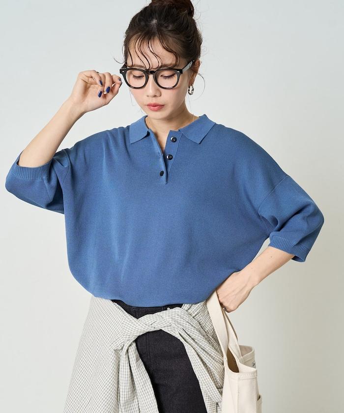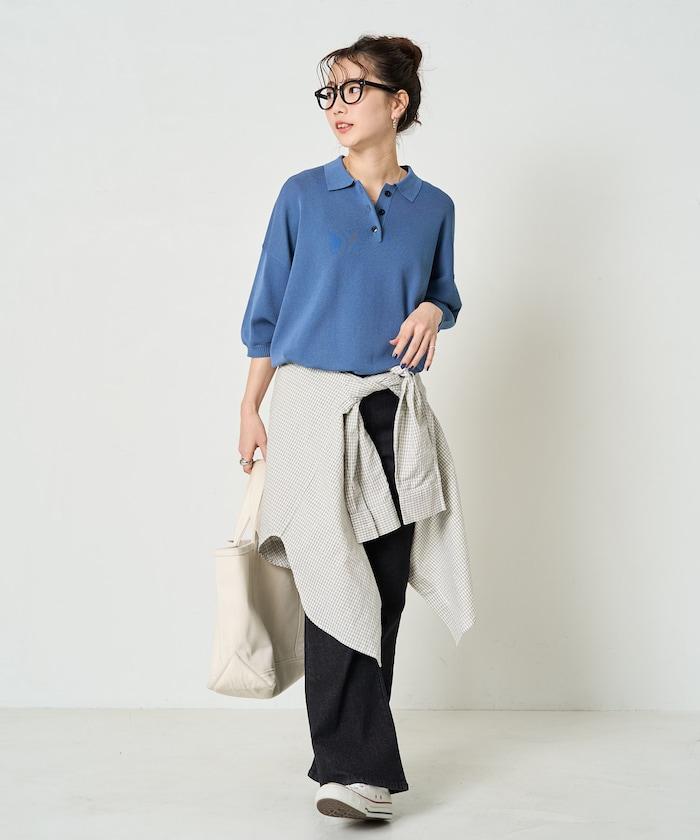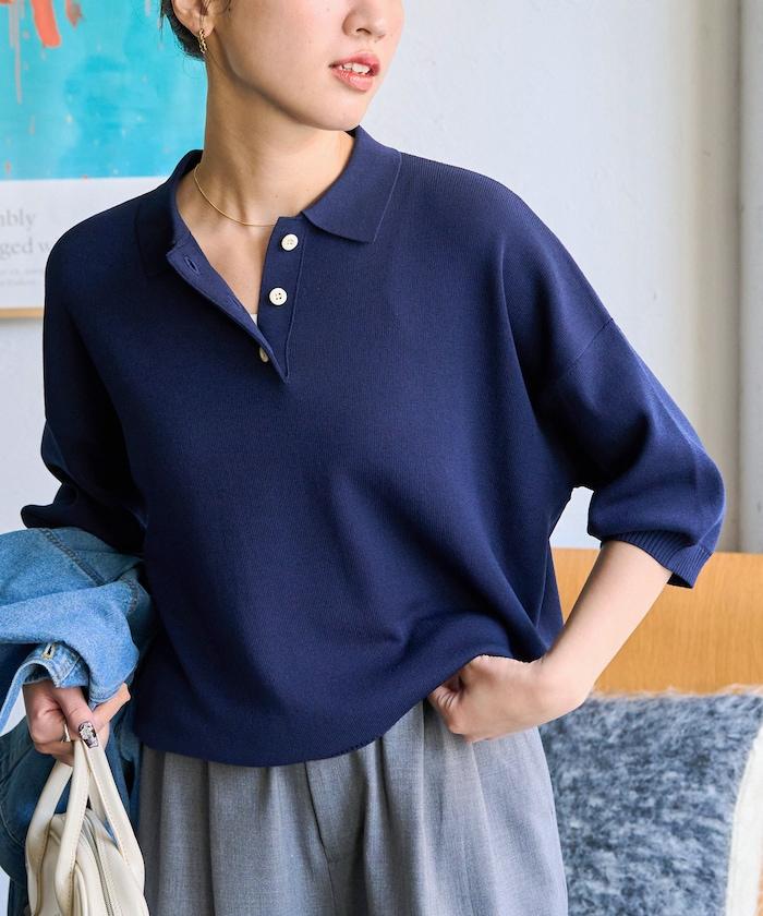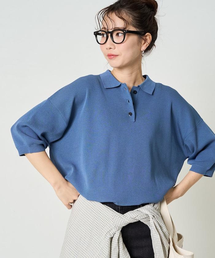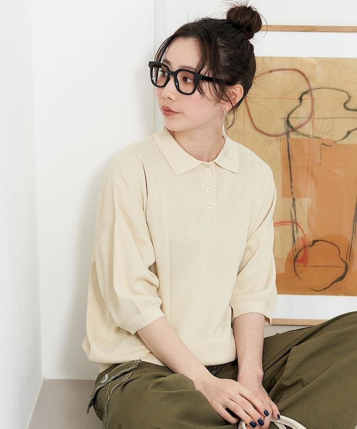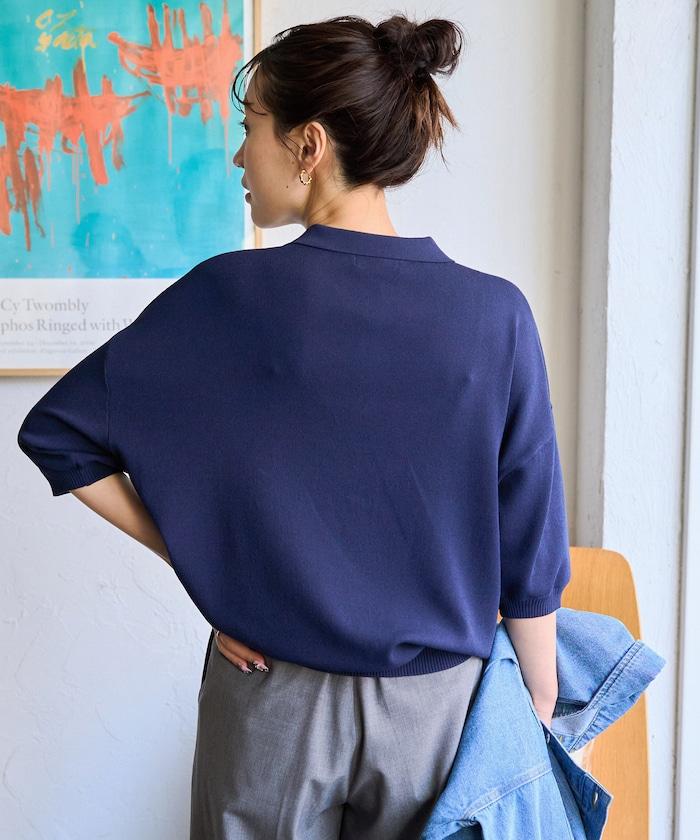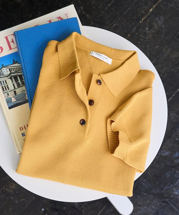這款短袖 polo 針織衫根據下裝搭配的不同,給人完全不同的感覺。