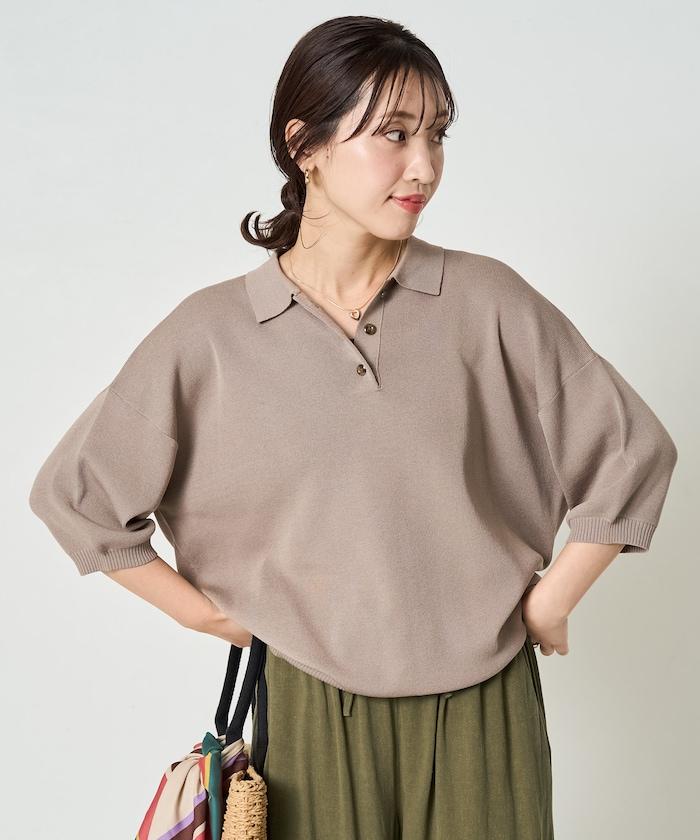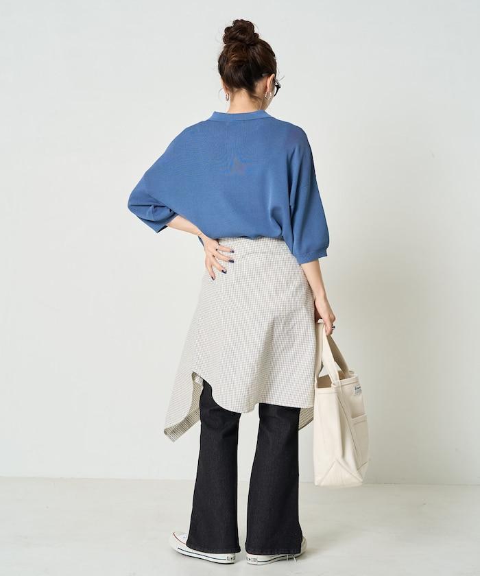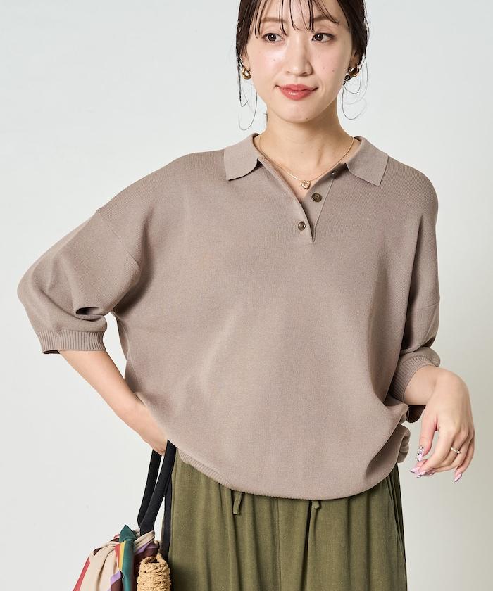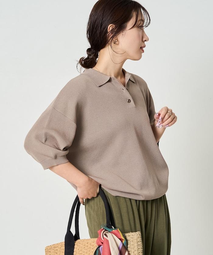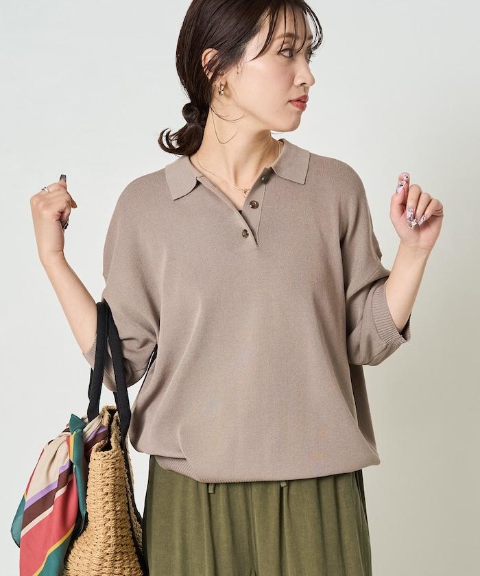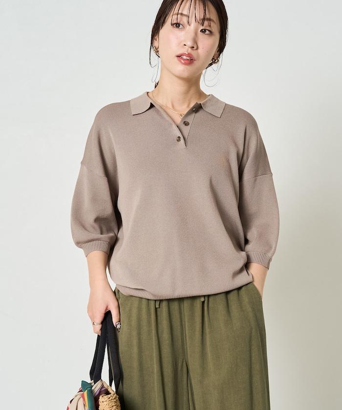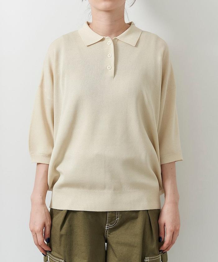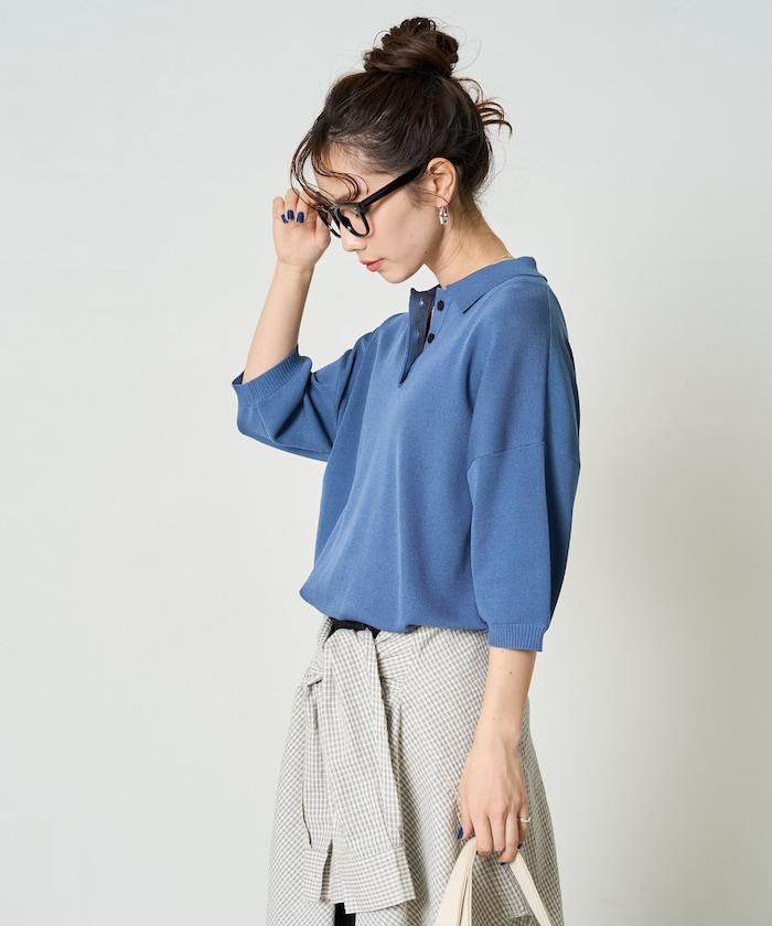 這款短袖 polo 針織衫根據下裝搭配的不同,給人完全不同的感覺。
