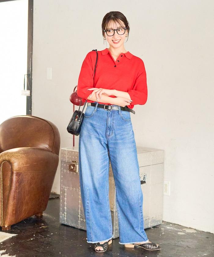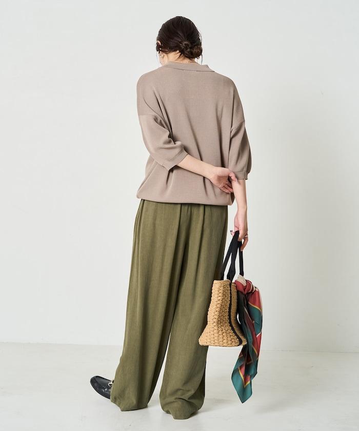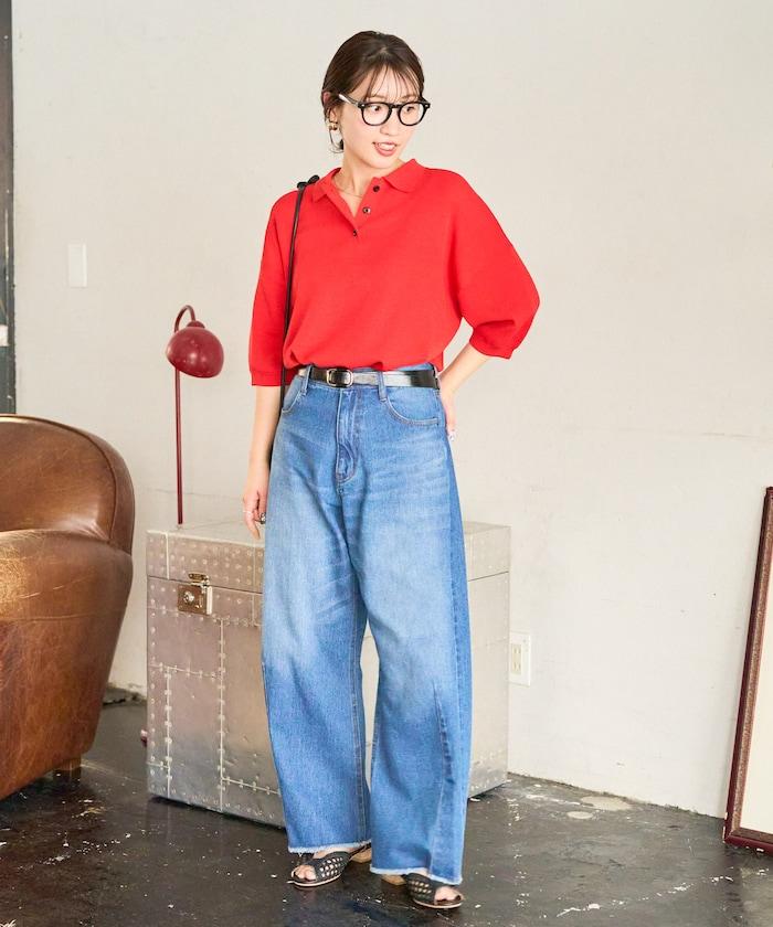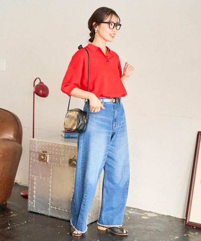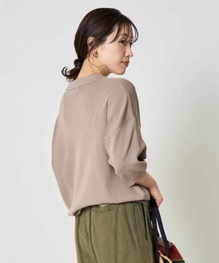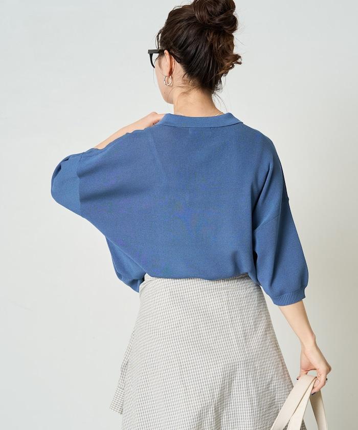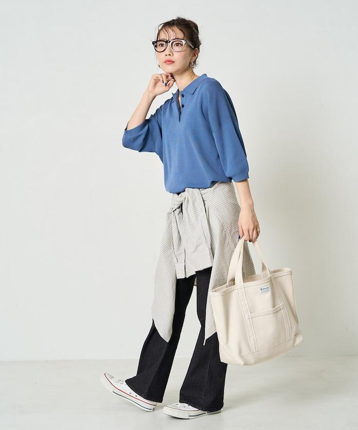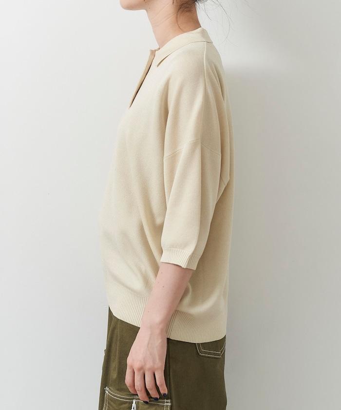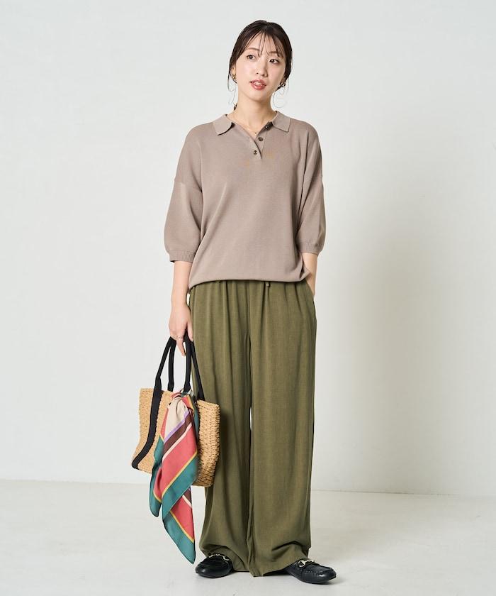 這款短袖 polo 針織衫根據下裝搭配的不同,給人完全不同的感覺。