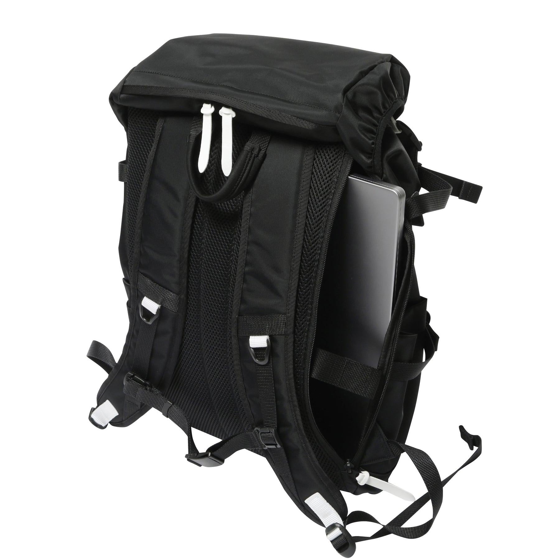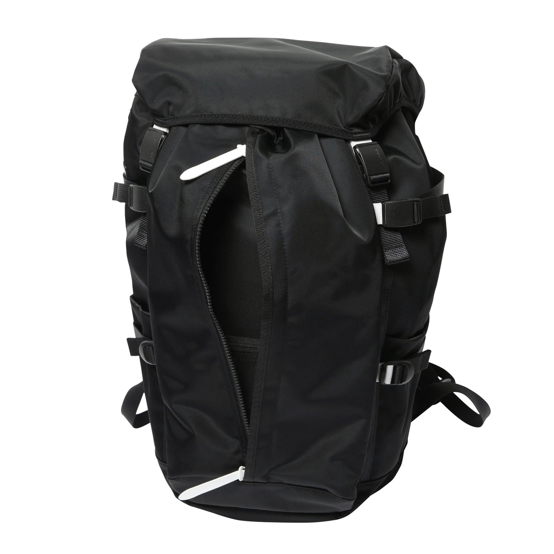 裹包式揹包,配有大容量主倉。主隔層可從背部進入。前部和頂部的多個口袋提供了出色的存儲空間,可巧妙地收納個人電腦和日常用品,是通勤或旅行的理想之選。SHATI 系列採用光滑閃亮的尼龍質地,讓人聯想到虎鯨,包身採用單色設計,以黑色為主色調,拉鍊頭和尼龍帶均為白色。