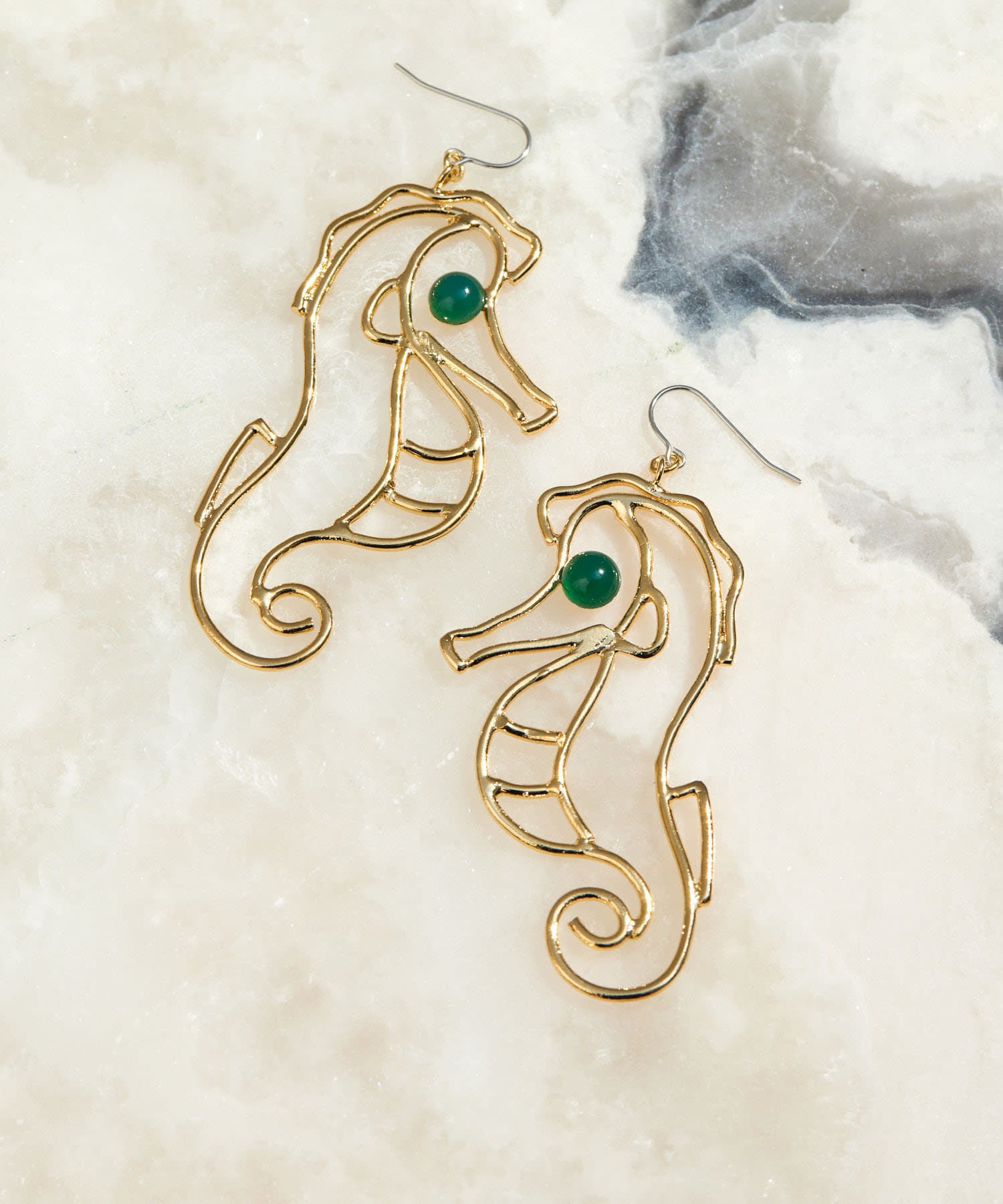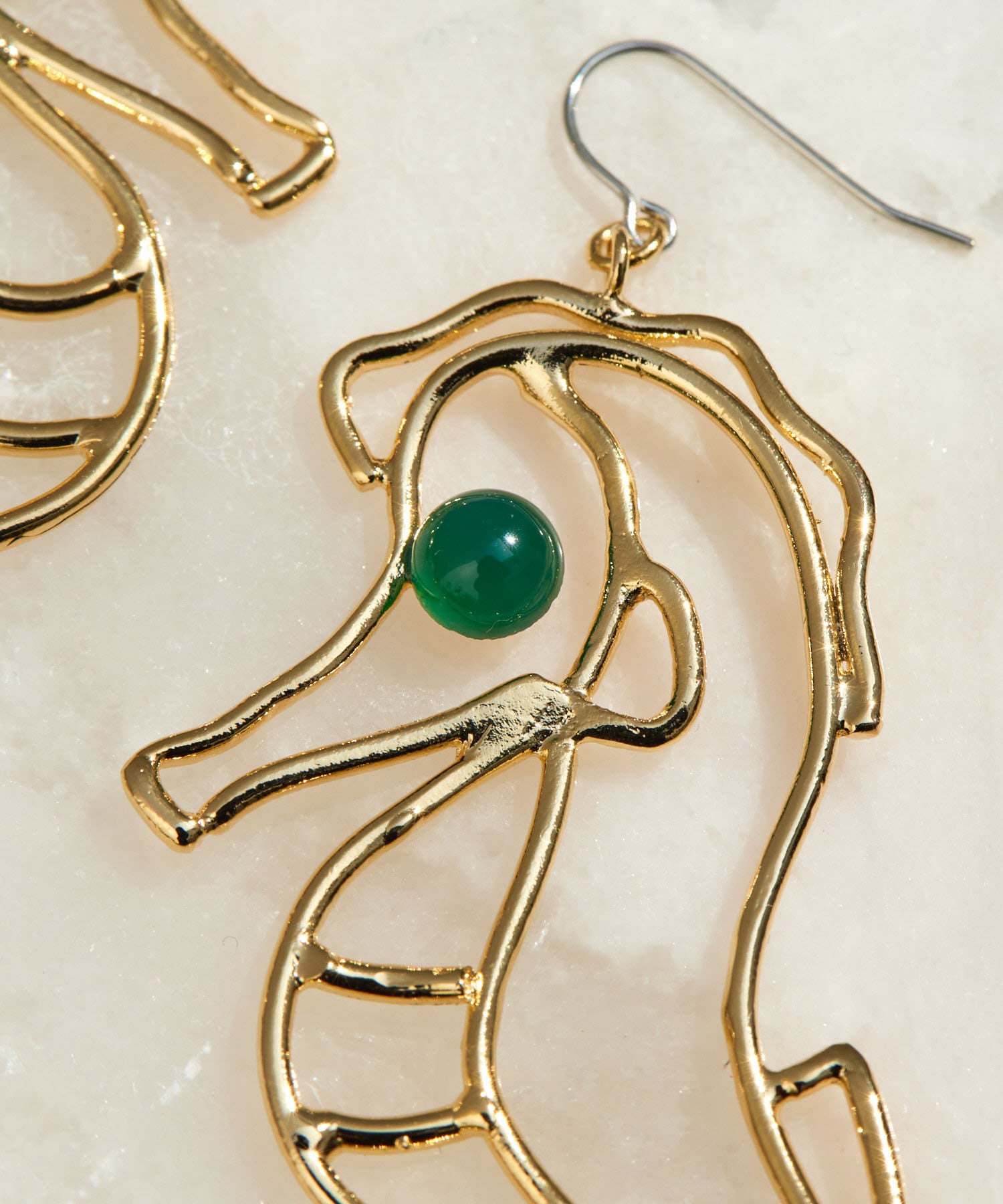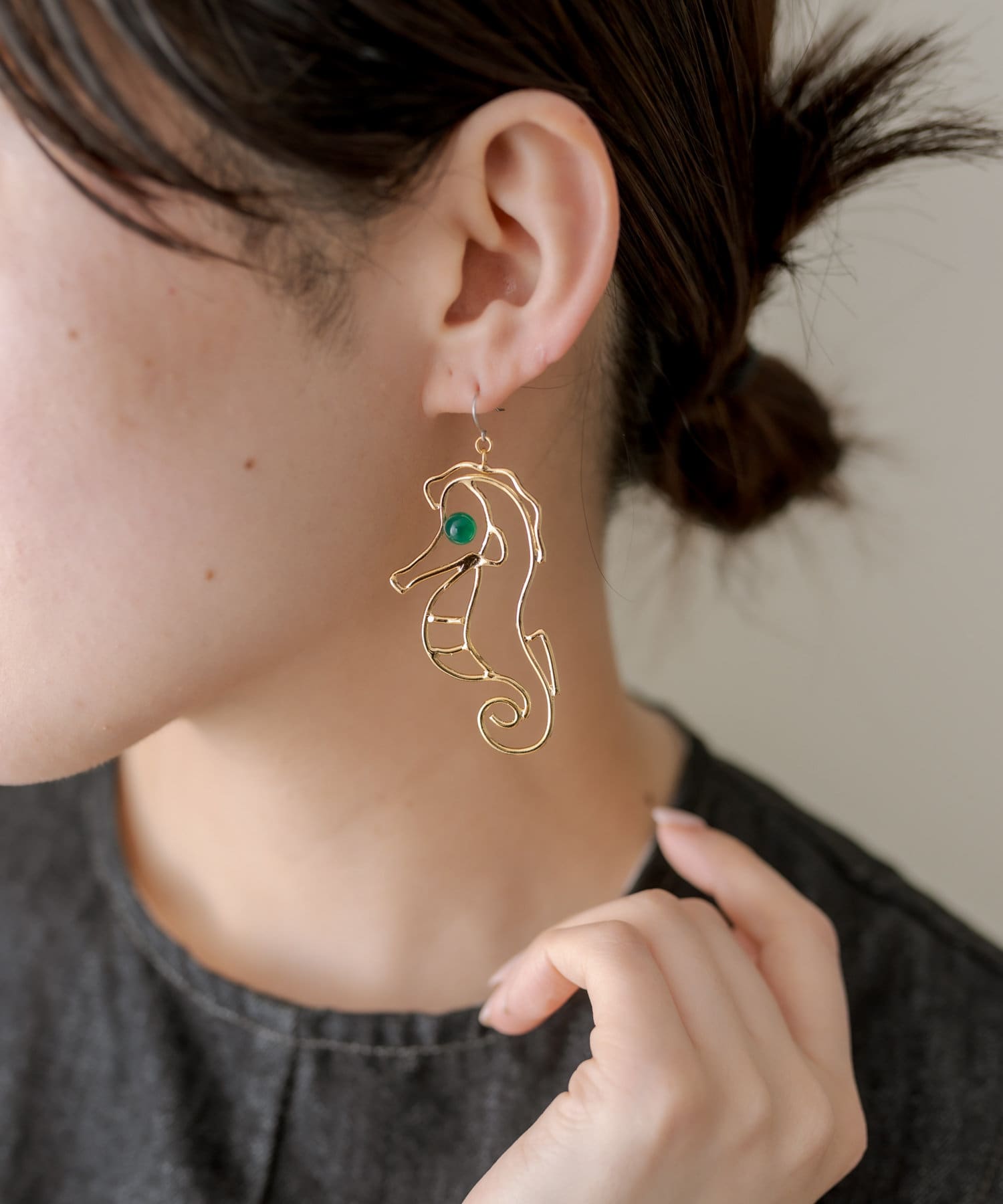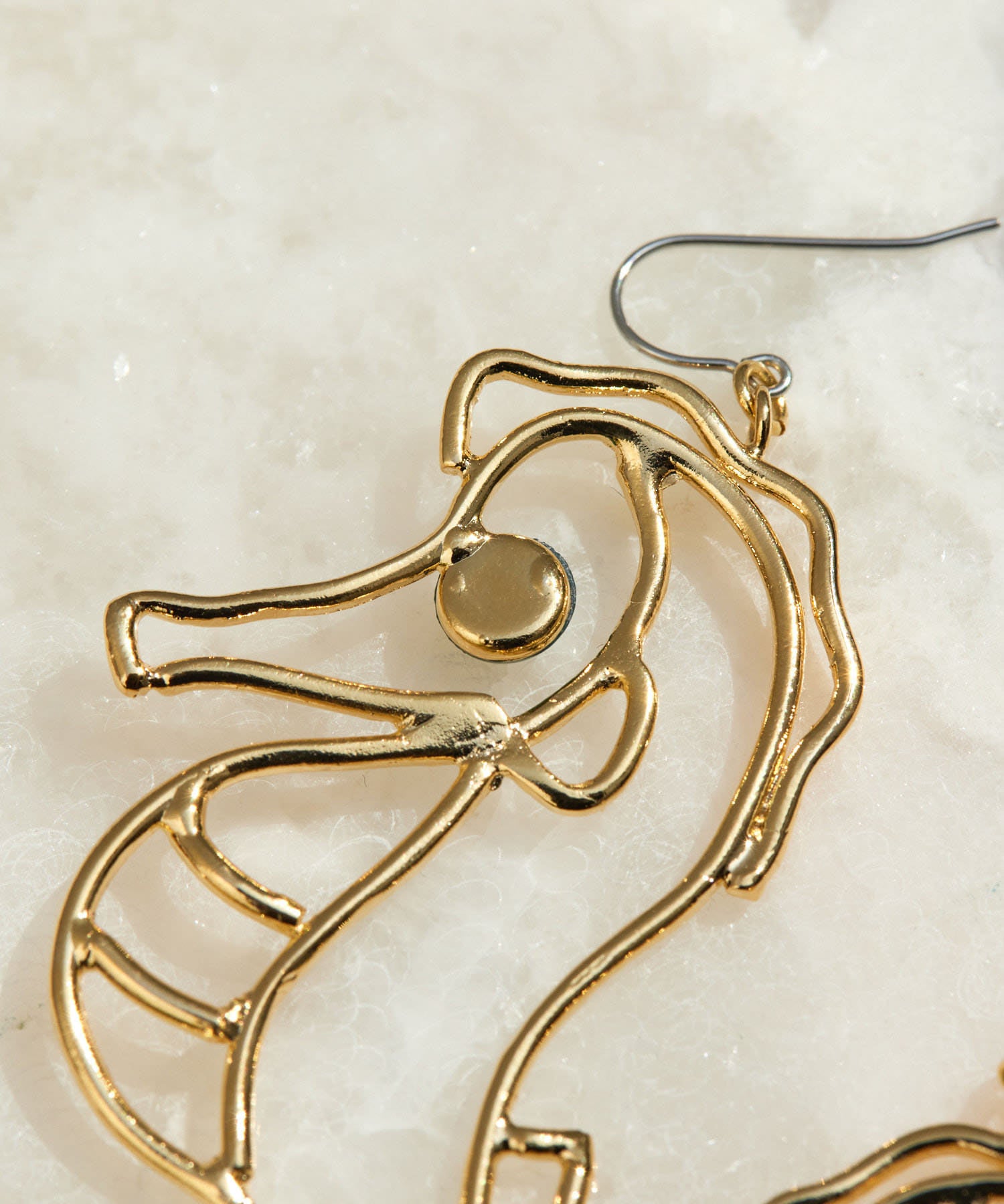 這款耳環上的海馬和天使魚圖案採用了線條設計。