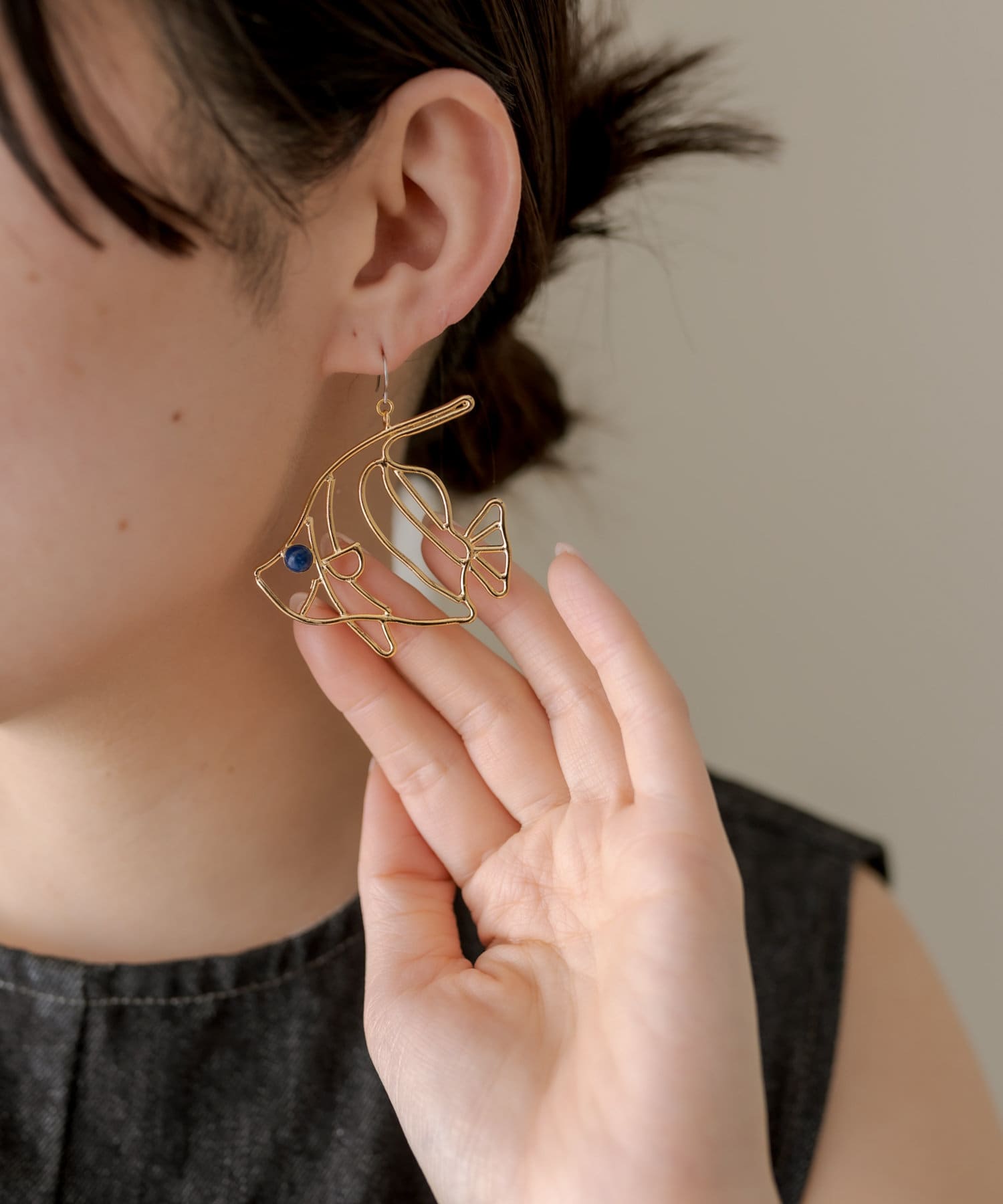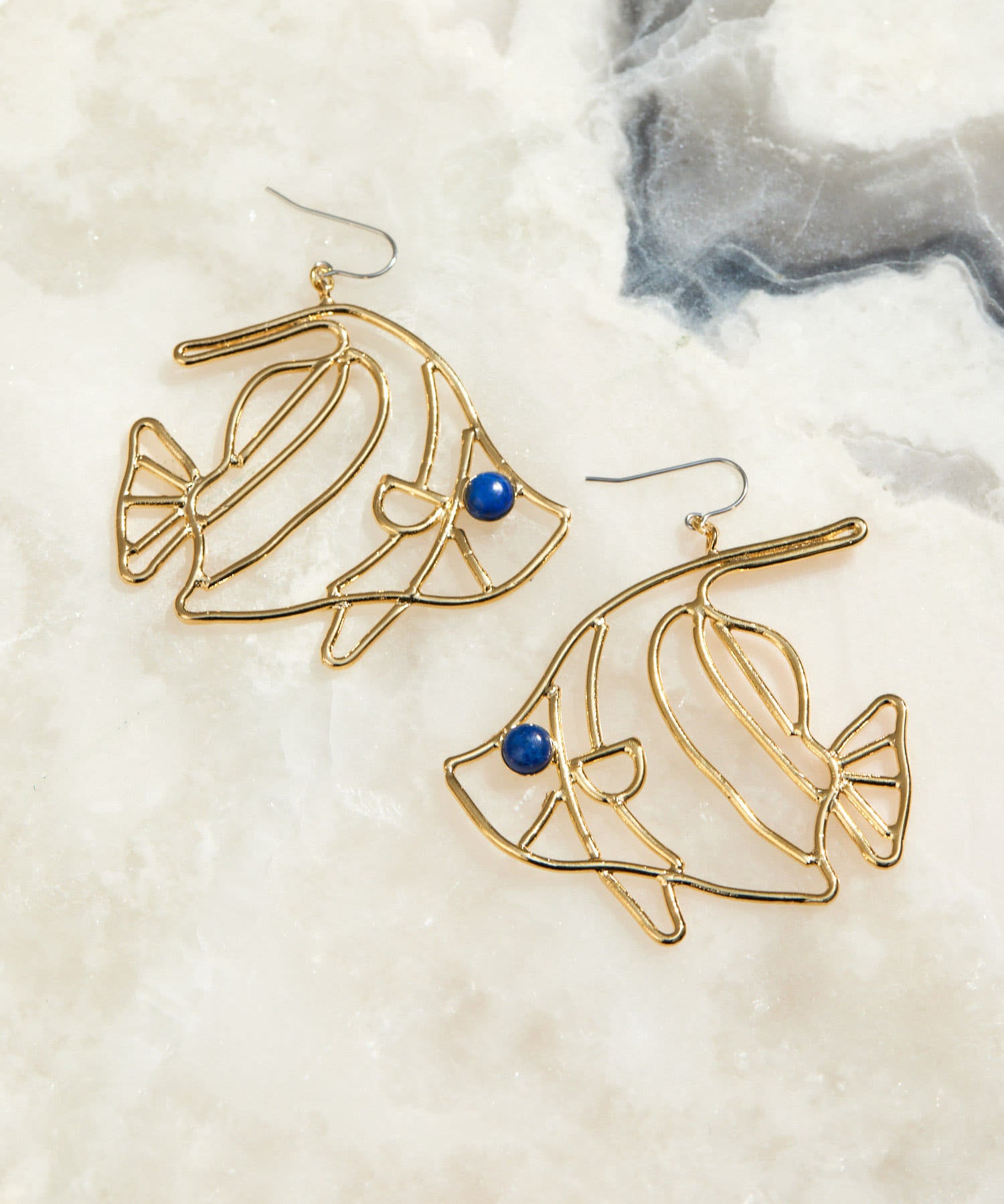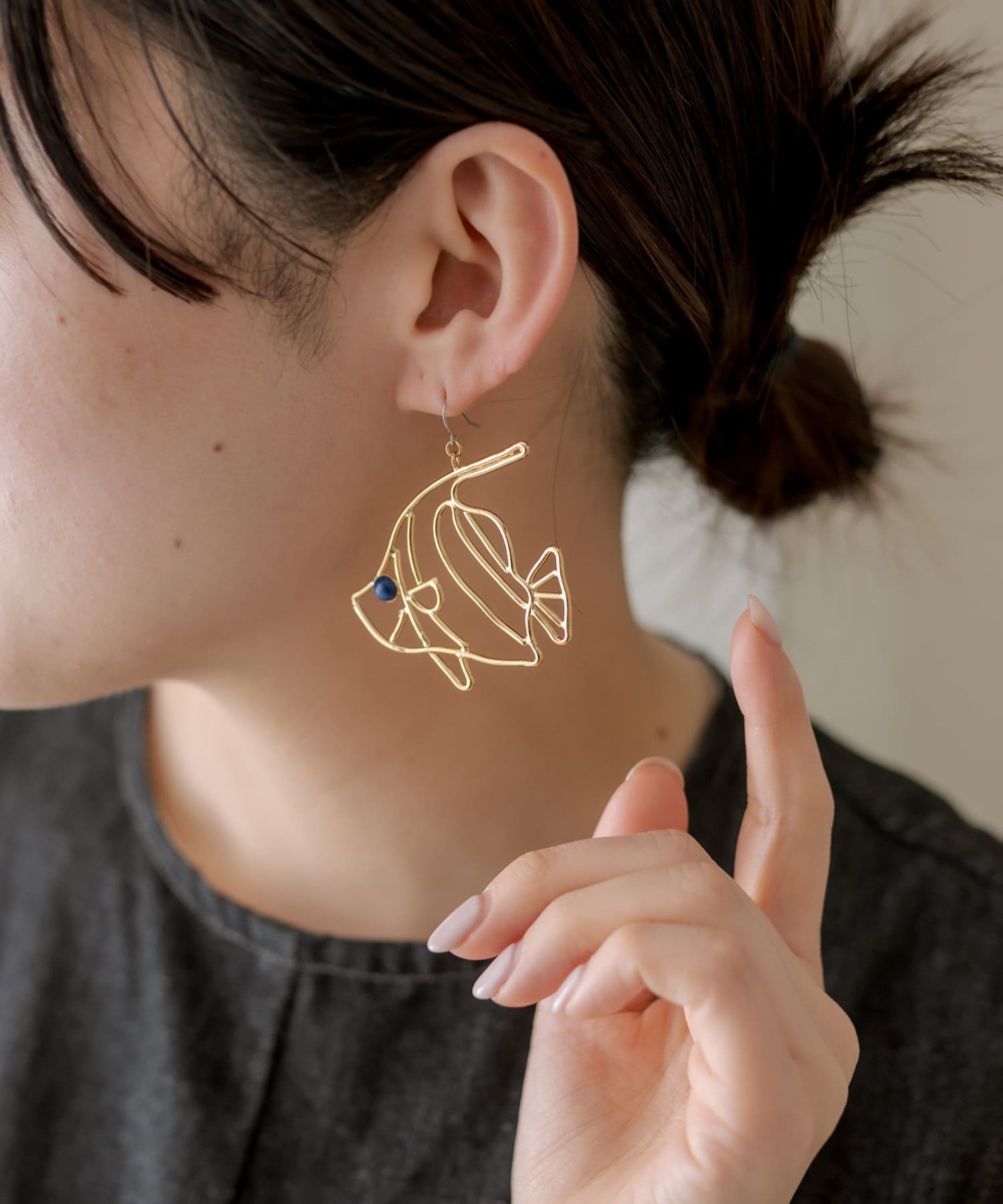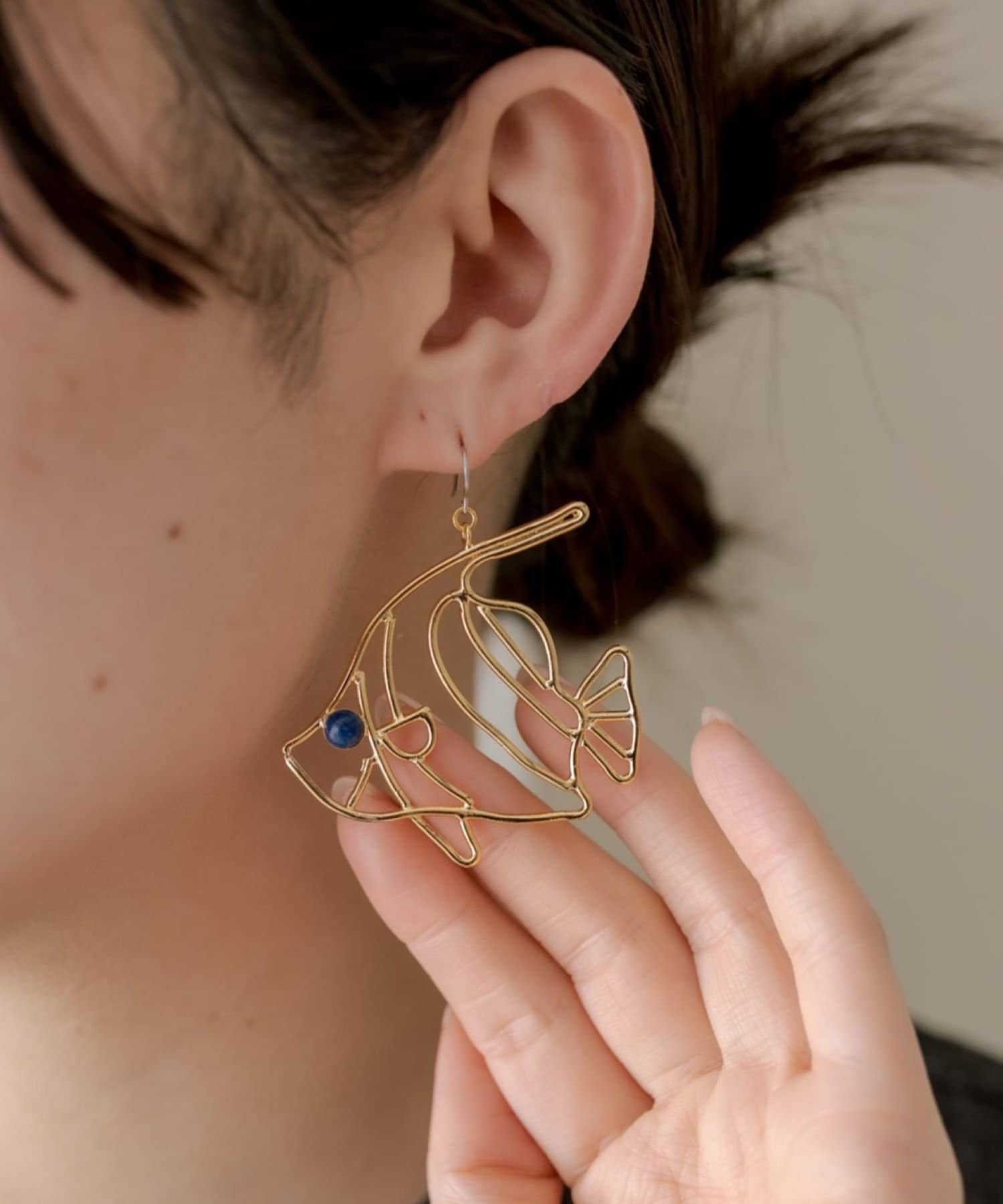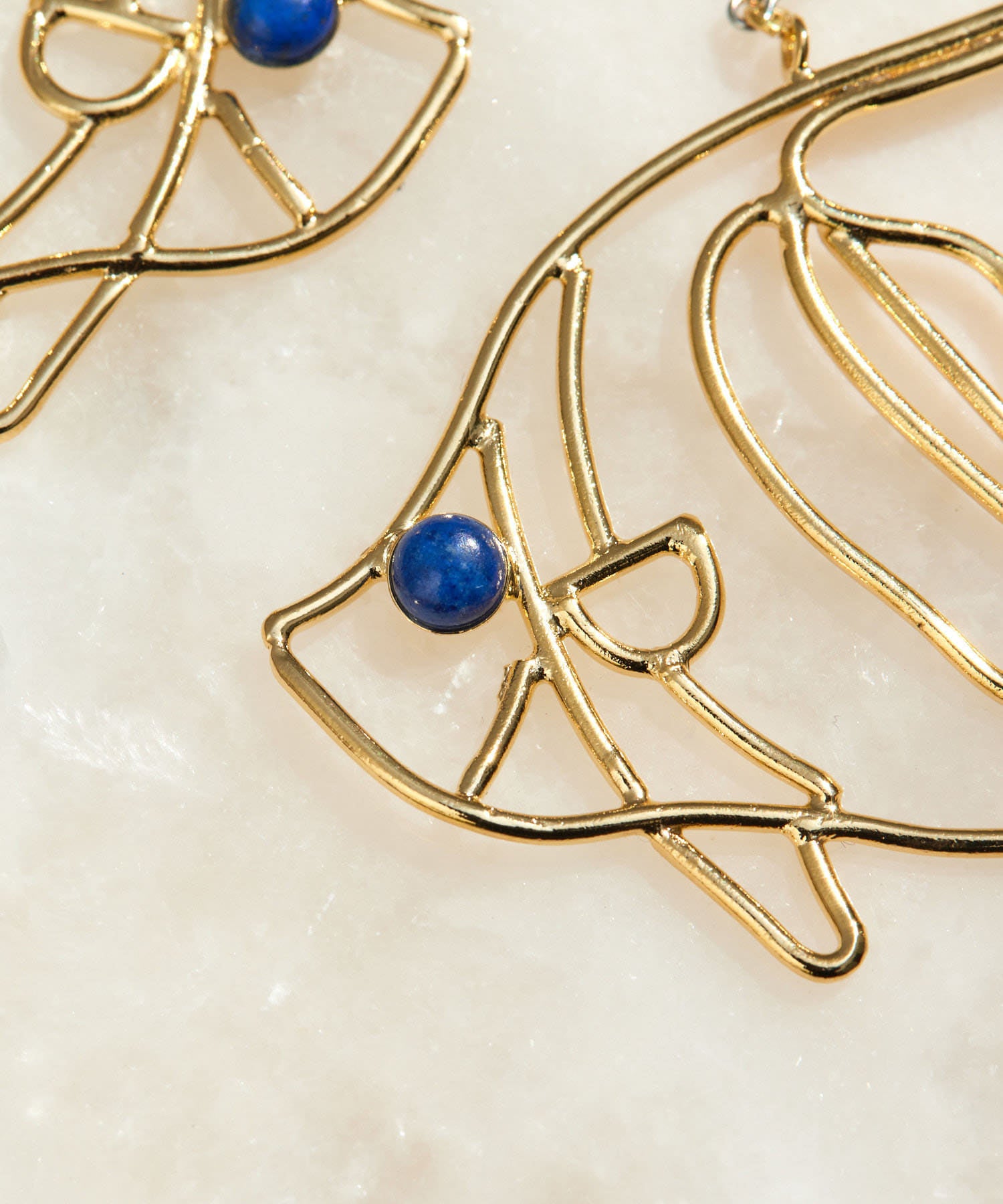 這款耳環上的海馬和天使魚圖案採用了線條設計。