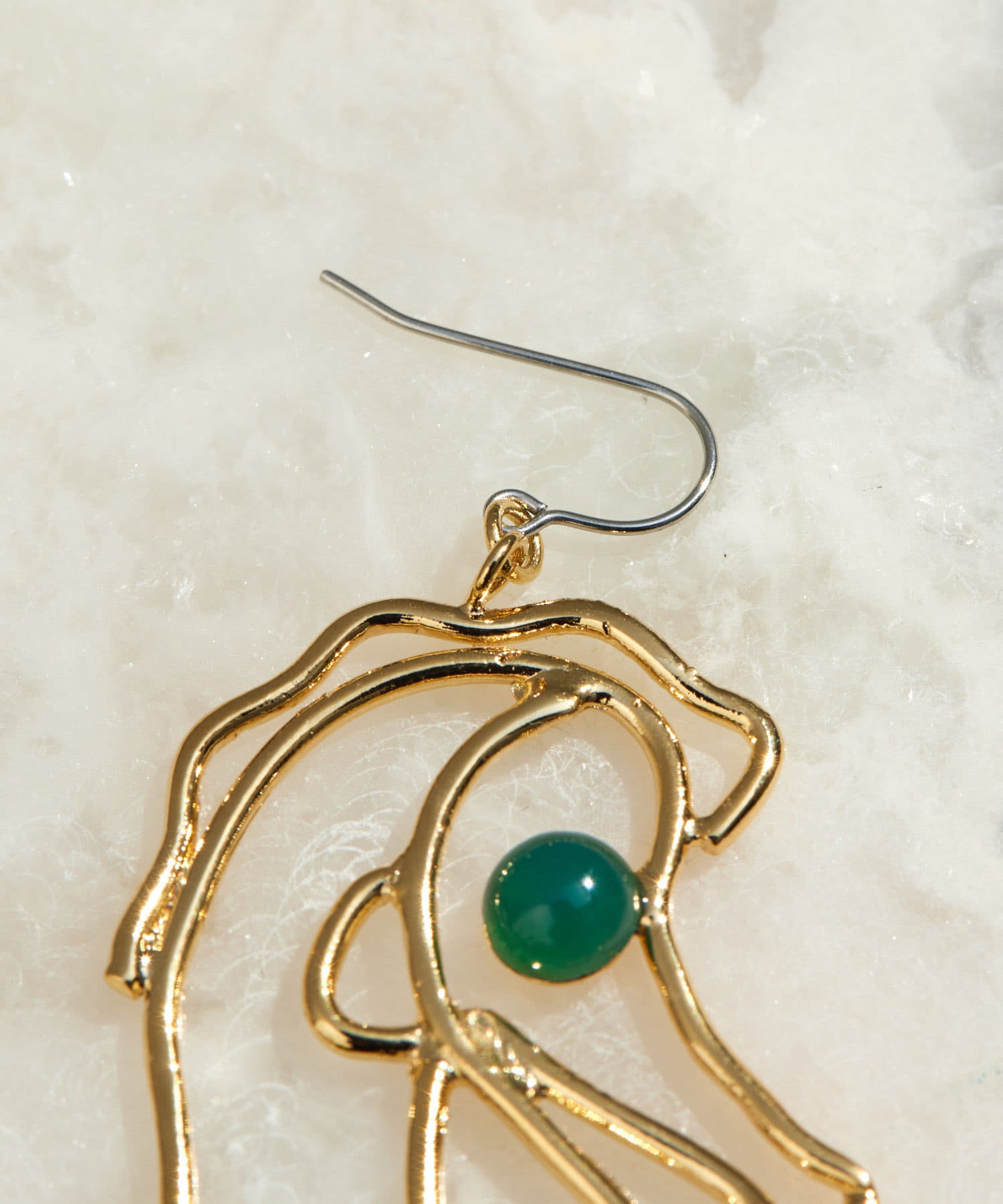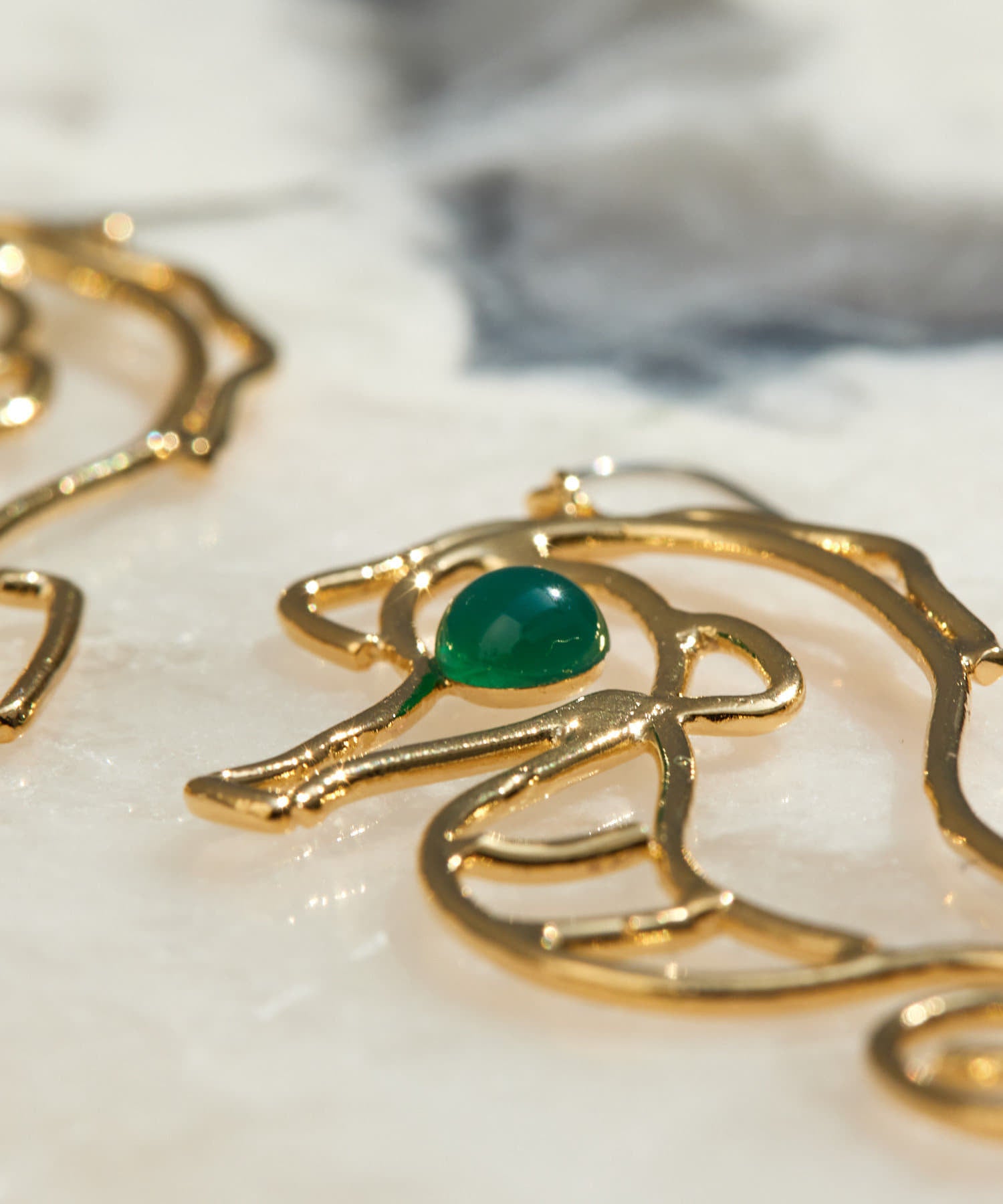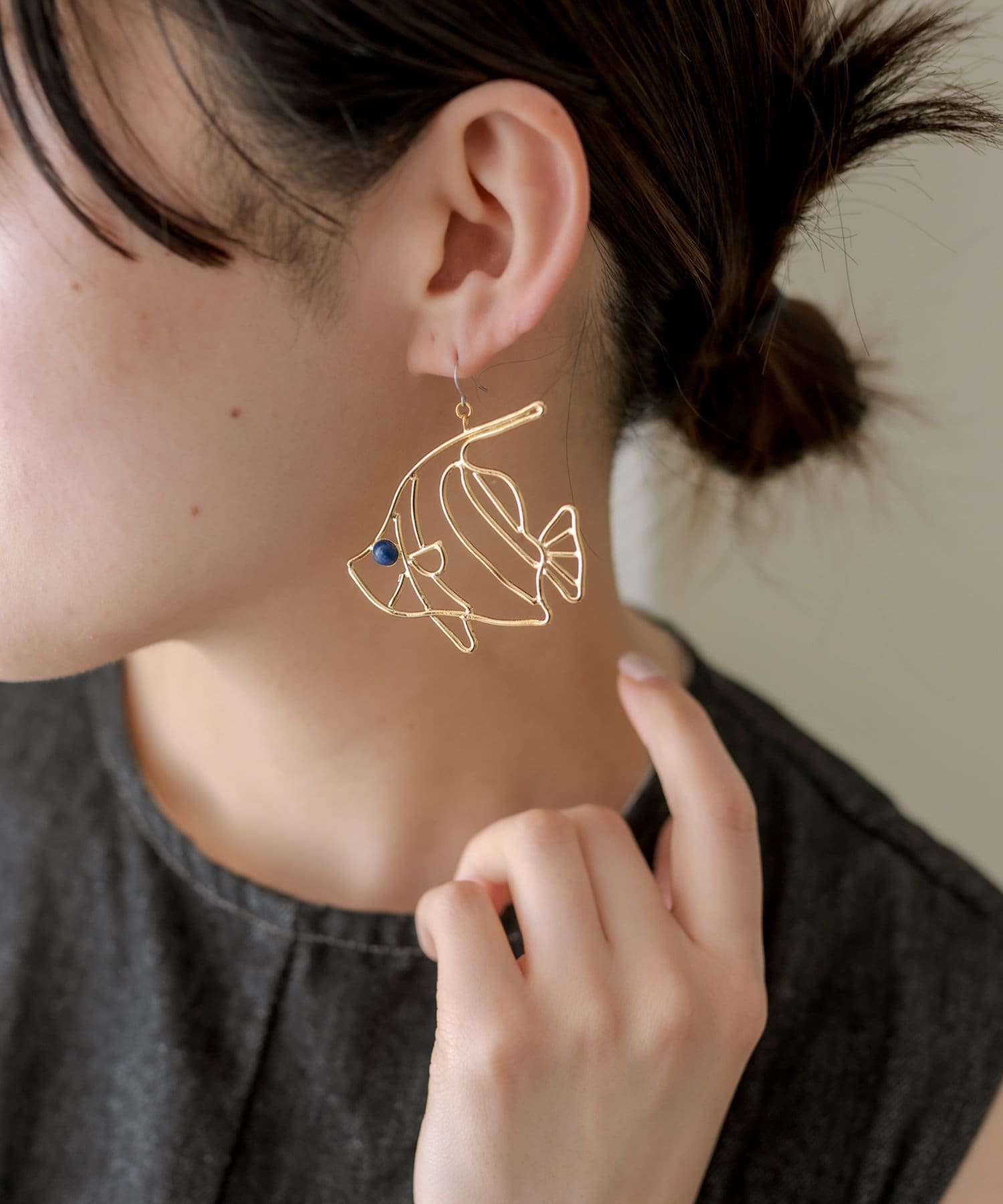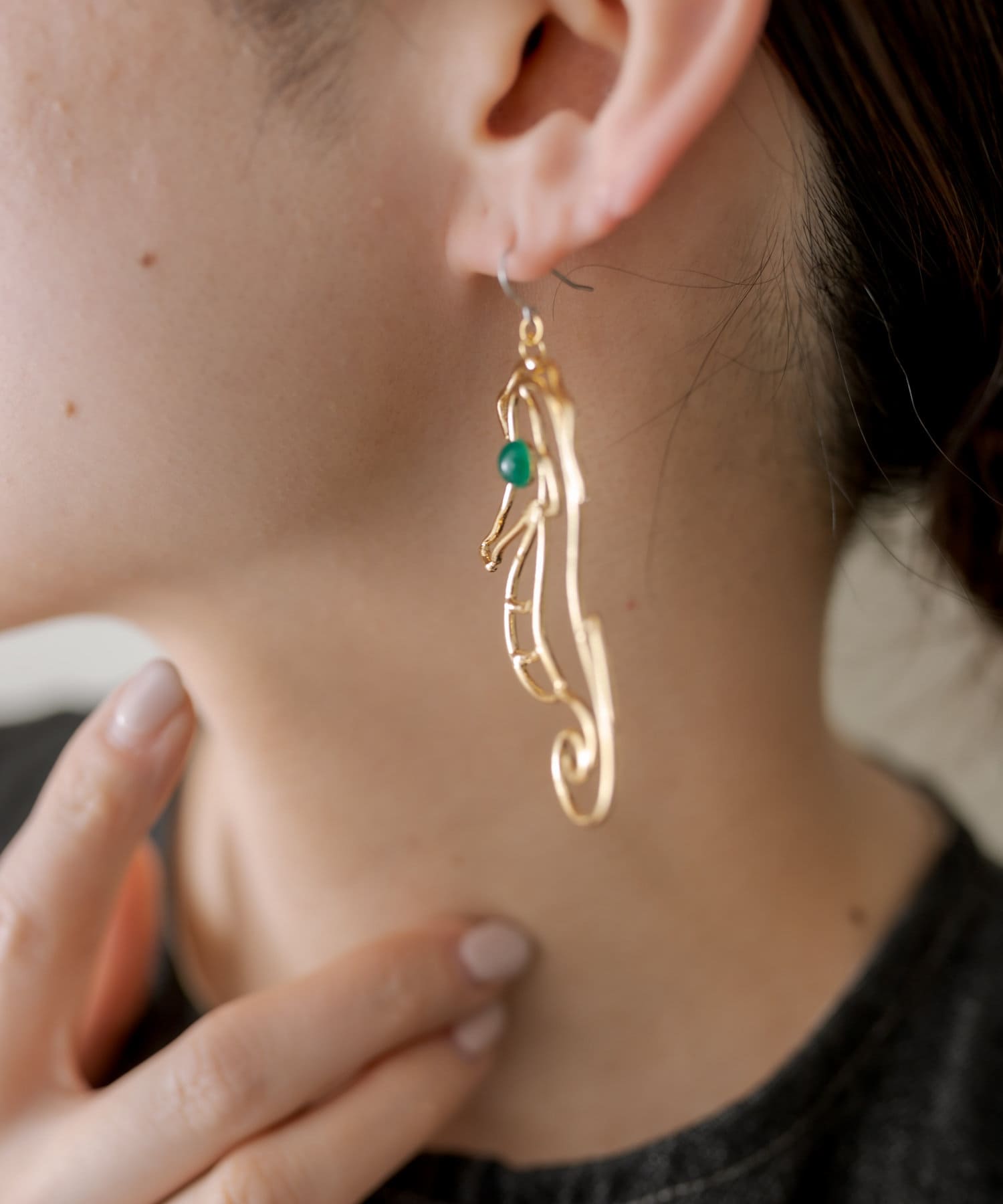 這款耳環上的海馬和天使魚圖案採用了線條設計。
