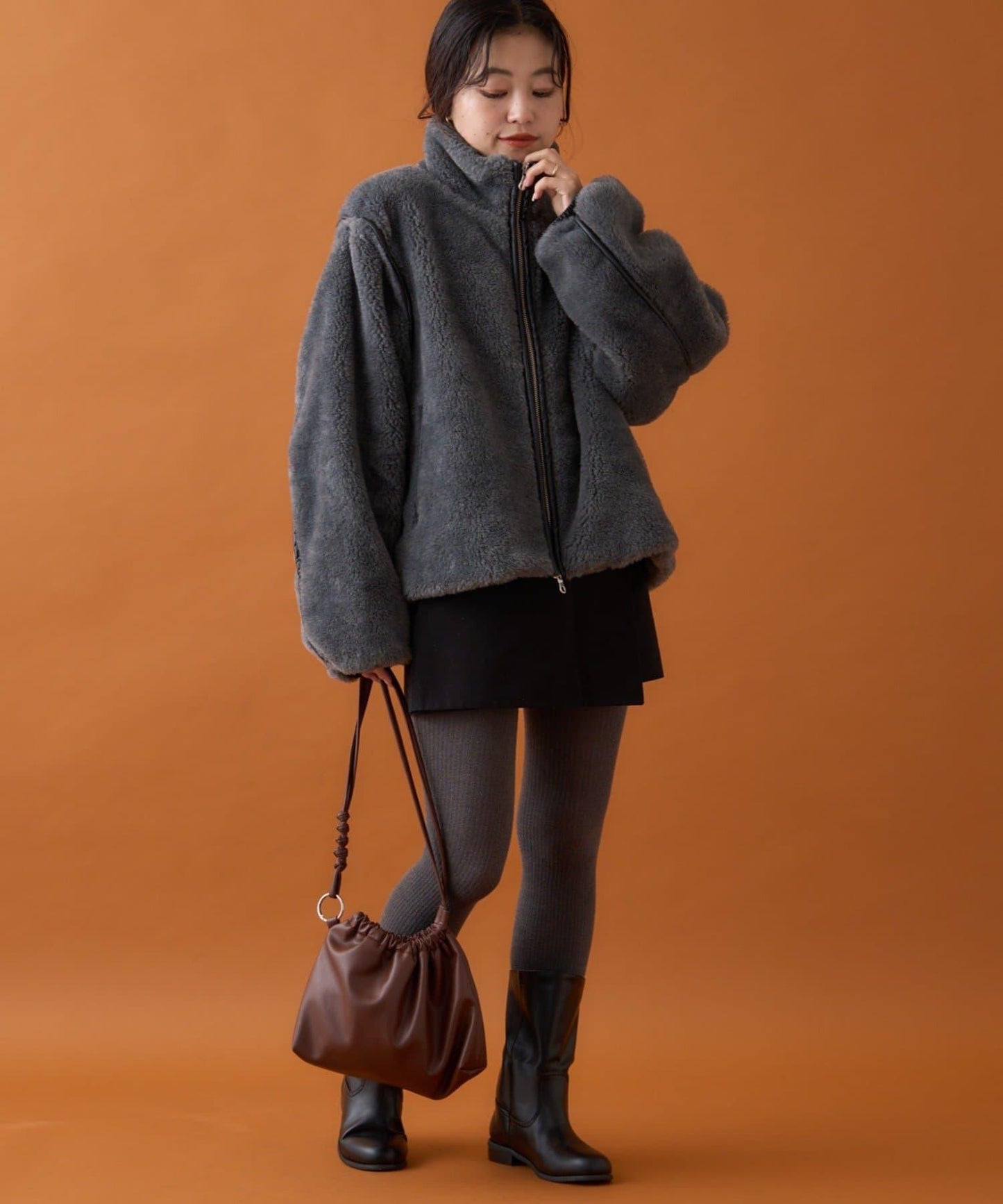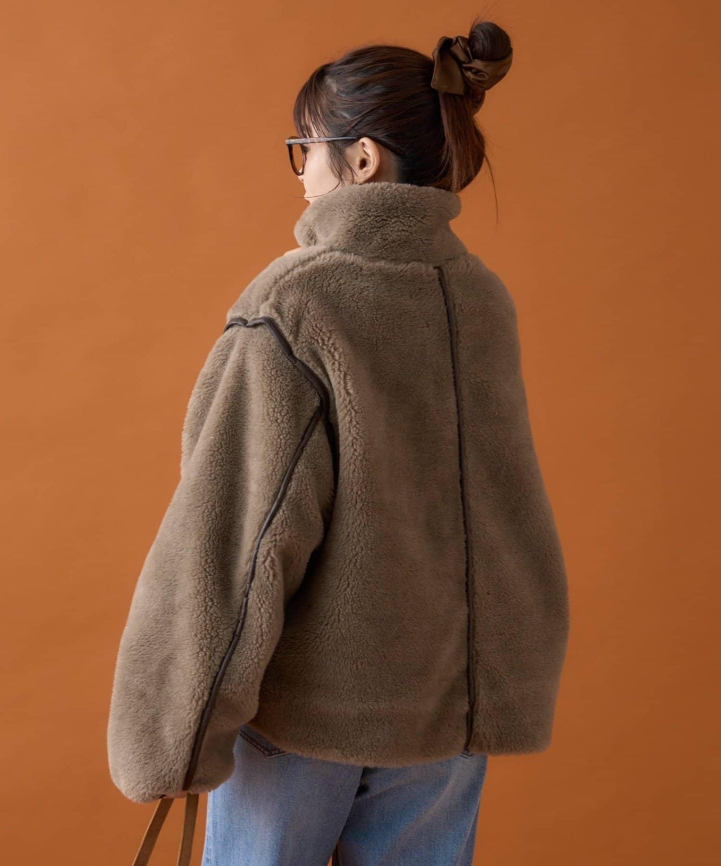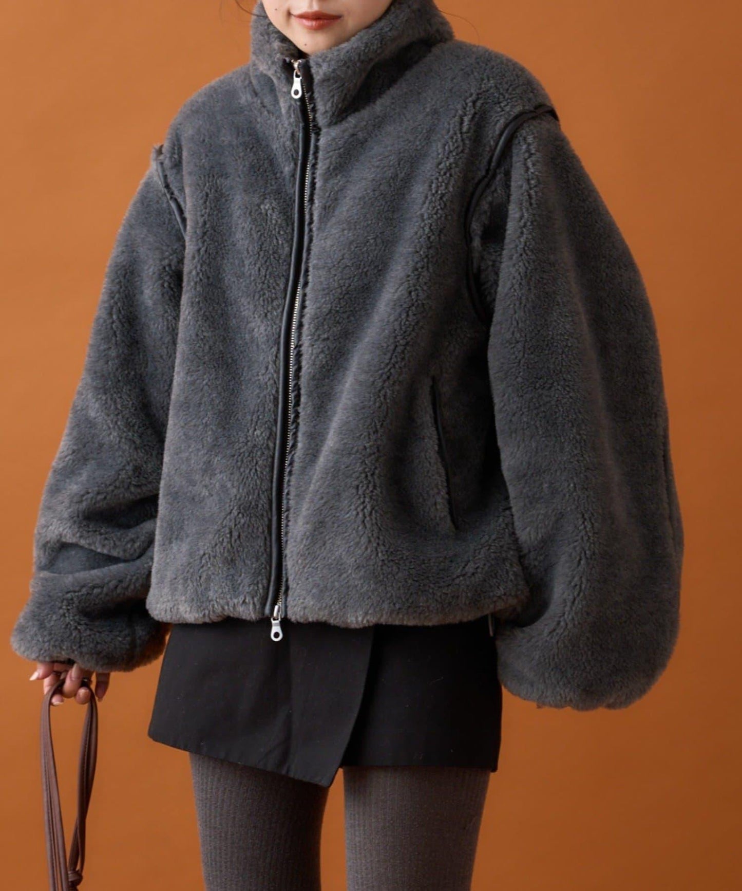 蟒蛇絨材質的立領夾克,瞬間提升了季節氛圍。