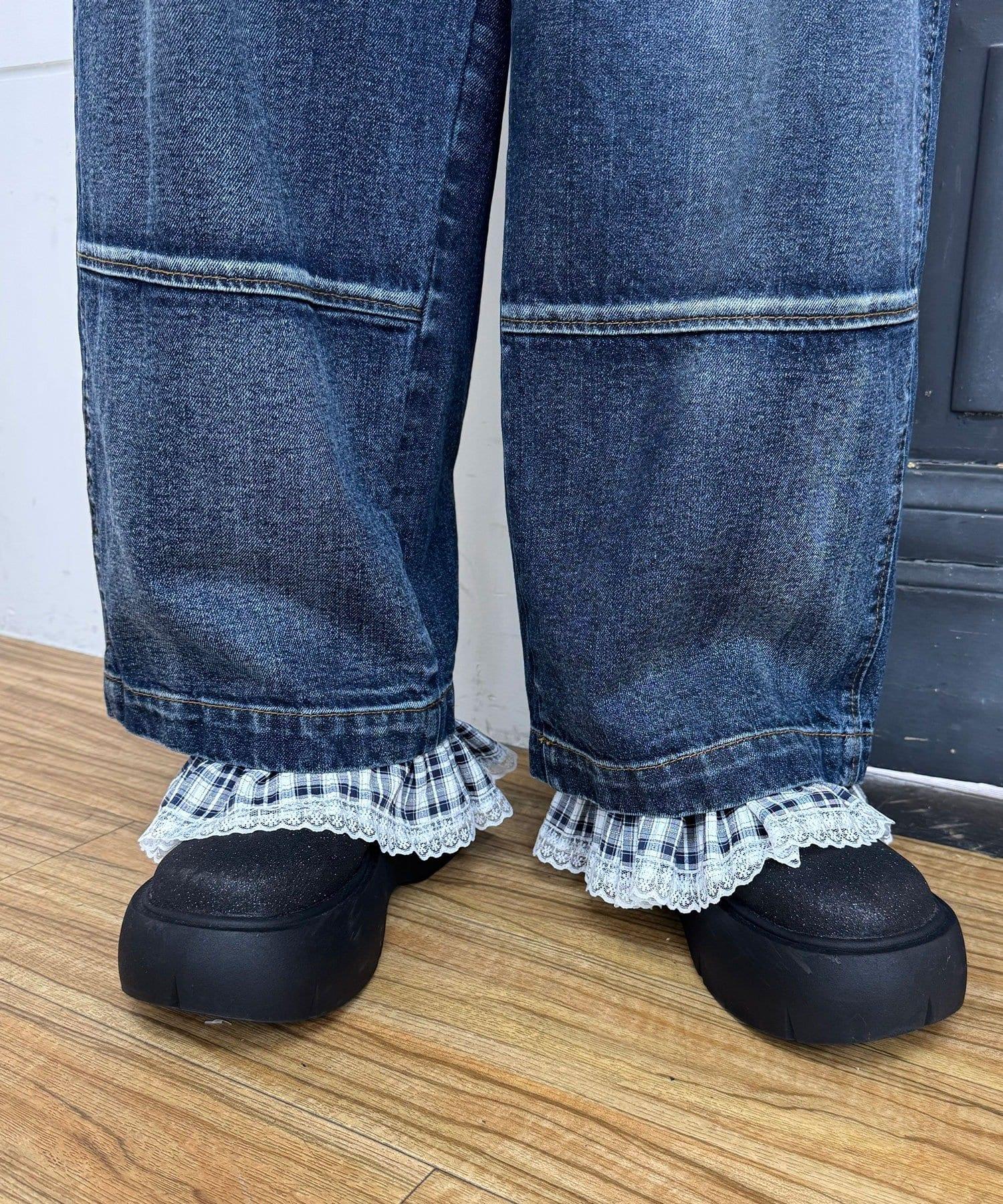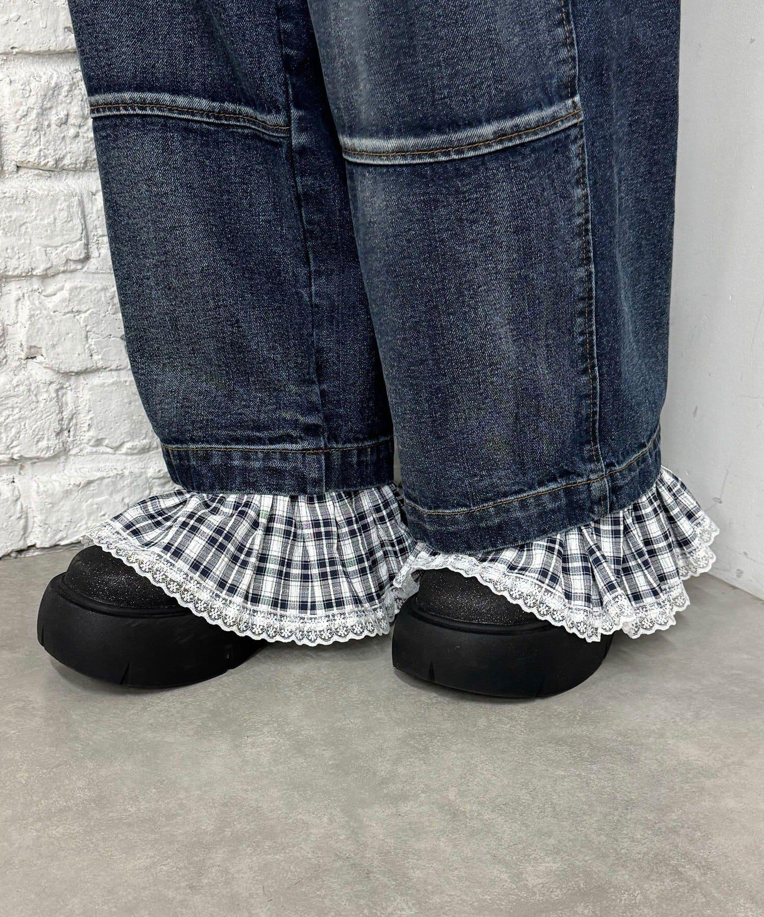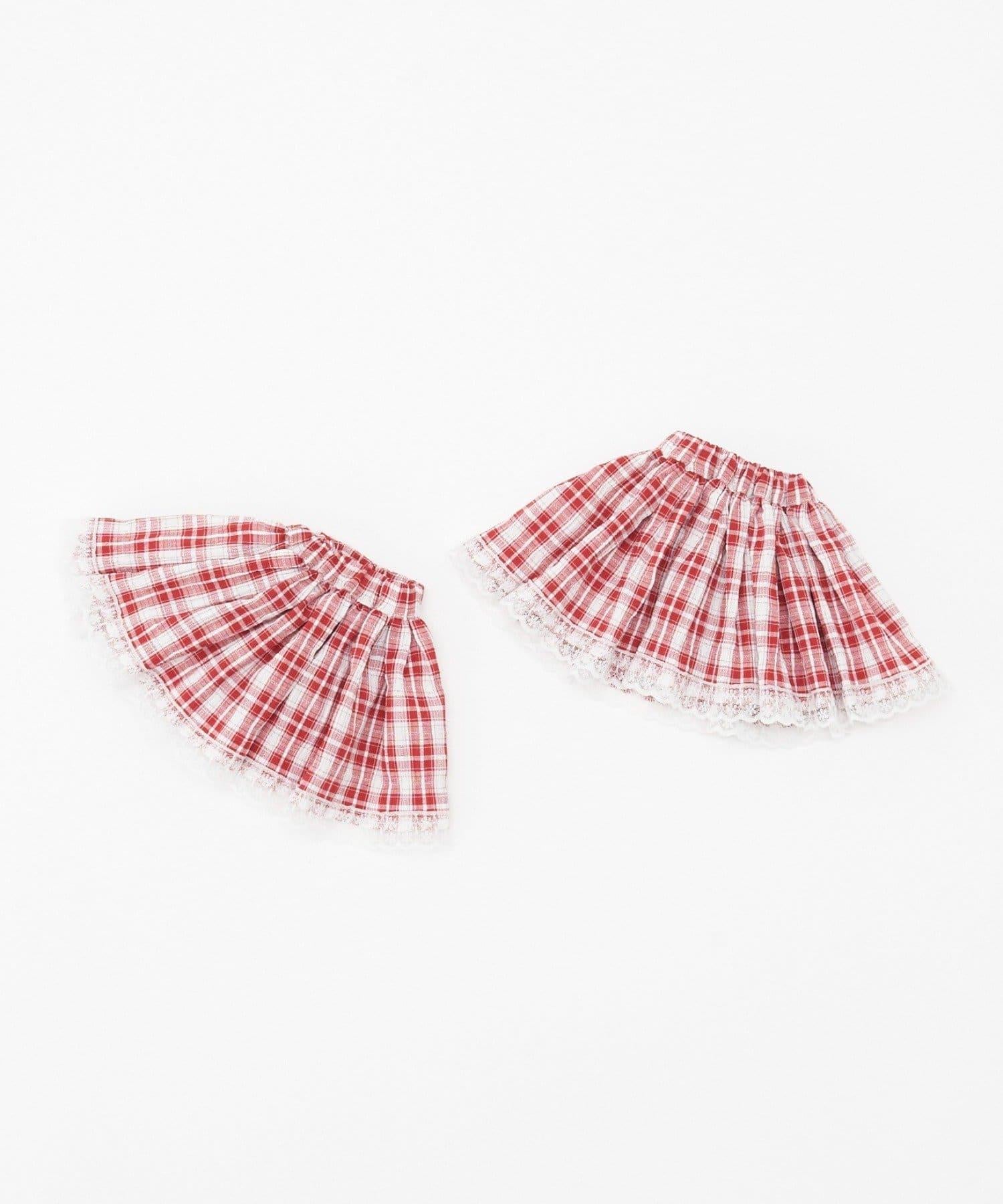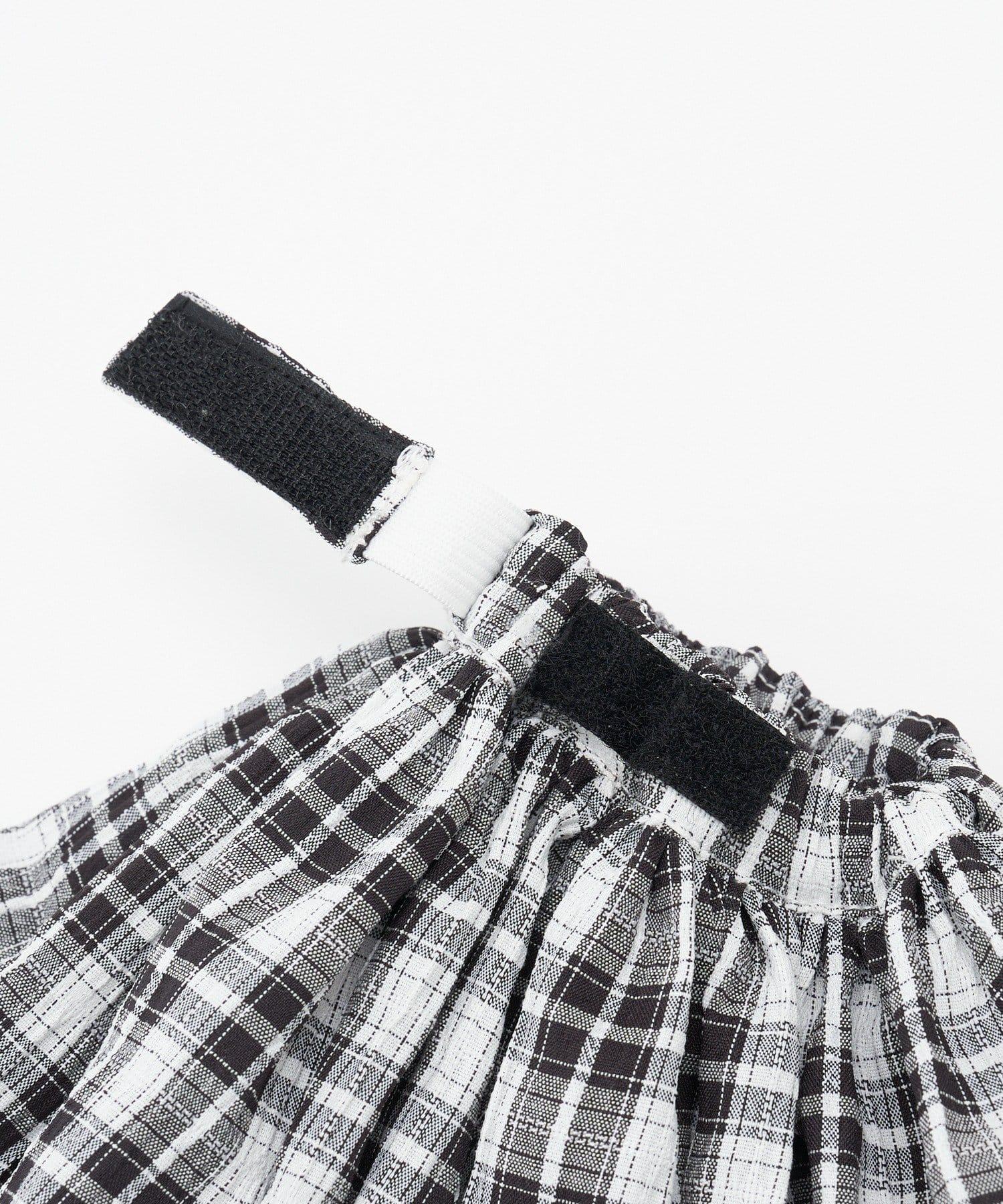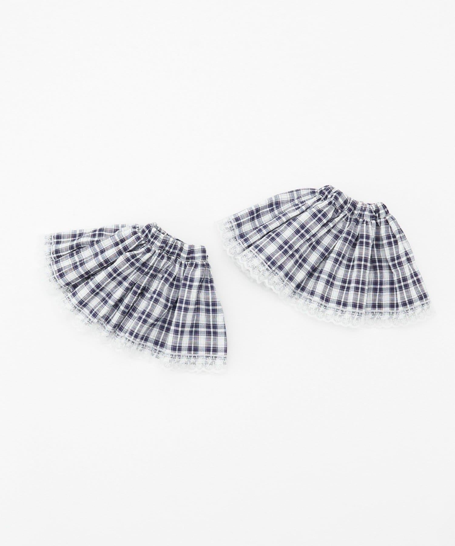 褶皺設計的附袖,飾有棋盤格圖案和蕾絲花邊。