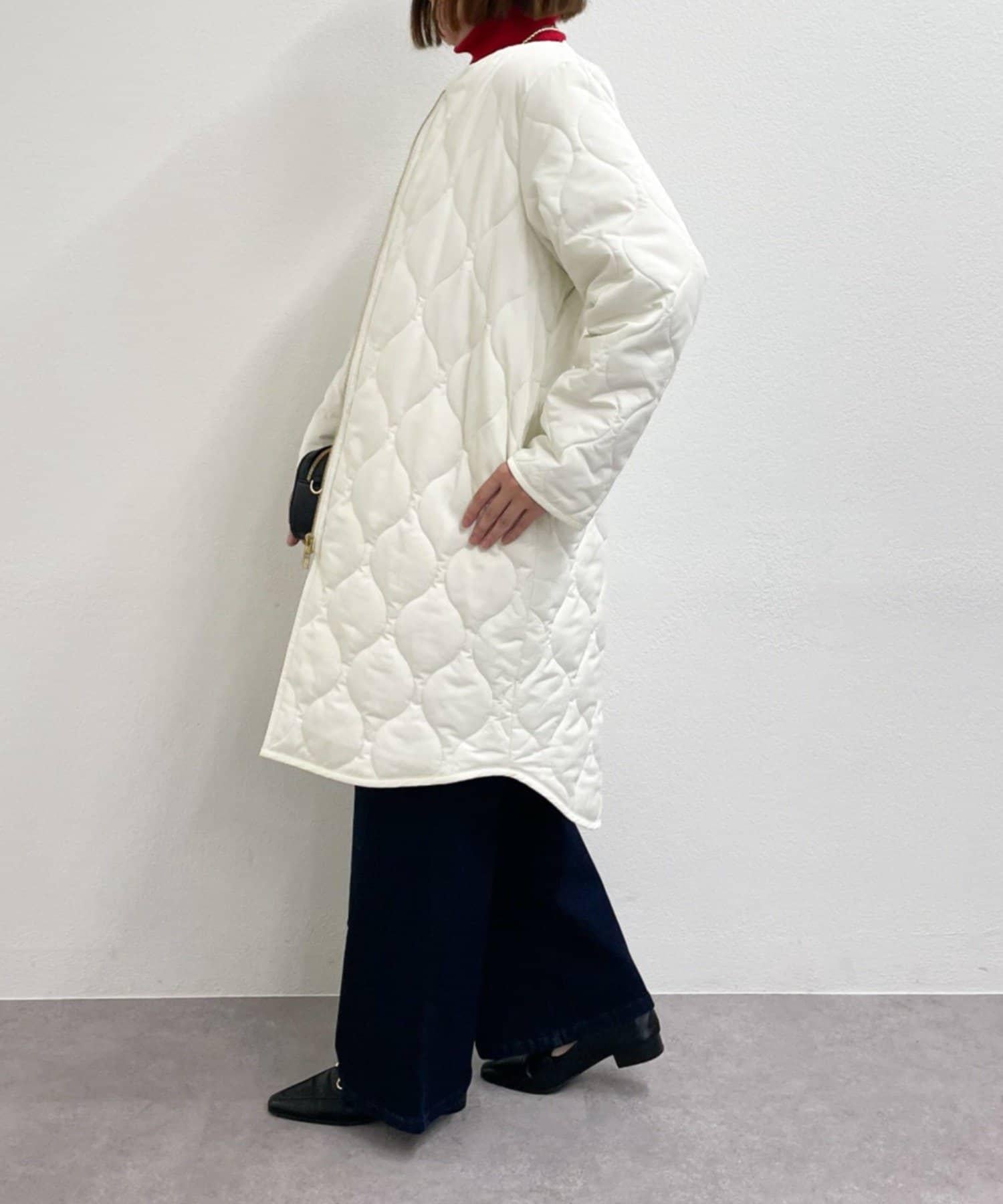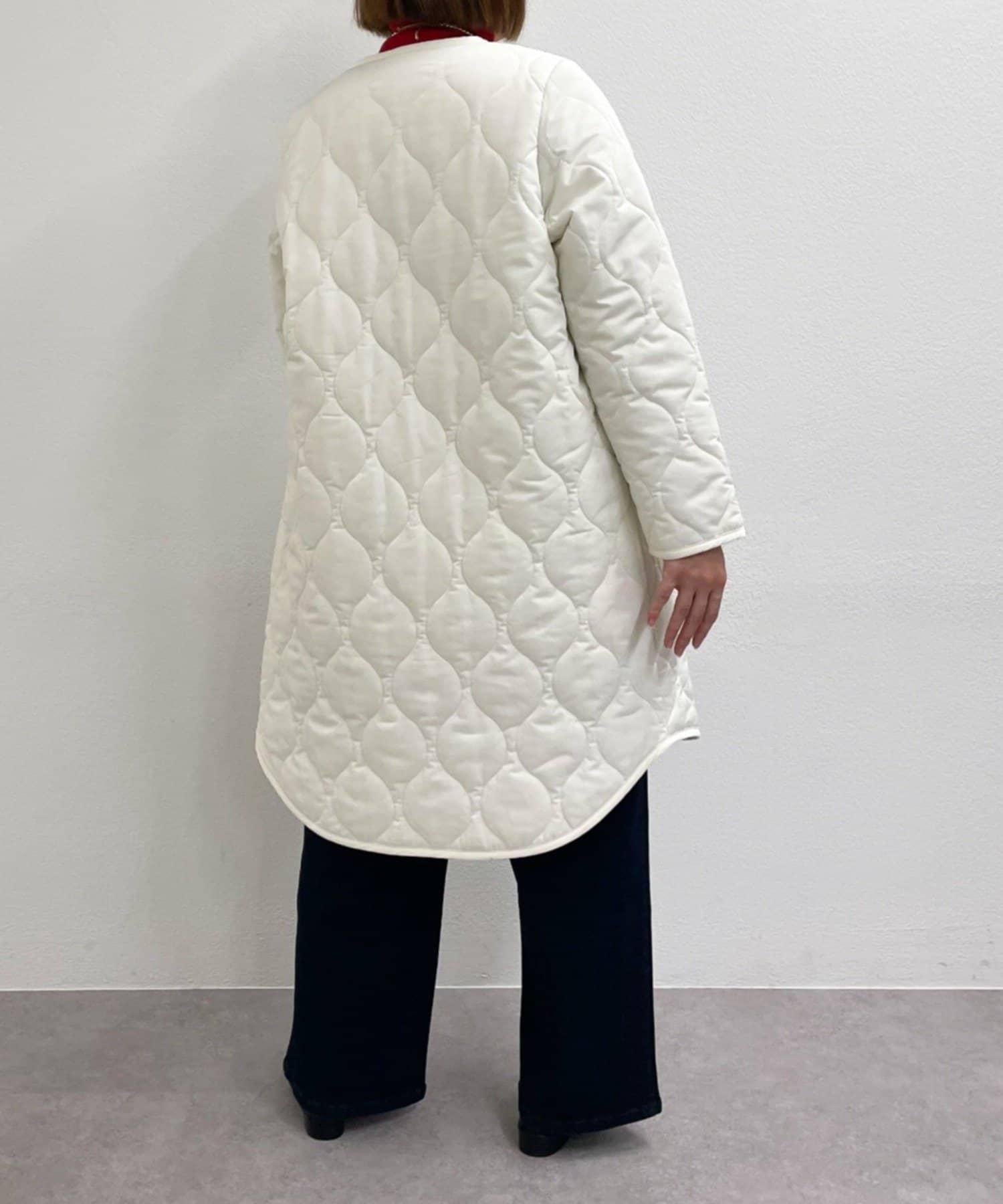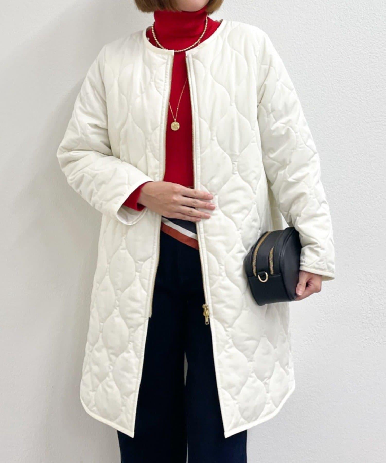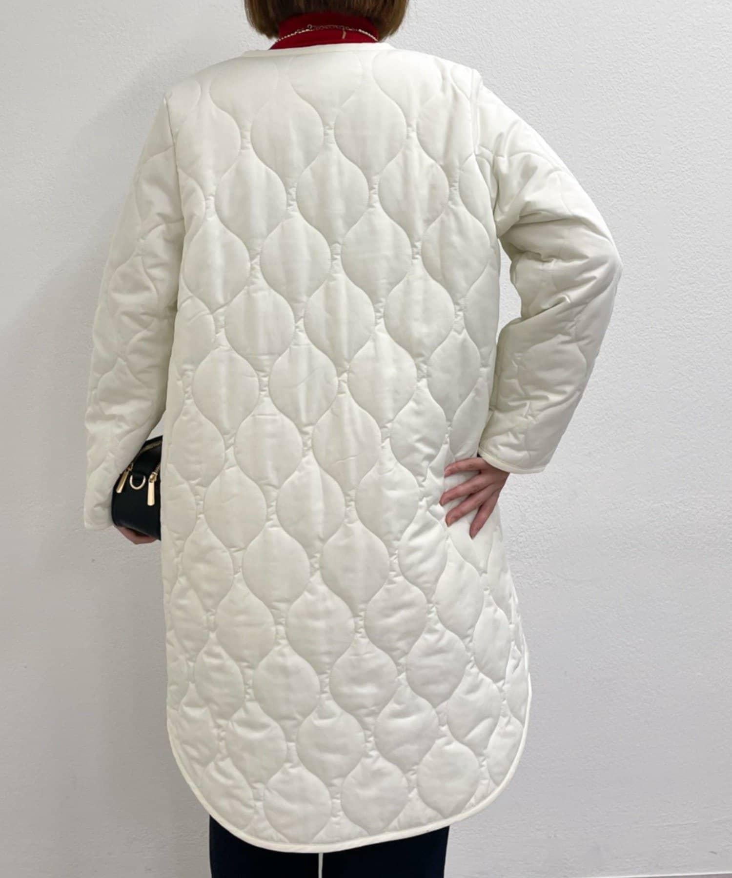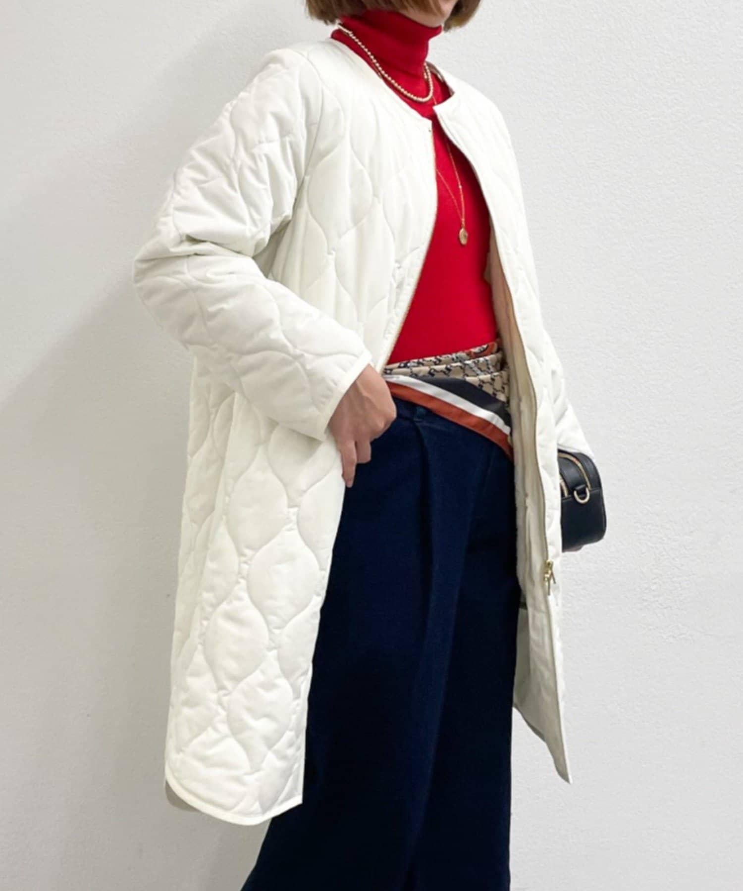 這款大衣採用厚薄適中的絎縫材料製成,適合日常穿著。