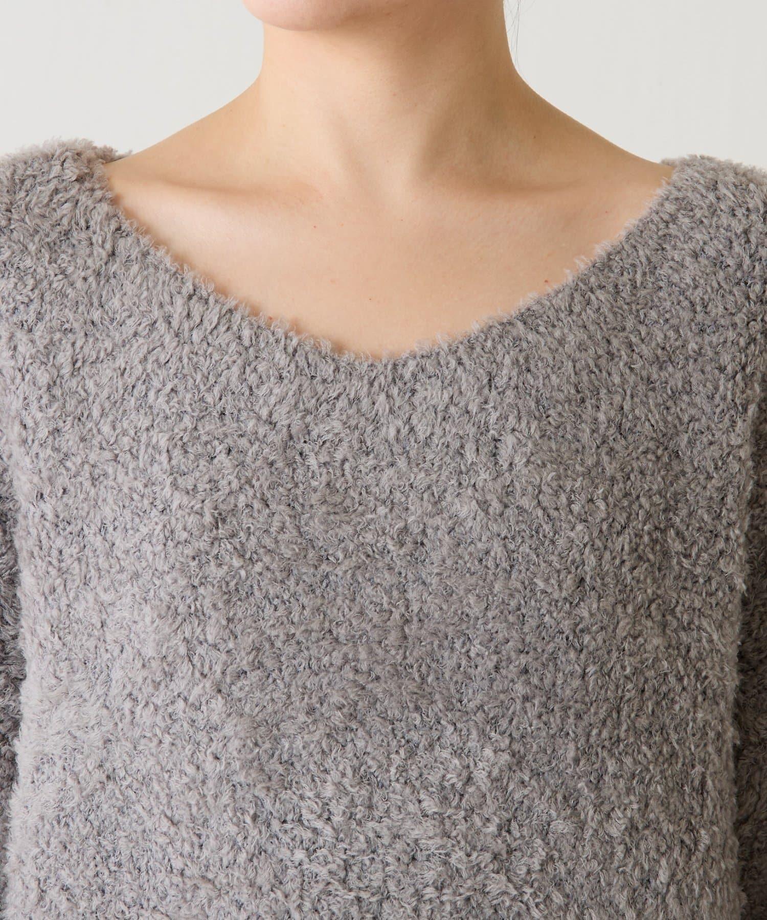 這款針織衫有淺 V 領和船領,可以前後兩種方式穿著。