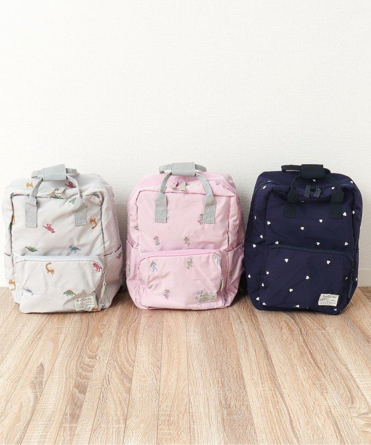 人氣方形揹包,印有可愛的花朵、心形和 Kyoryu 圖案。袼褙設計非常適合攜帶大量行李的學校旅行!包口寬敞,非常適合攜帶大量行李的學生旅行!