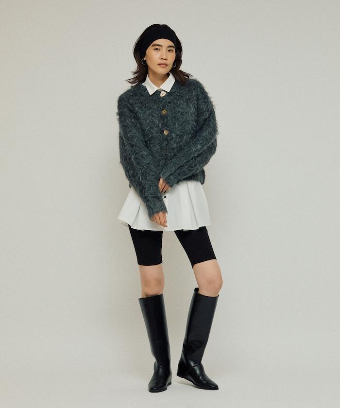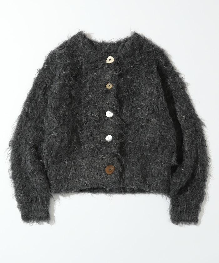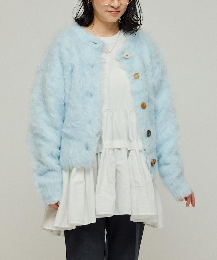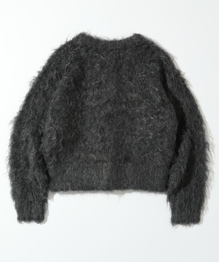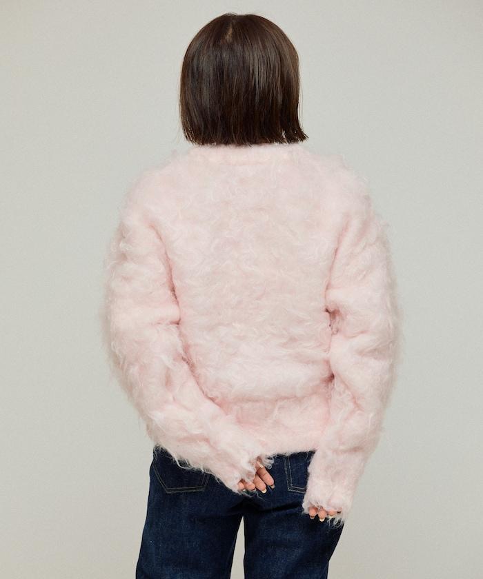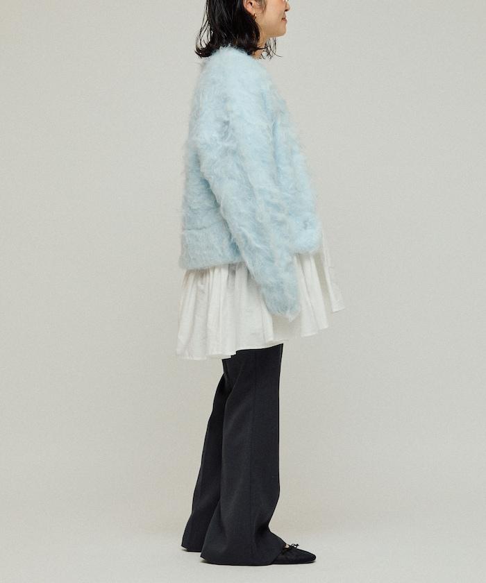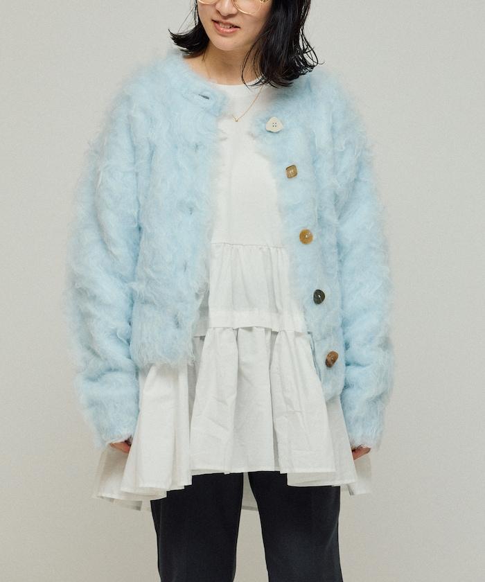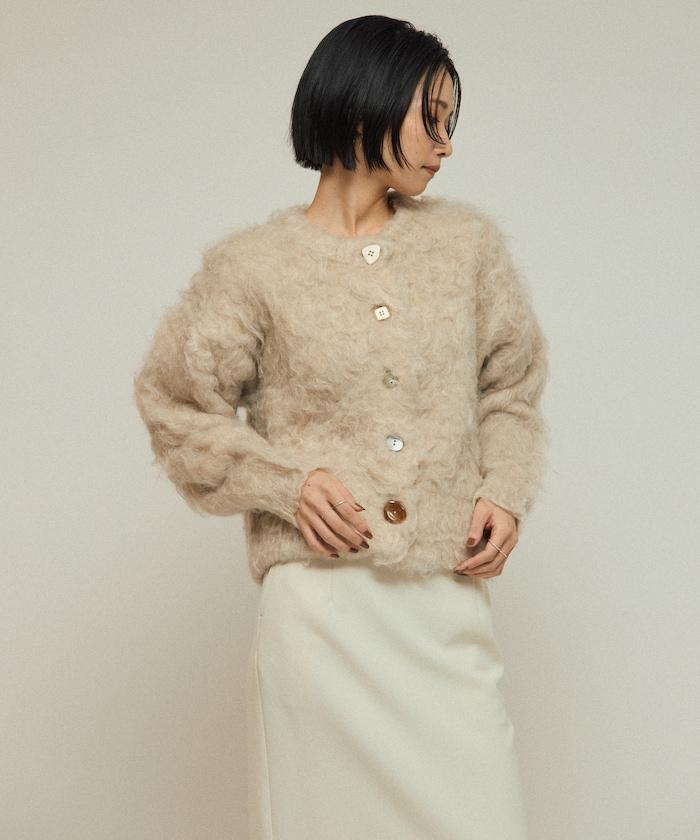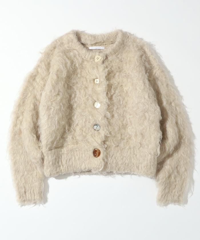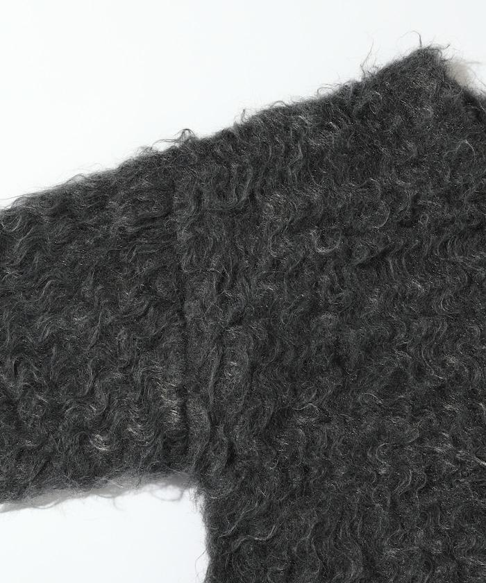 這款針織開衫採用絨毛材質,絨毛較長,具有很強的存在感。