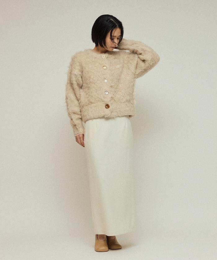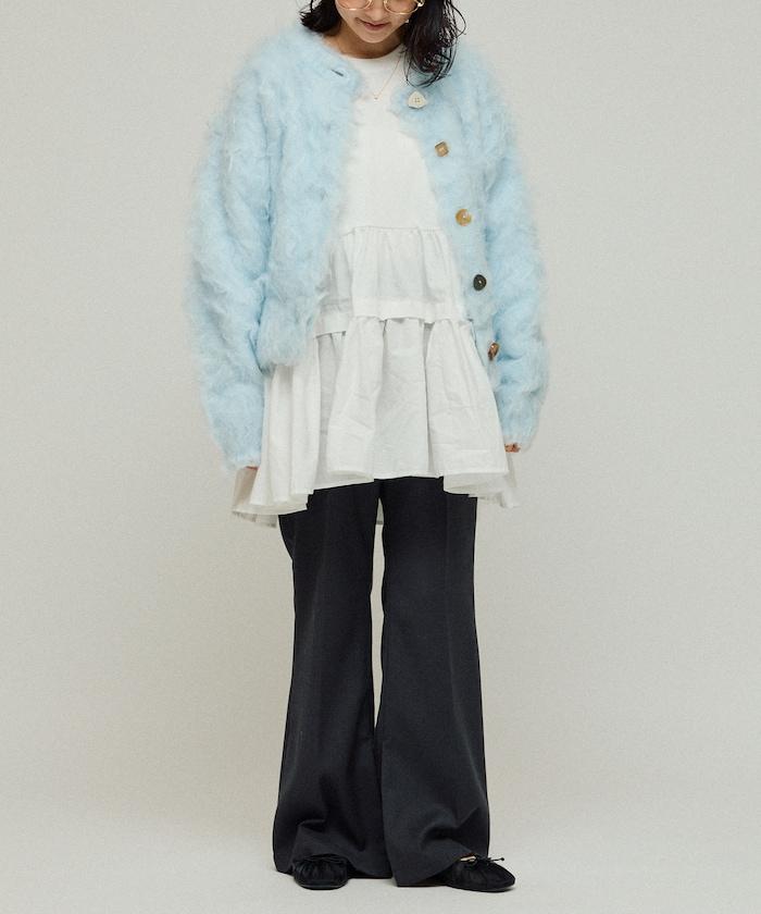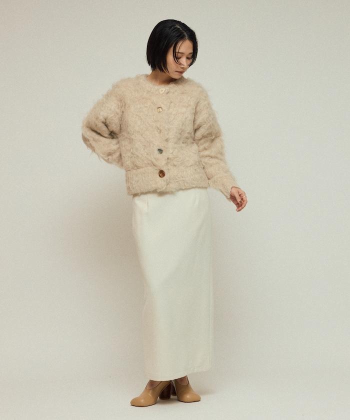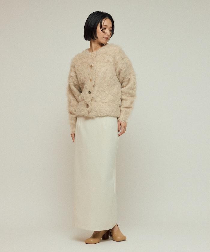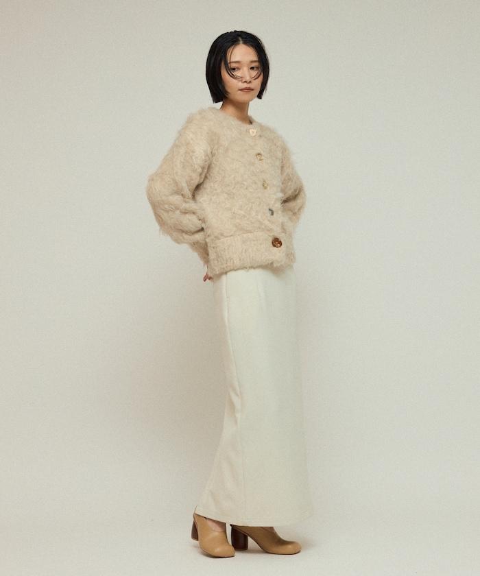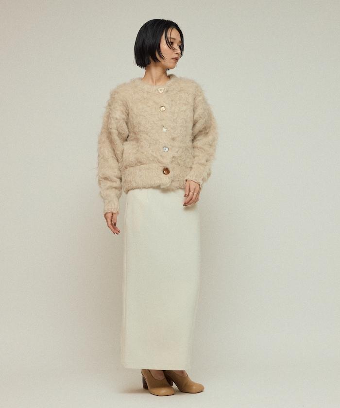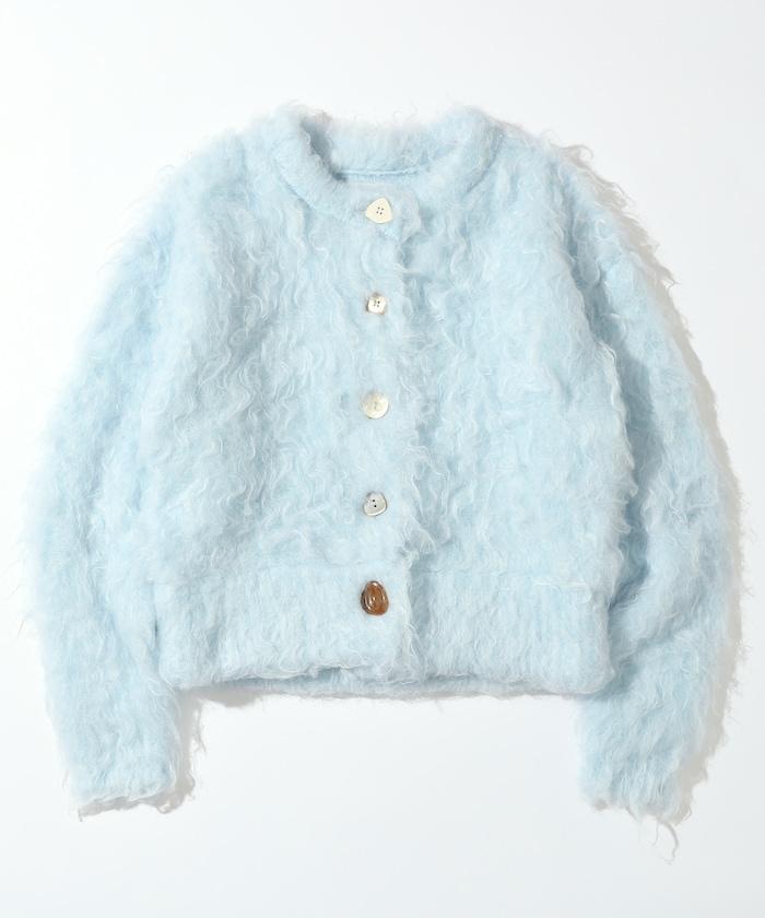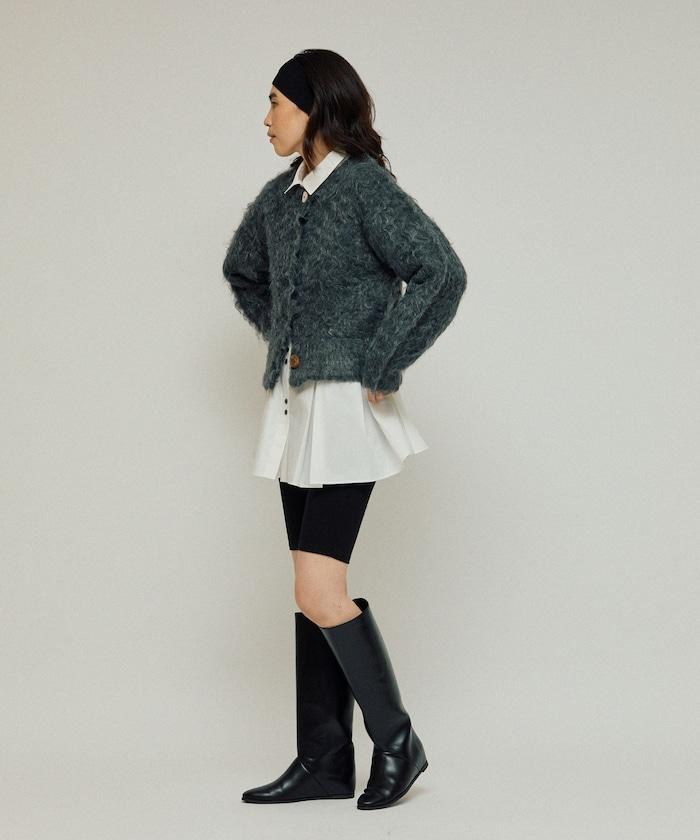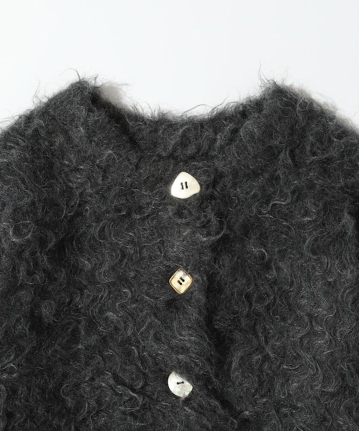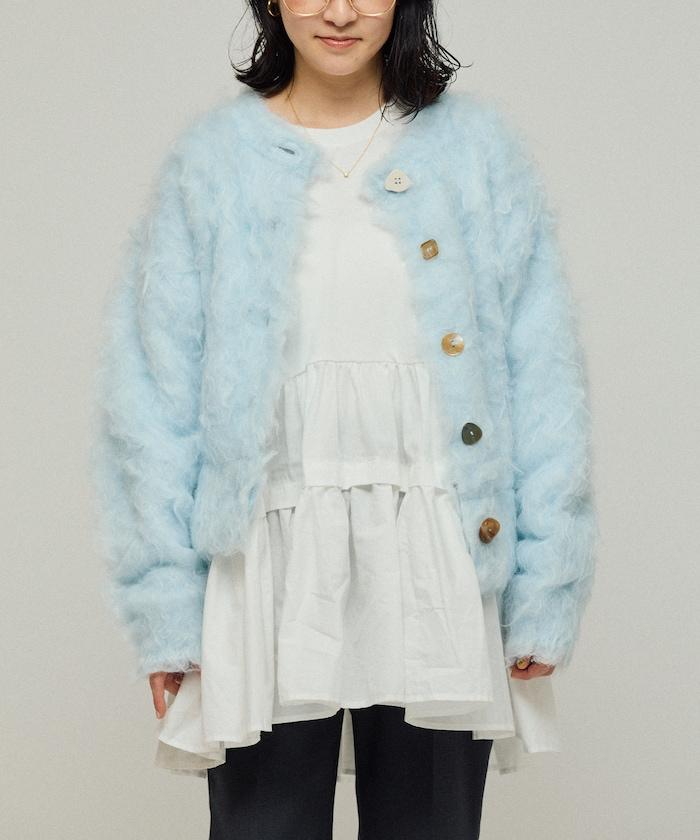 這款針織開衫採用絨毛材質,絨毛較長,具有很強的存在感。