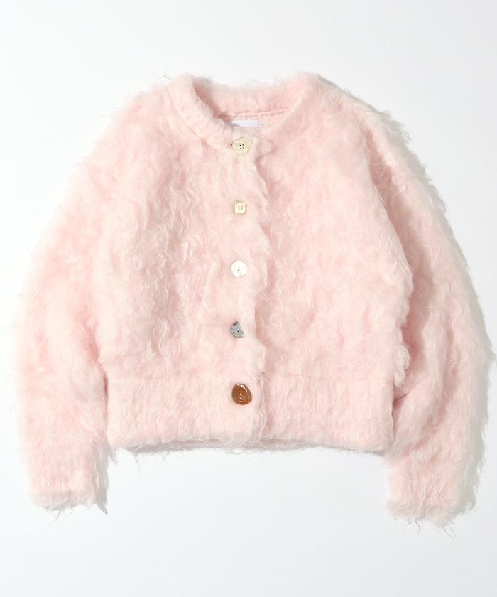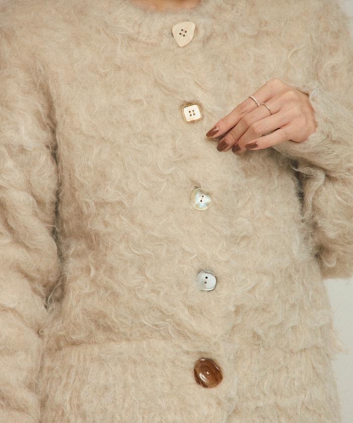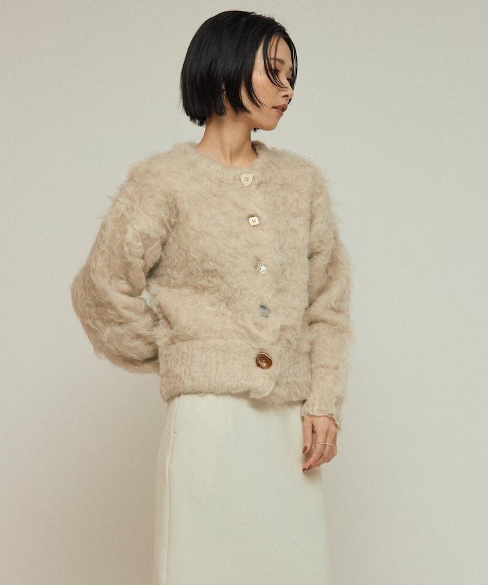 不同材質的紐扣增添了俏皮感。毛茸茸的針織開衫,穿上它就能成為明星。