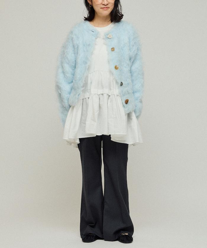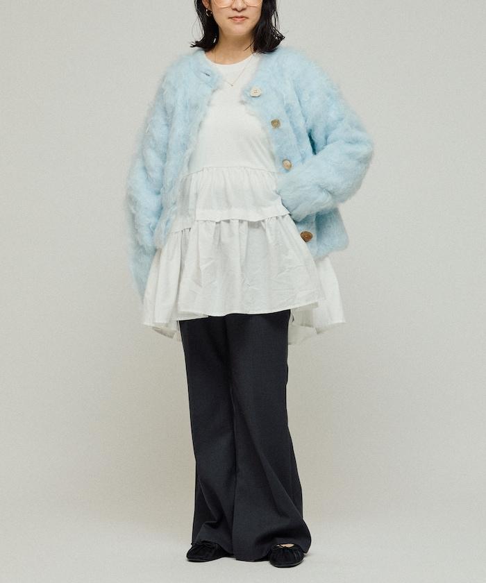 由於絨毛紗線的獨特特性,容易因摩擦而起球,因此只要在穿著後用刷子刷一下,並在靜置時注意保養,就能長久保存。