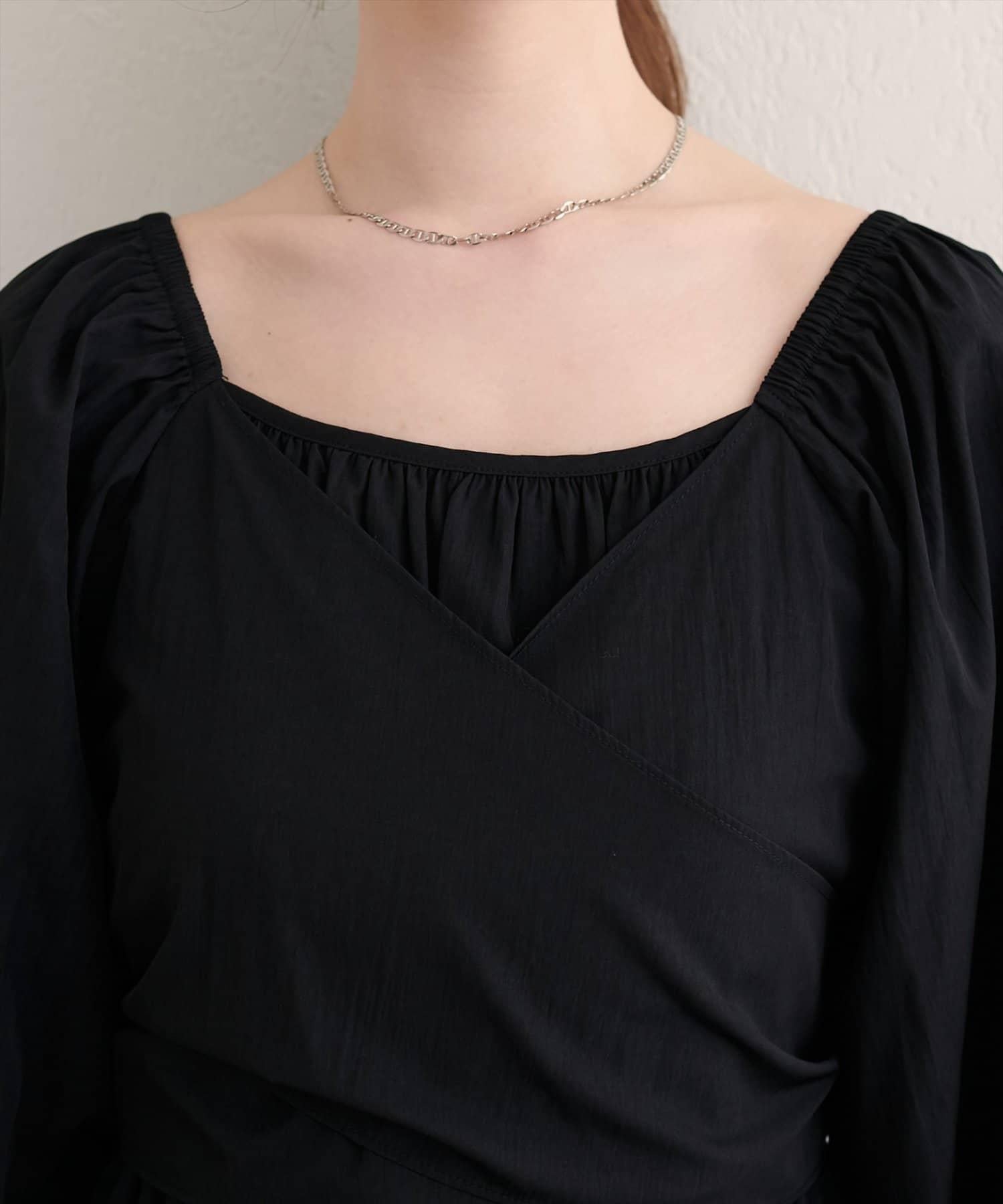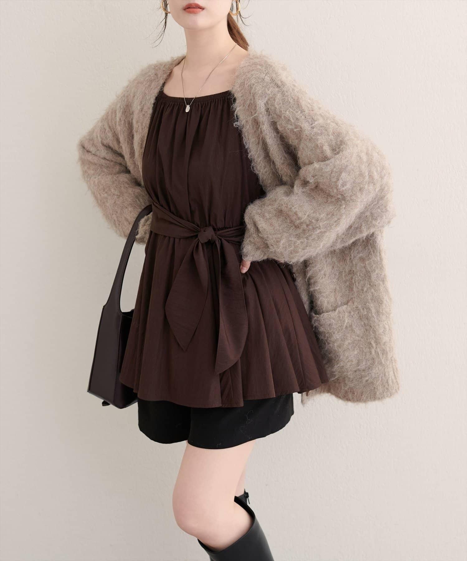 前開襟設計,用絲帶繫住,盡顯女性優雅氣質。它能很好地展示肩部線條,並與配飾完美搭配。