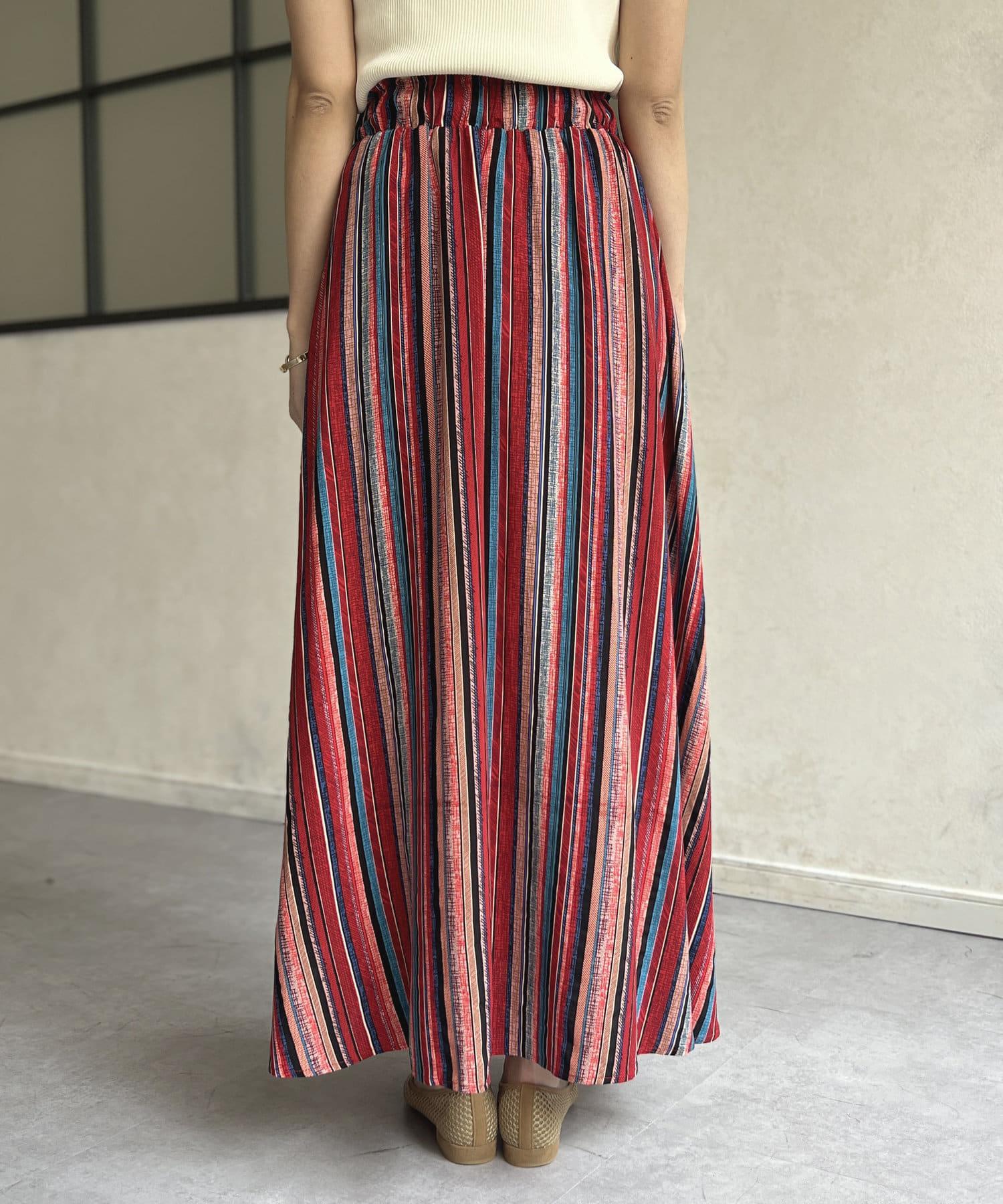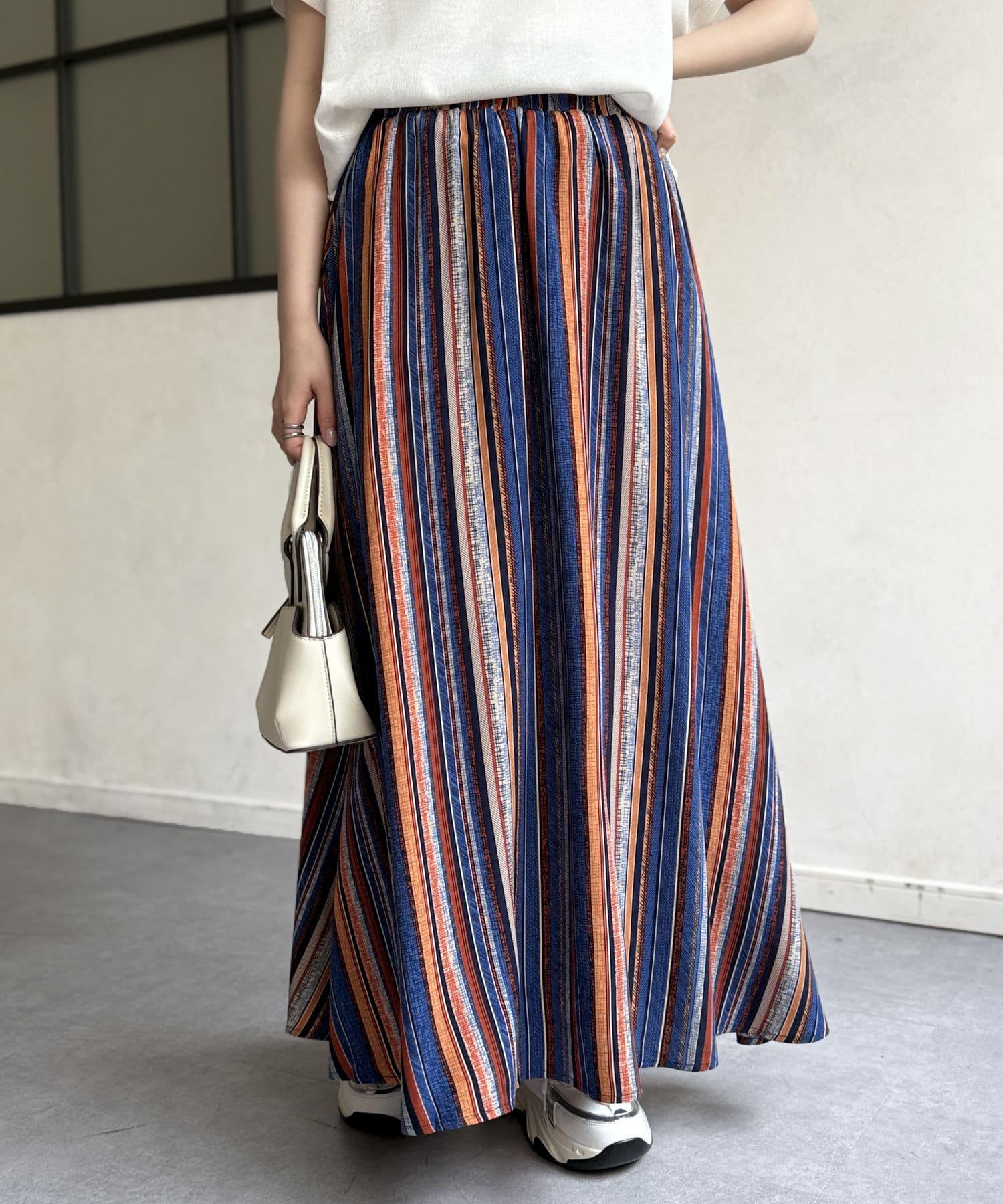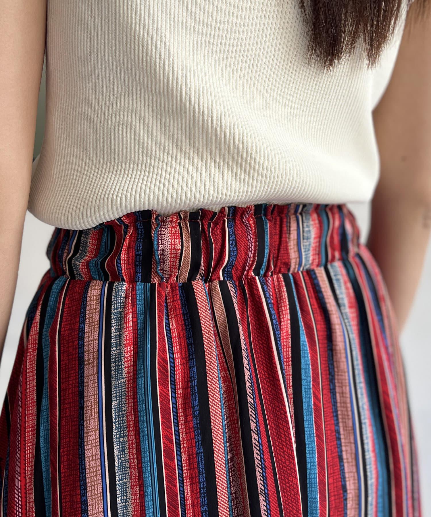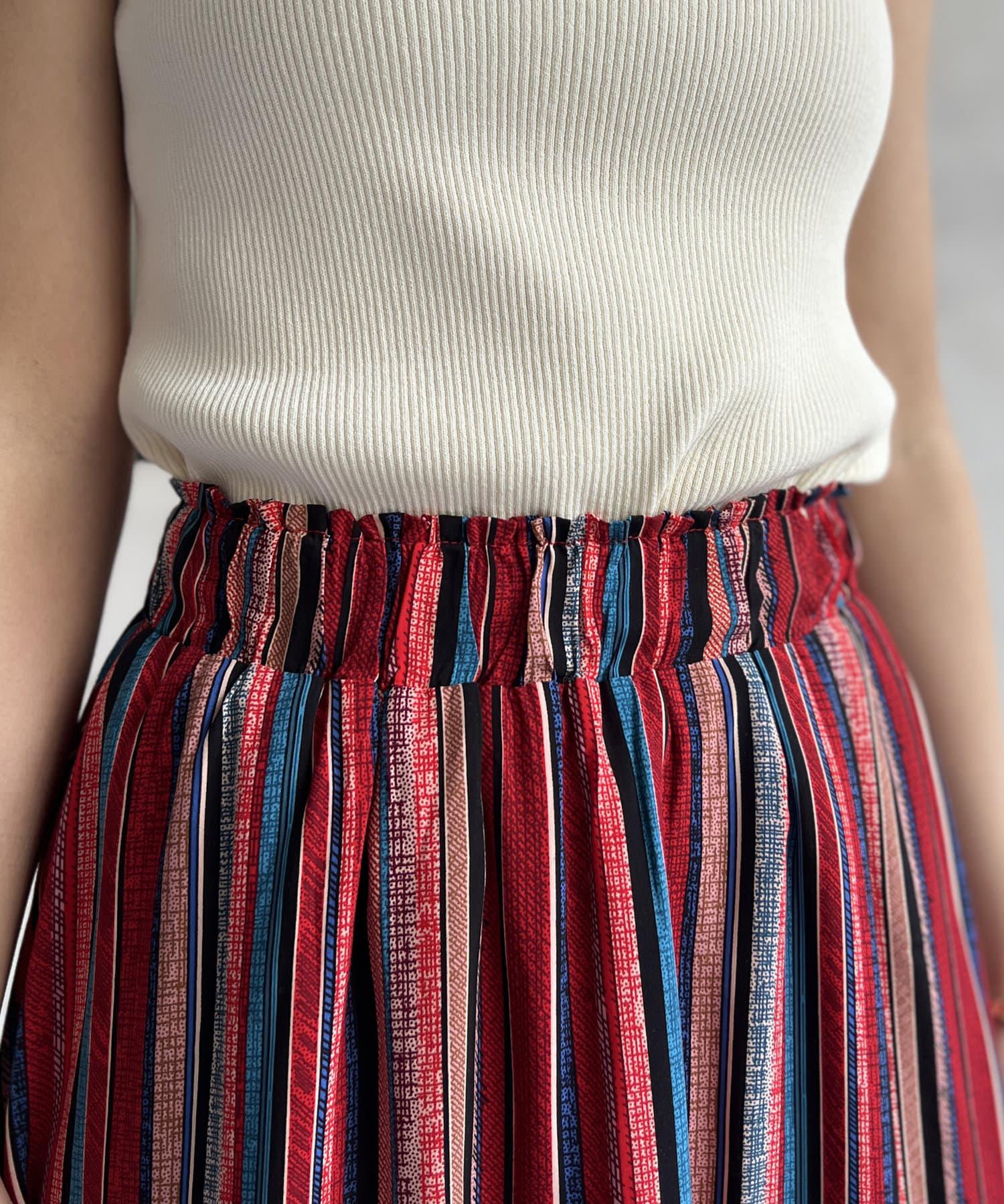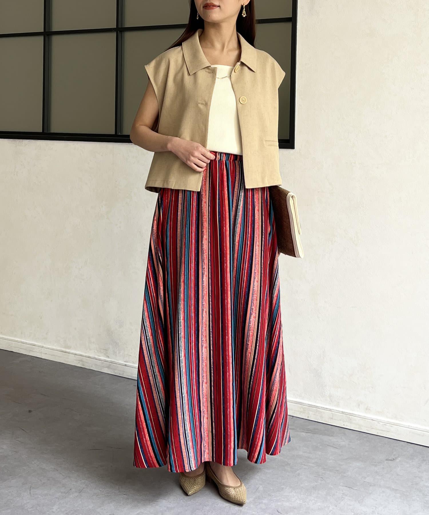 帶有復古多條紋圖案的喇叭裙,氣場十足。