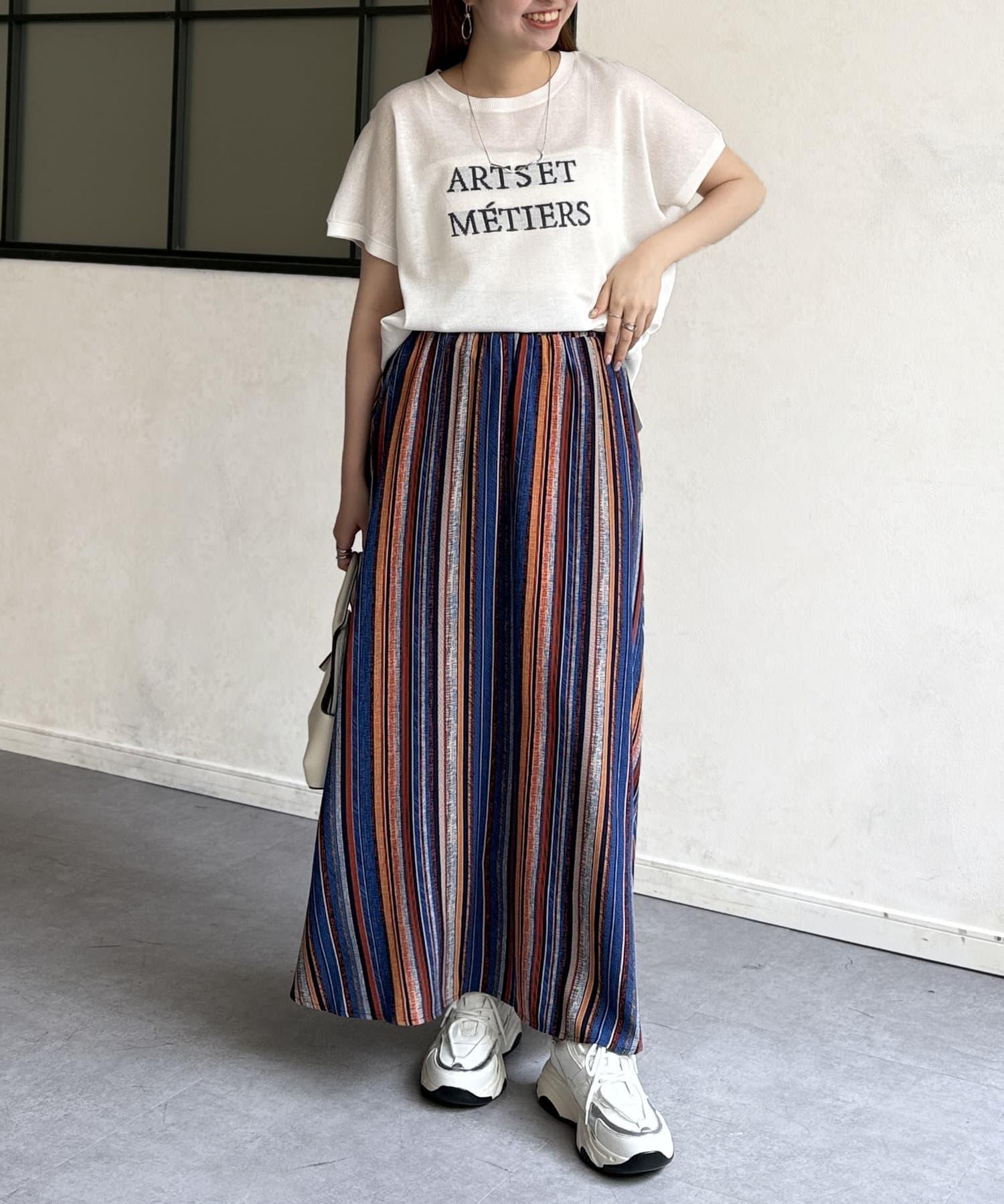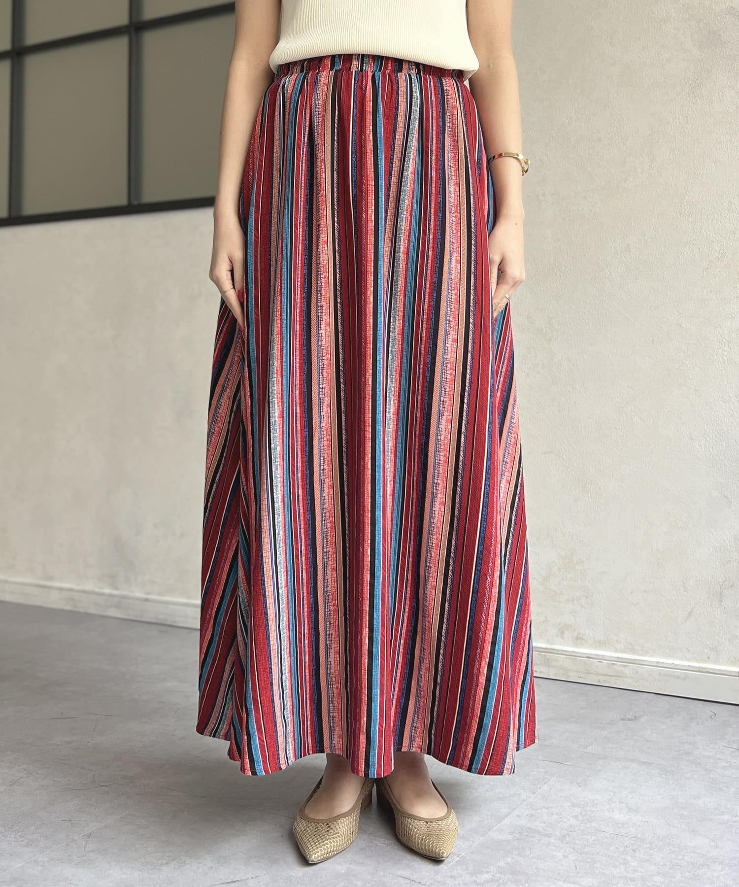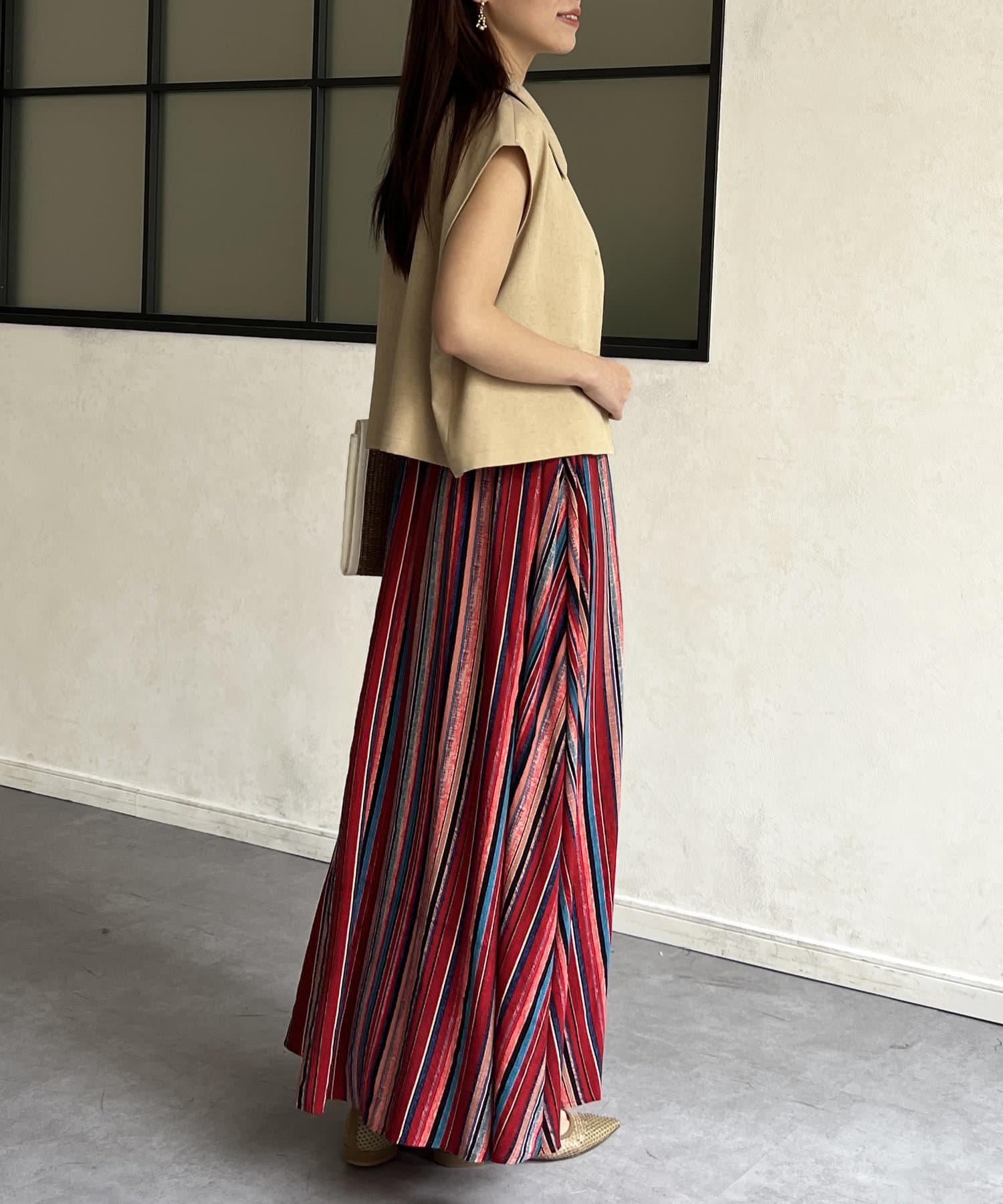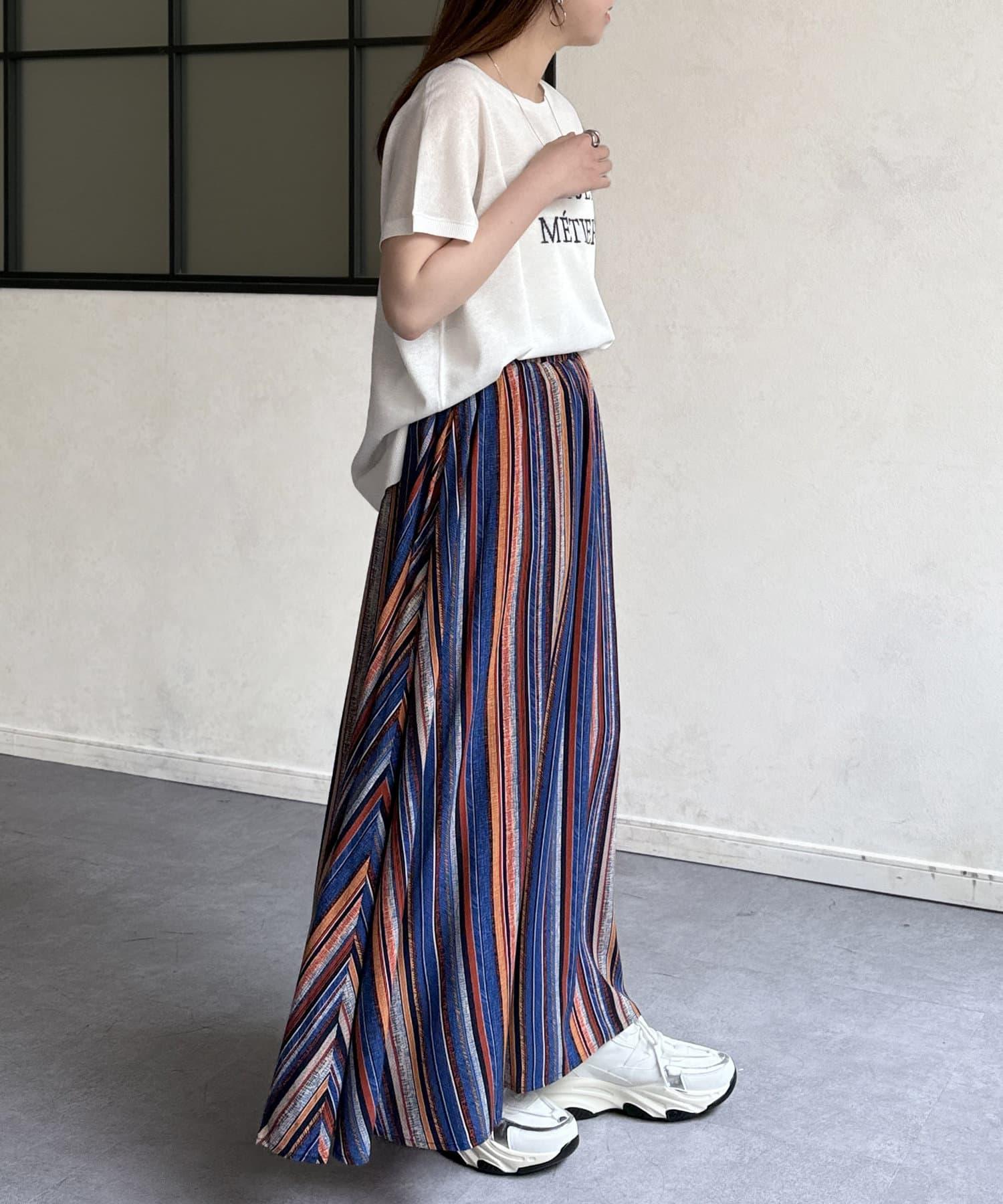 帶有復古多條紋圖案的喇叭裙,氣場十足。