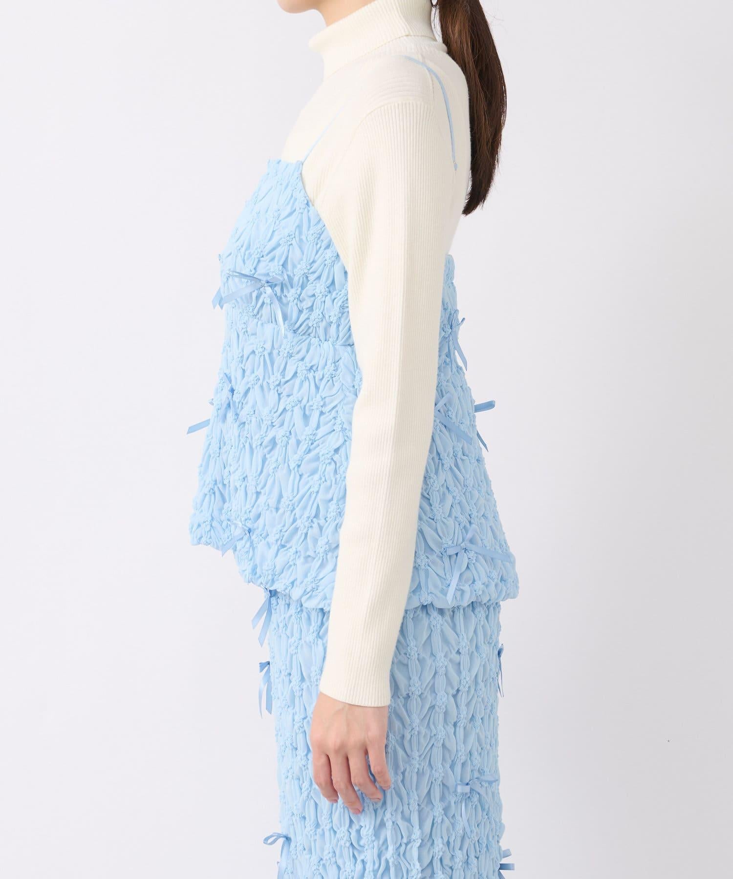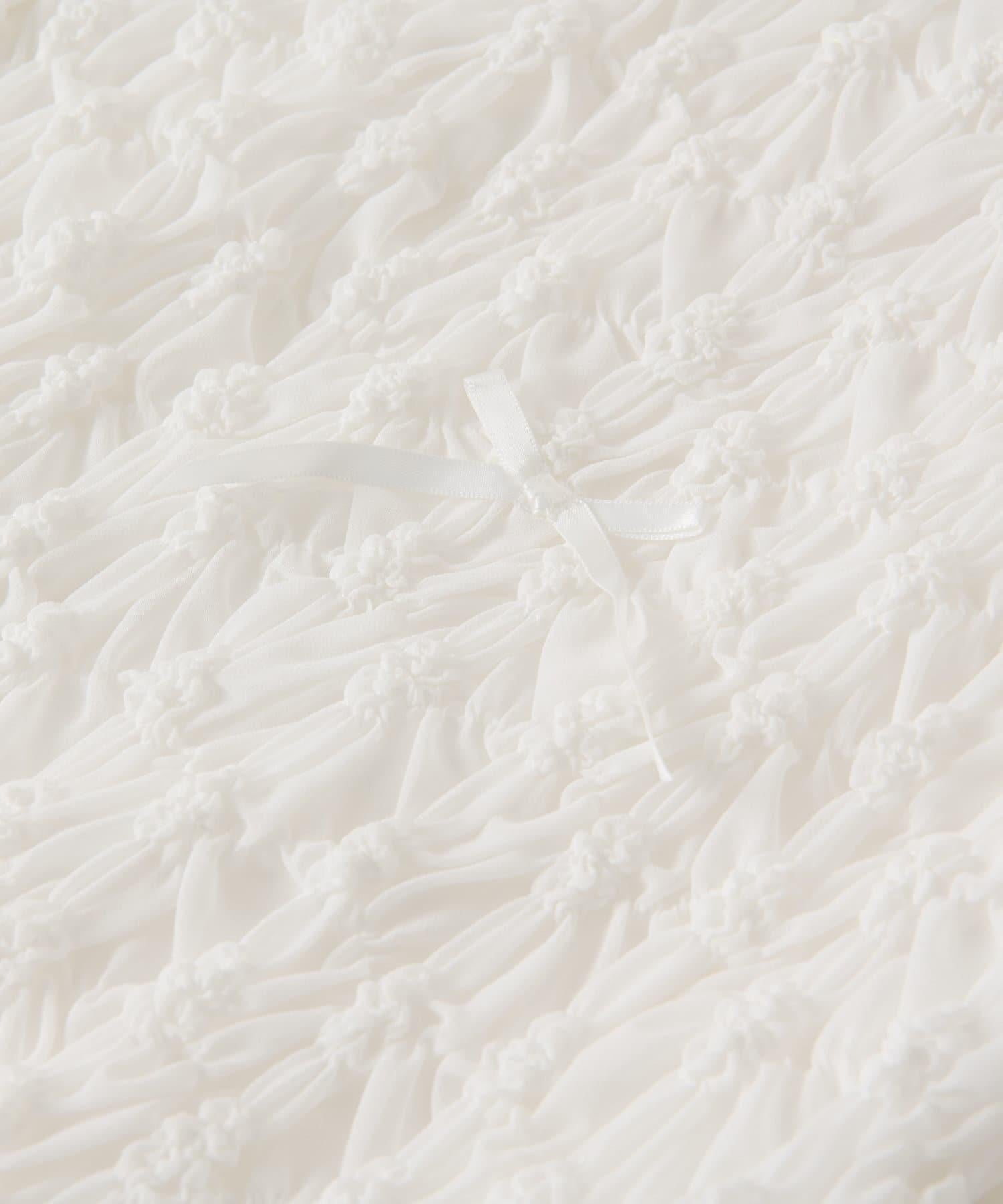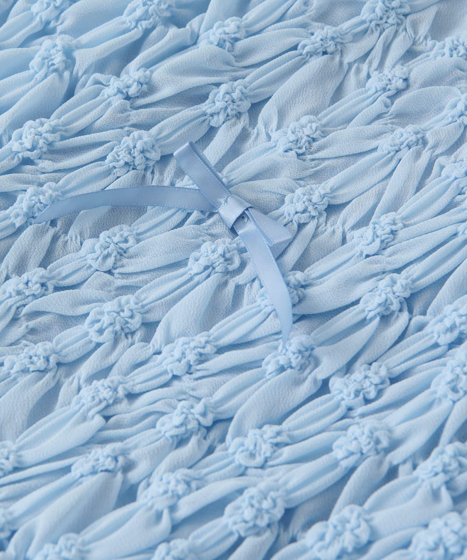 每條精緻的絲帶都縫在鎖邊風格的面料上,營造出迷人的效果。