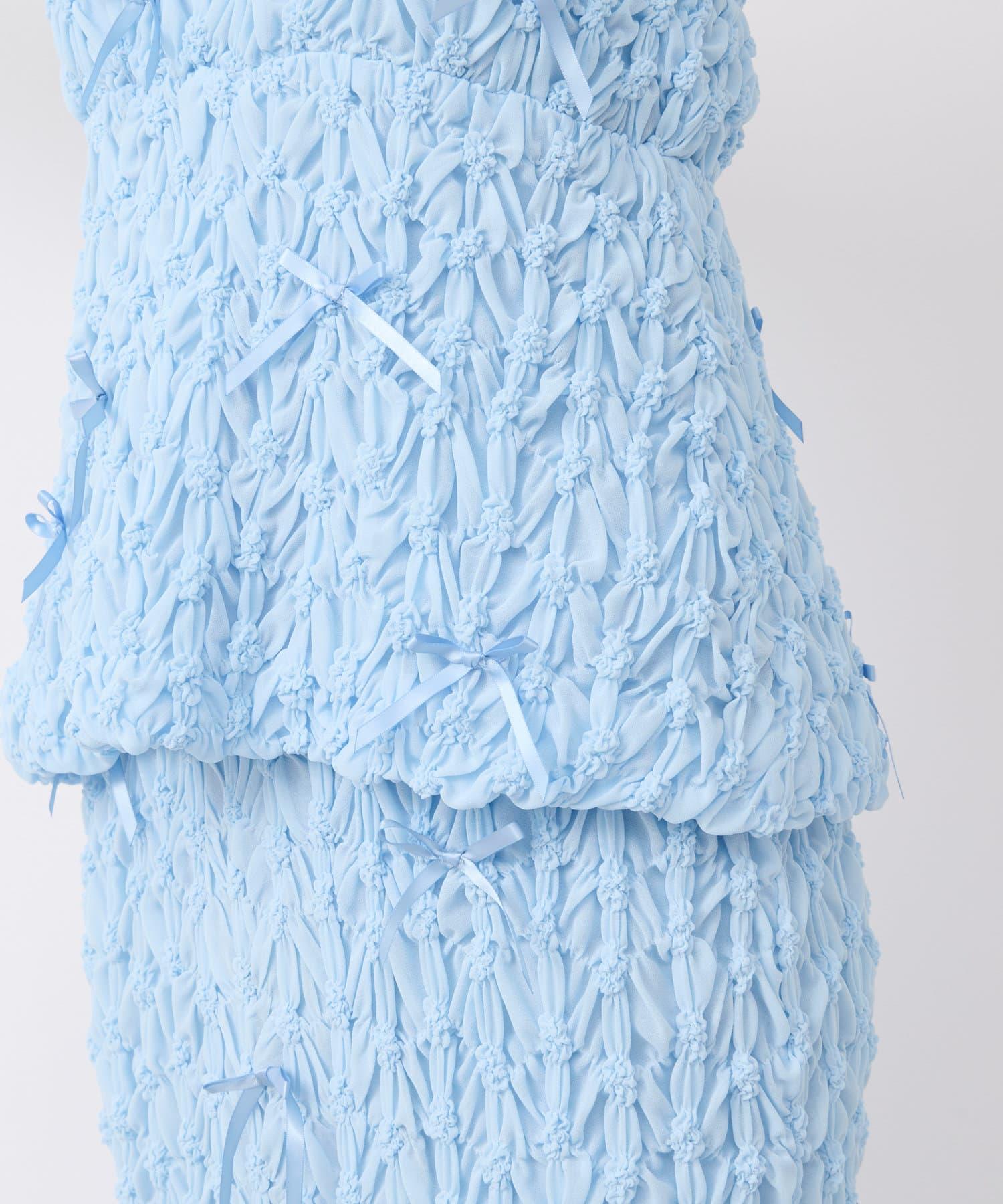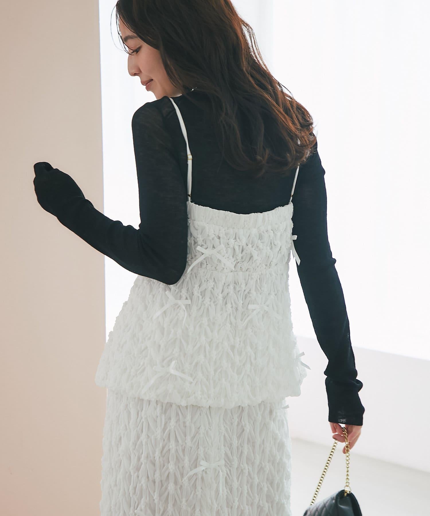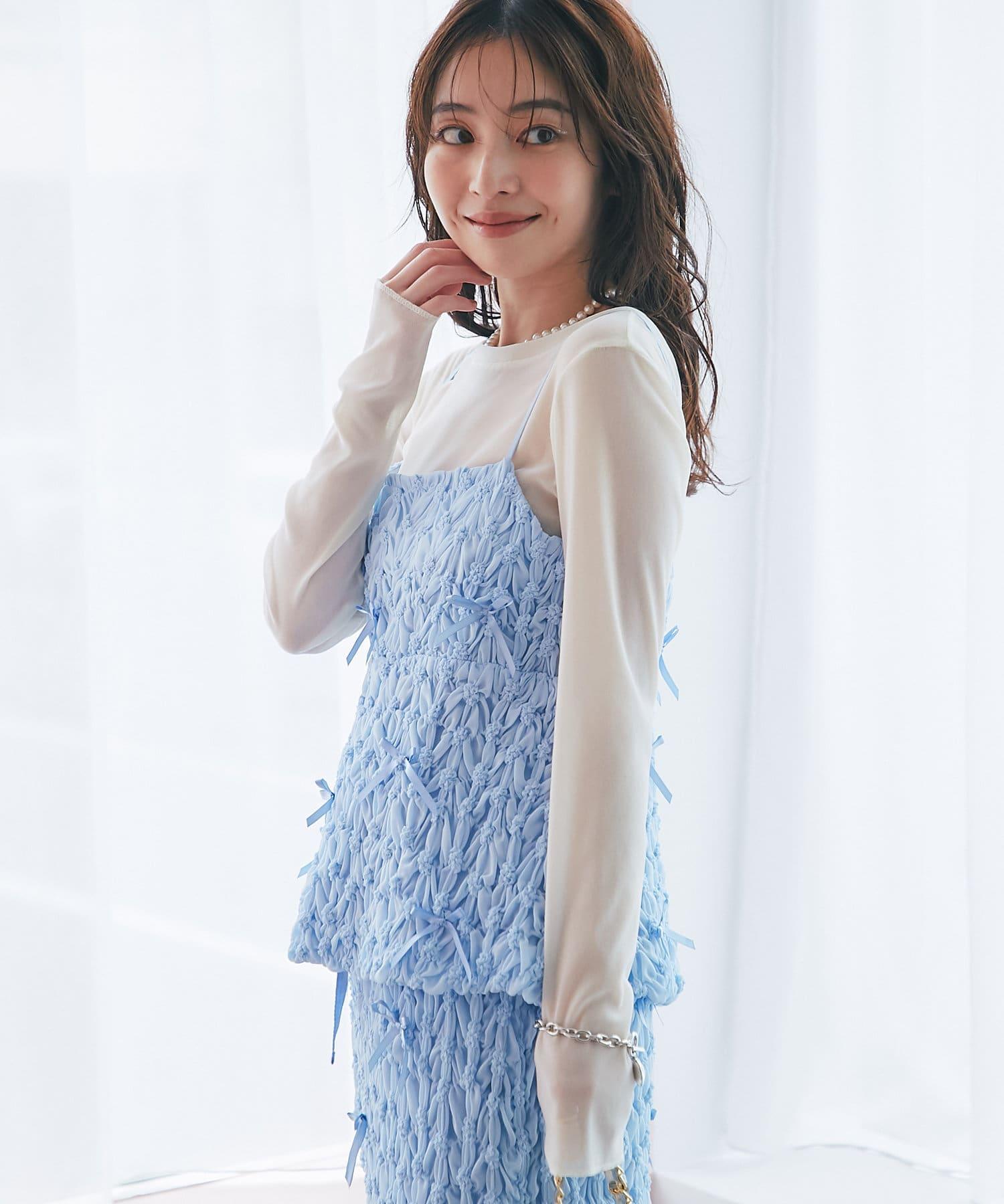 每條精緻的絲帶都縫在鎖邊風格的面料上,營造出迷人的效果。