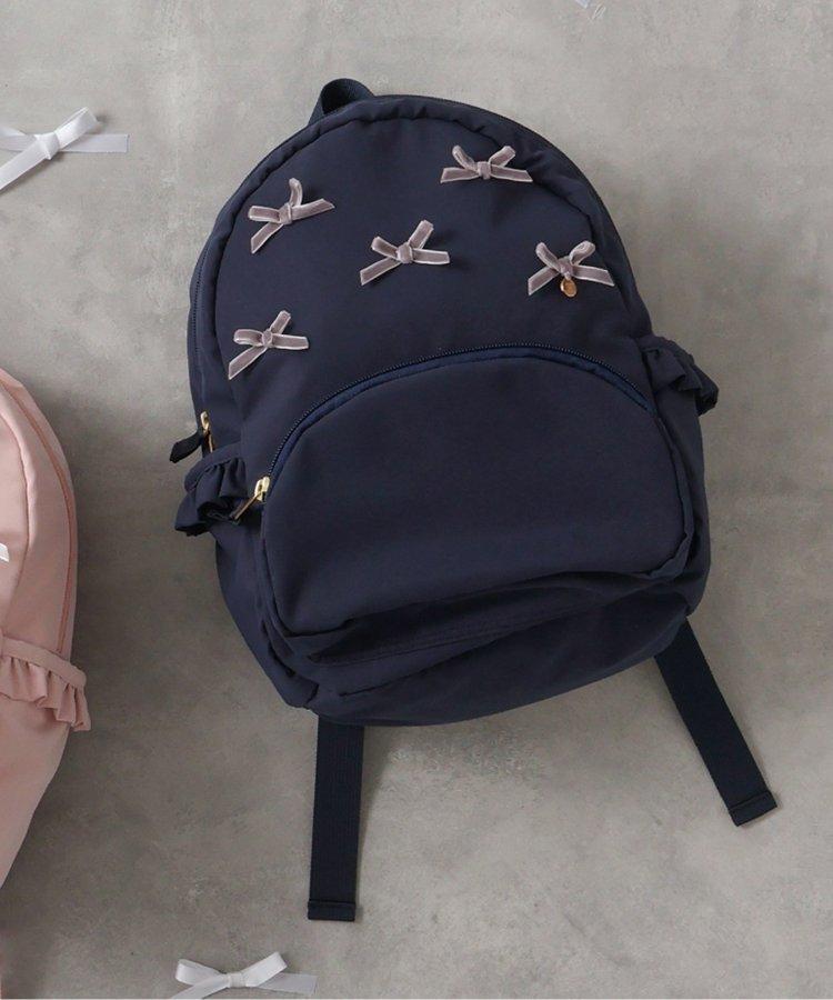 這款名為 "Menie Ribbon Backpack "的 "apres les cours "手袋不僅適用於外出,還能打造協調的造型*。