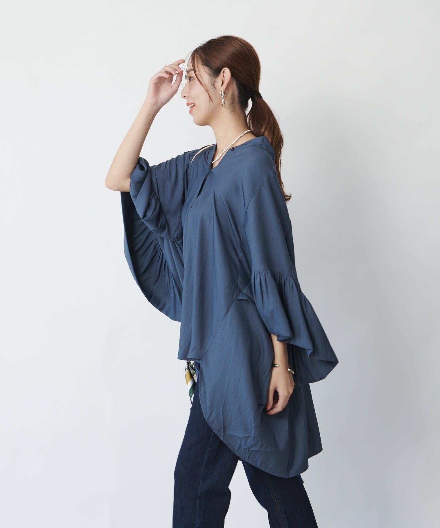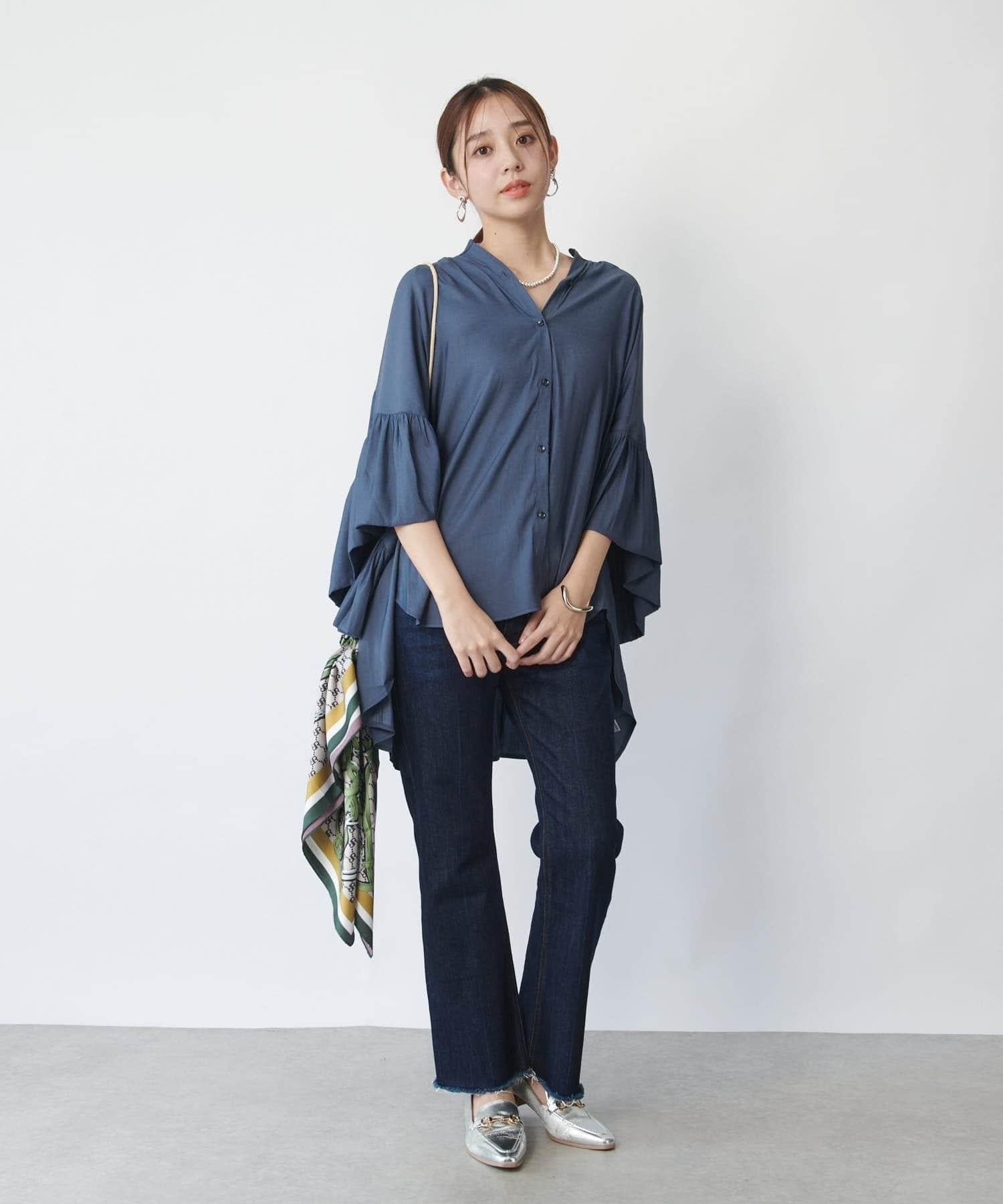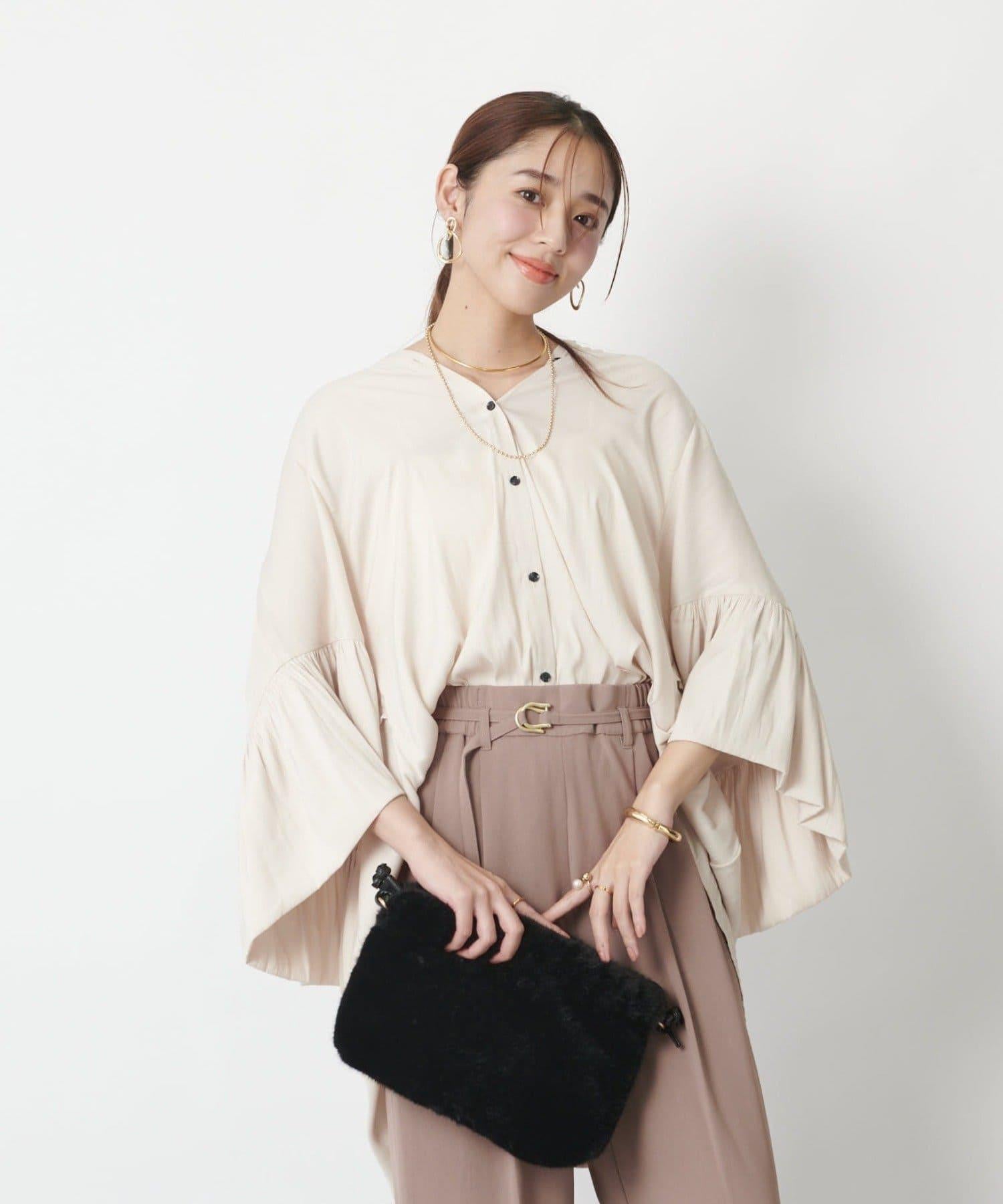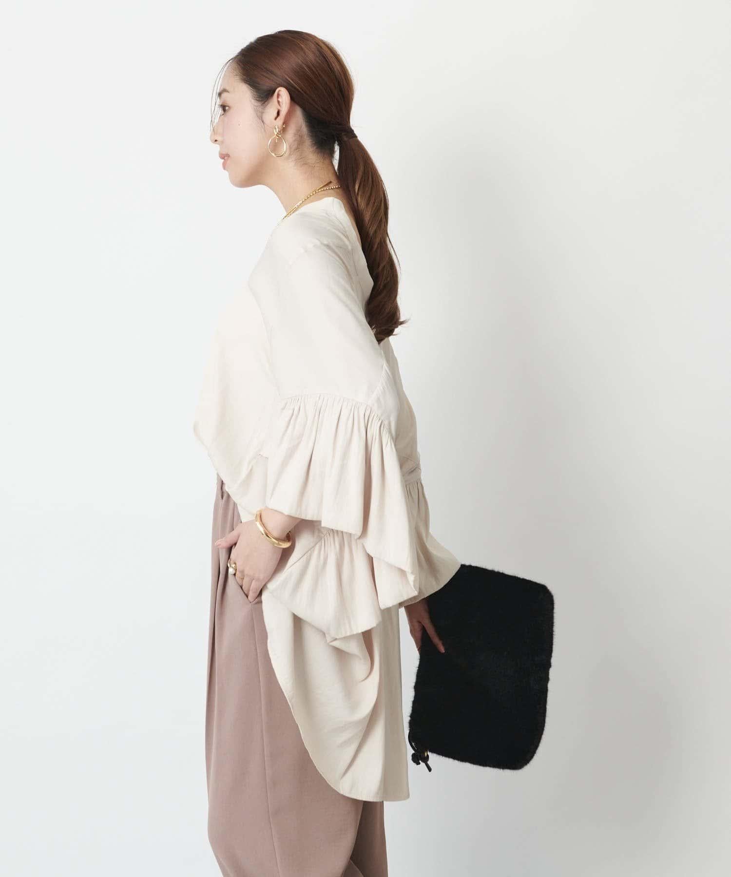 這款上衣採用喇叭袖設計,吸引眼球,營造出可愛的成熟氛圍。
