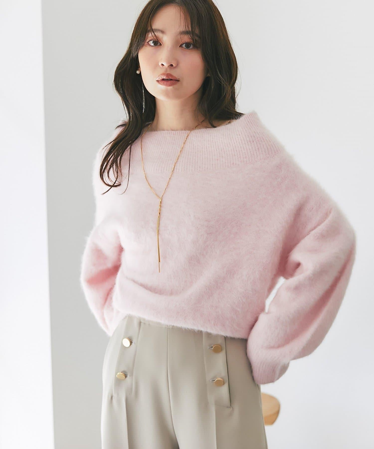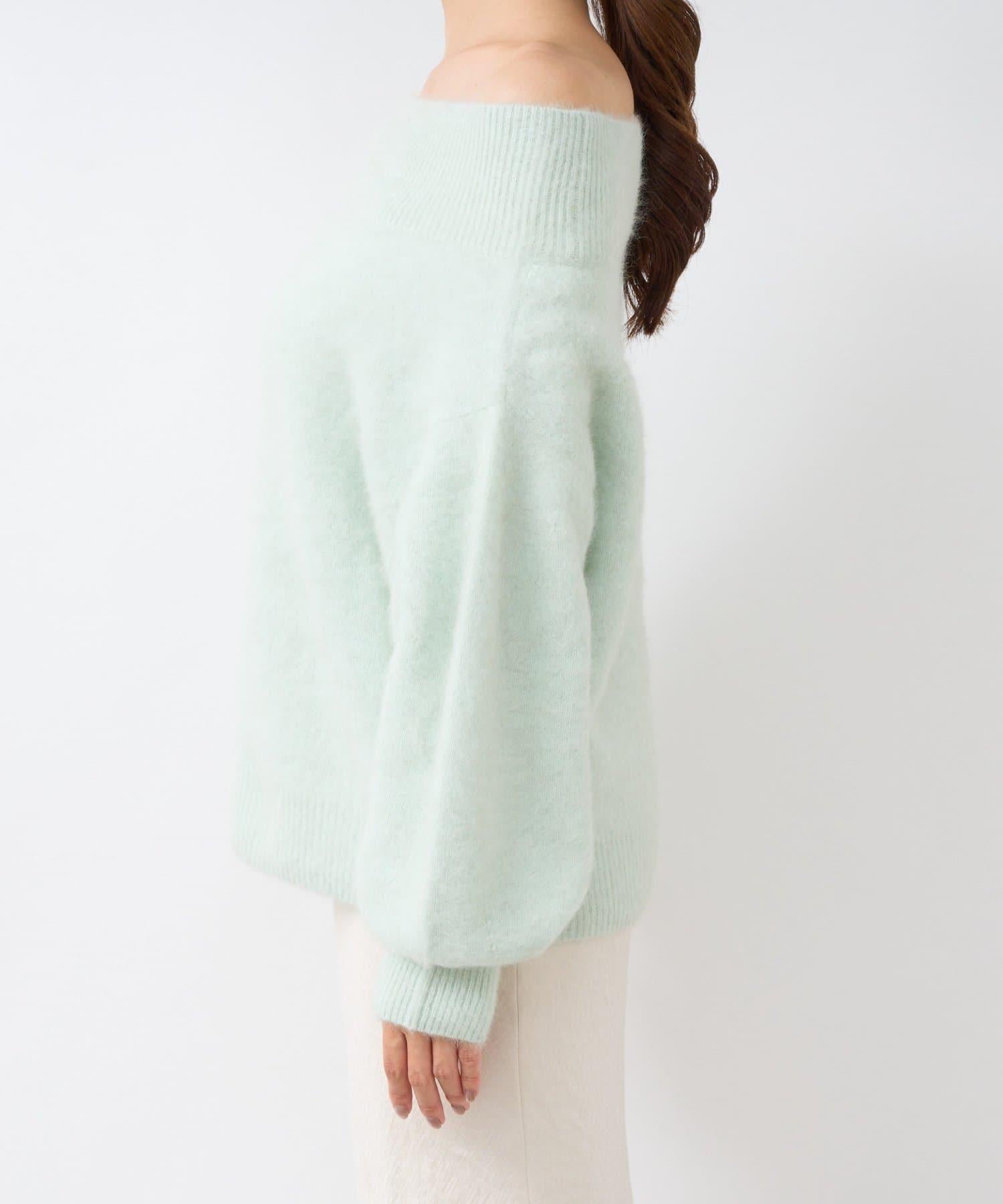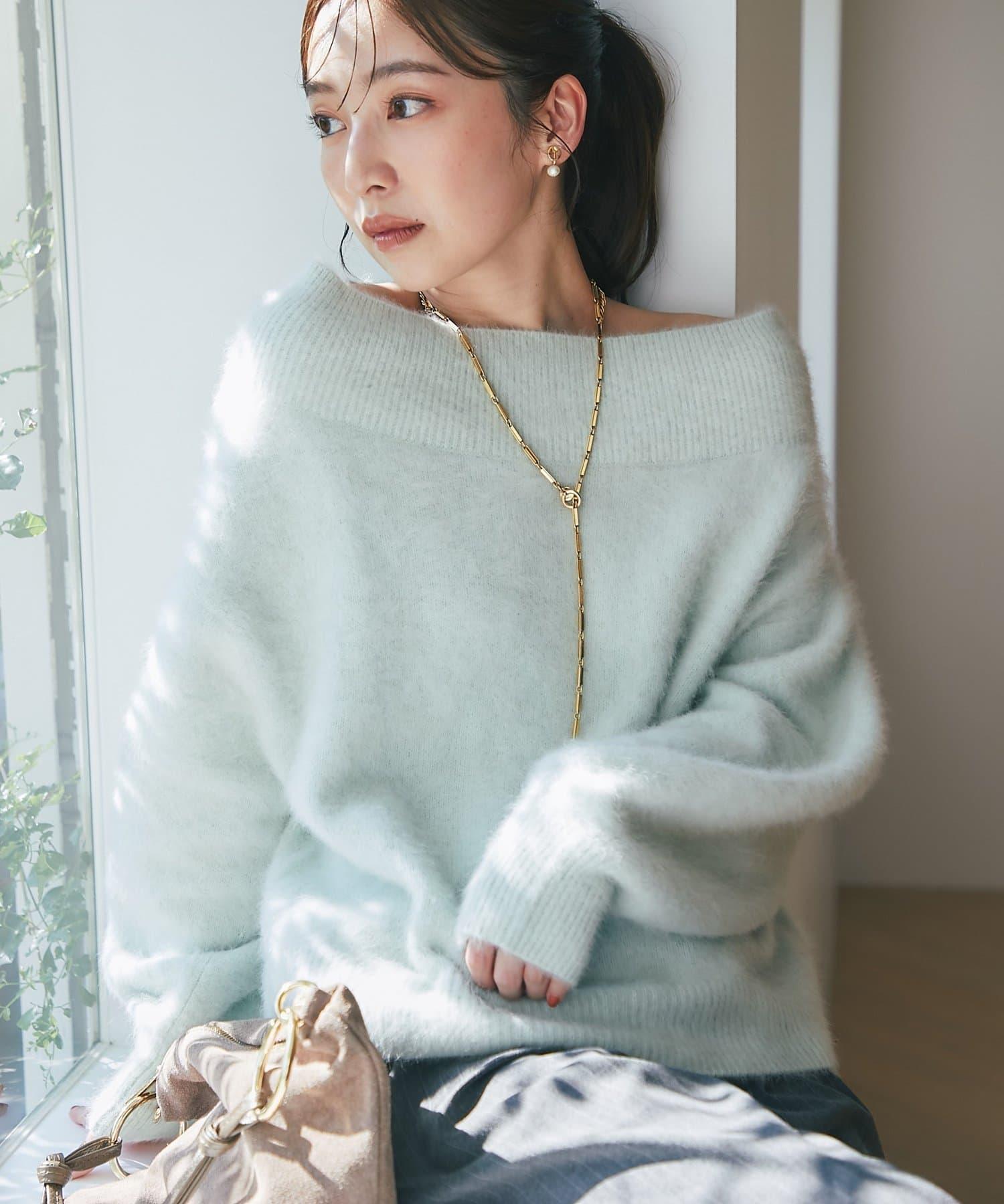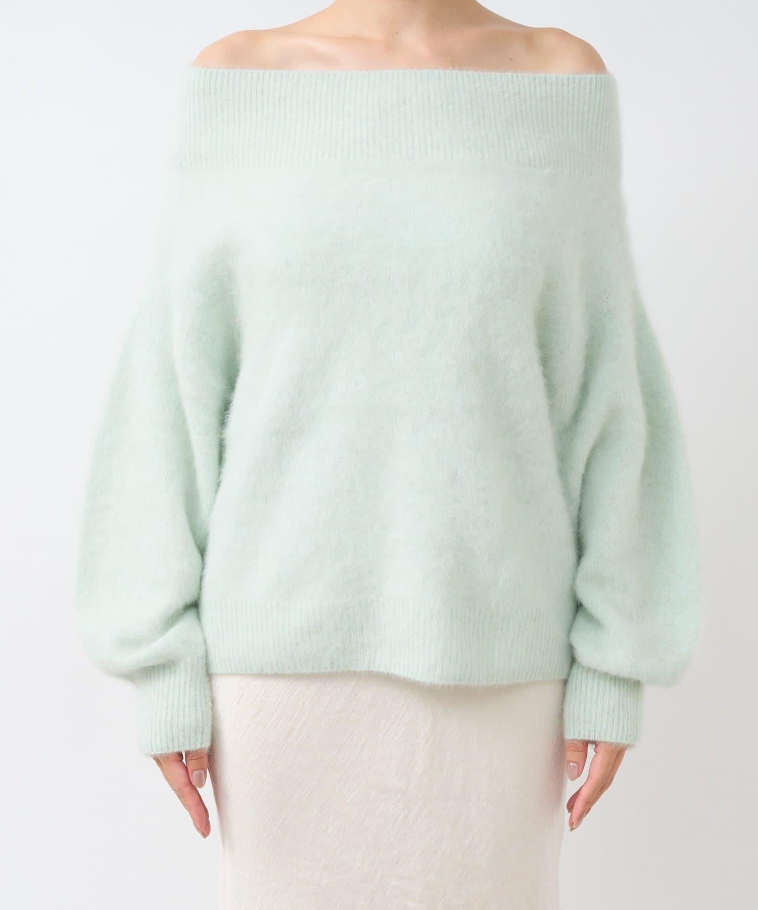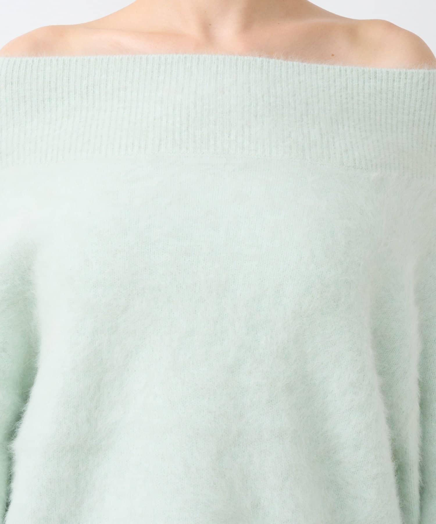 大人風格針織 毛絨羊毛羊絨混紡羅紋領一字肩針織衫