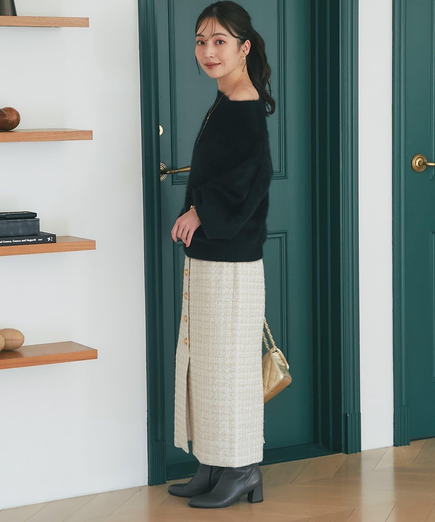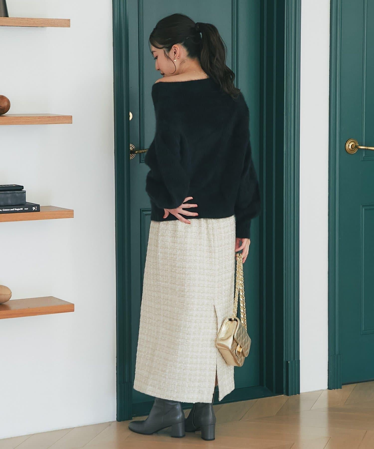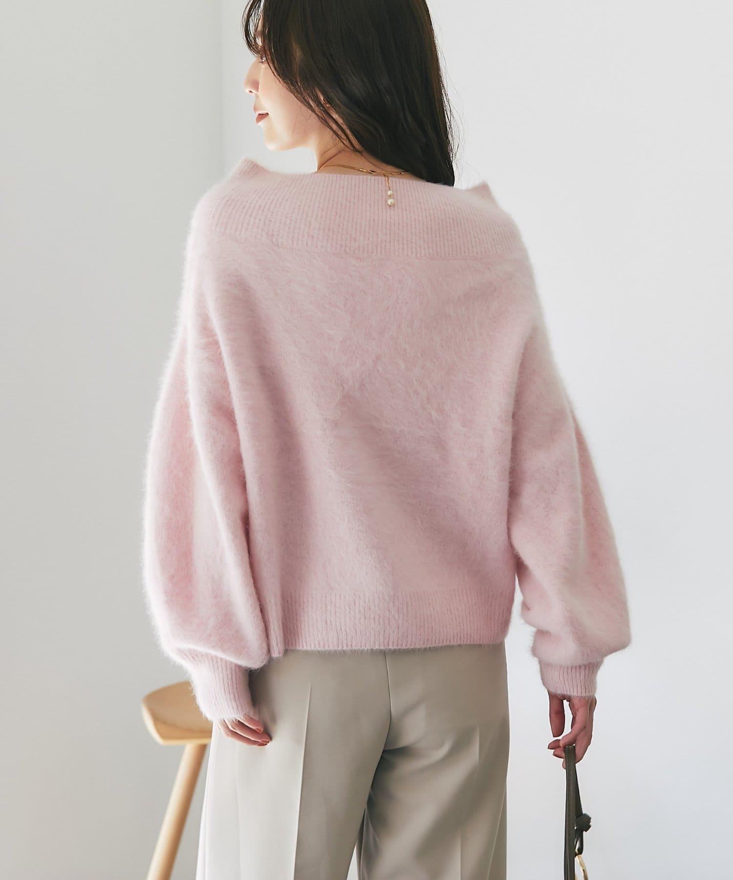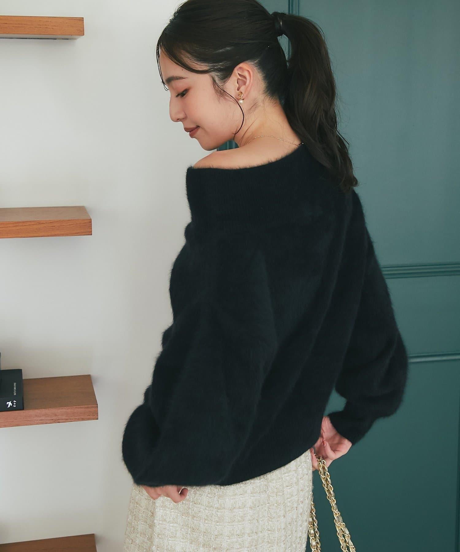 大人風格針織 毛絨羊毛羊絨混紡羅紋領一字肩針織衫