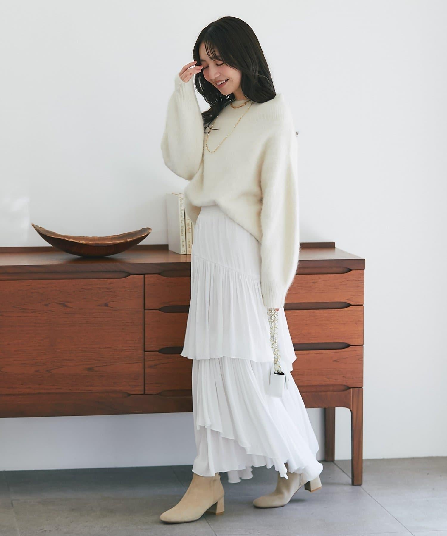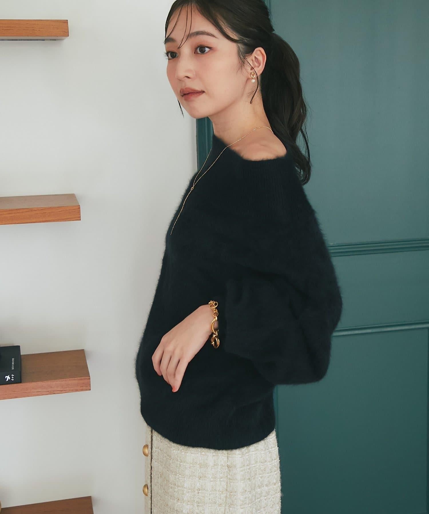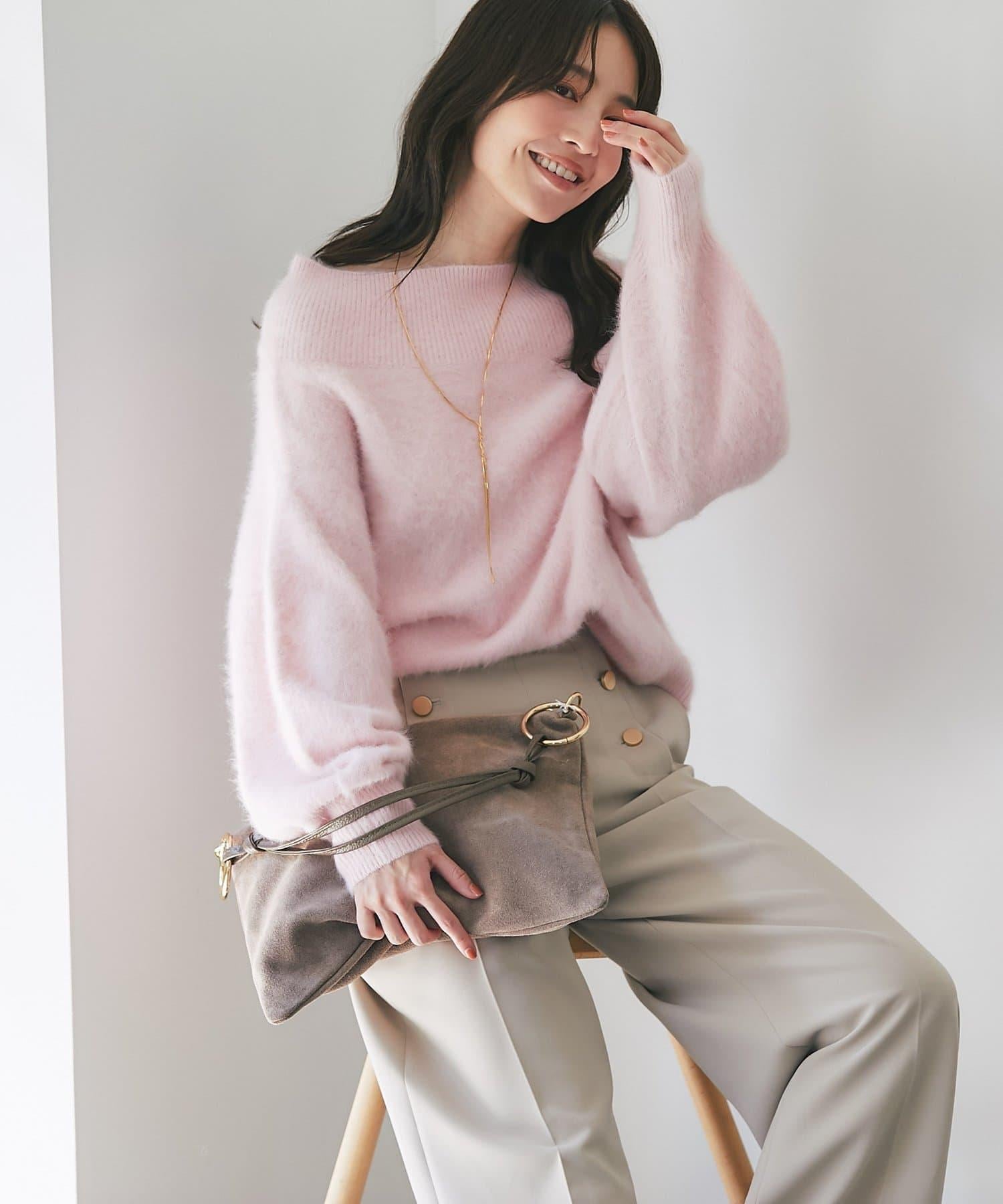 經典的瓶領針織衫,給人柔軟蓬鬆的感覺。