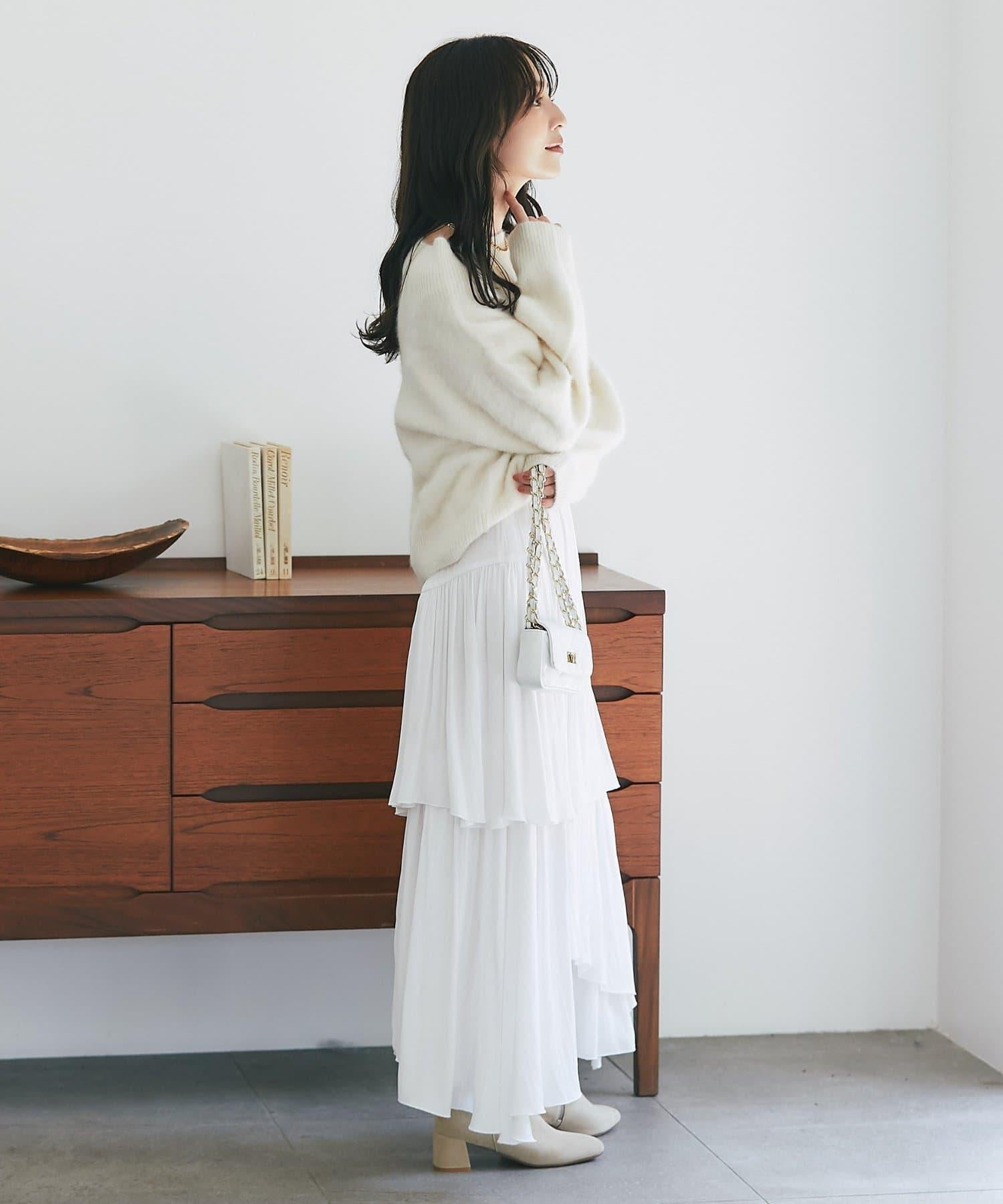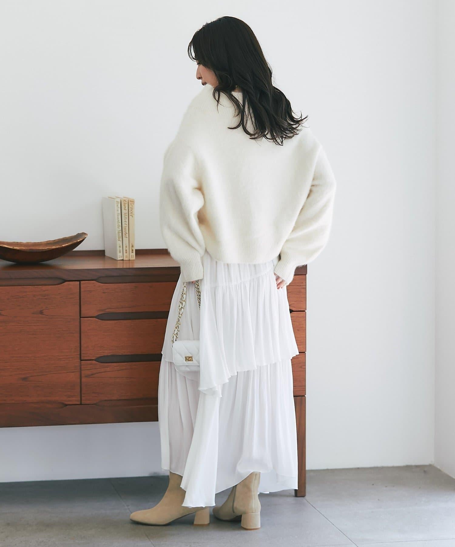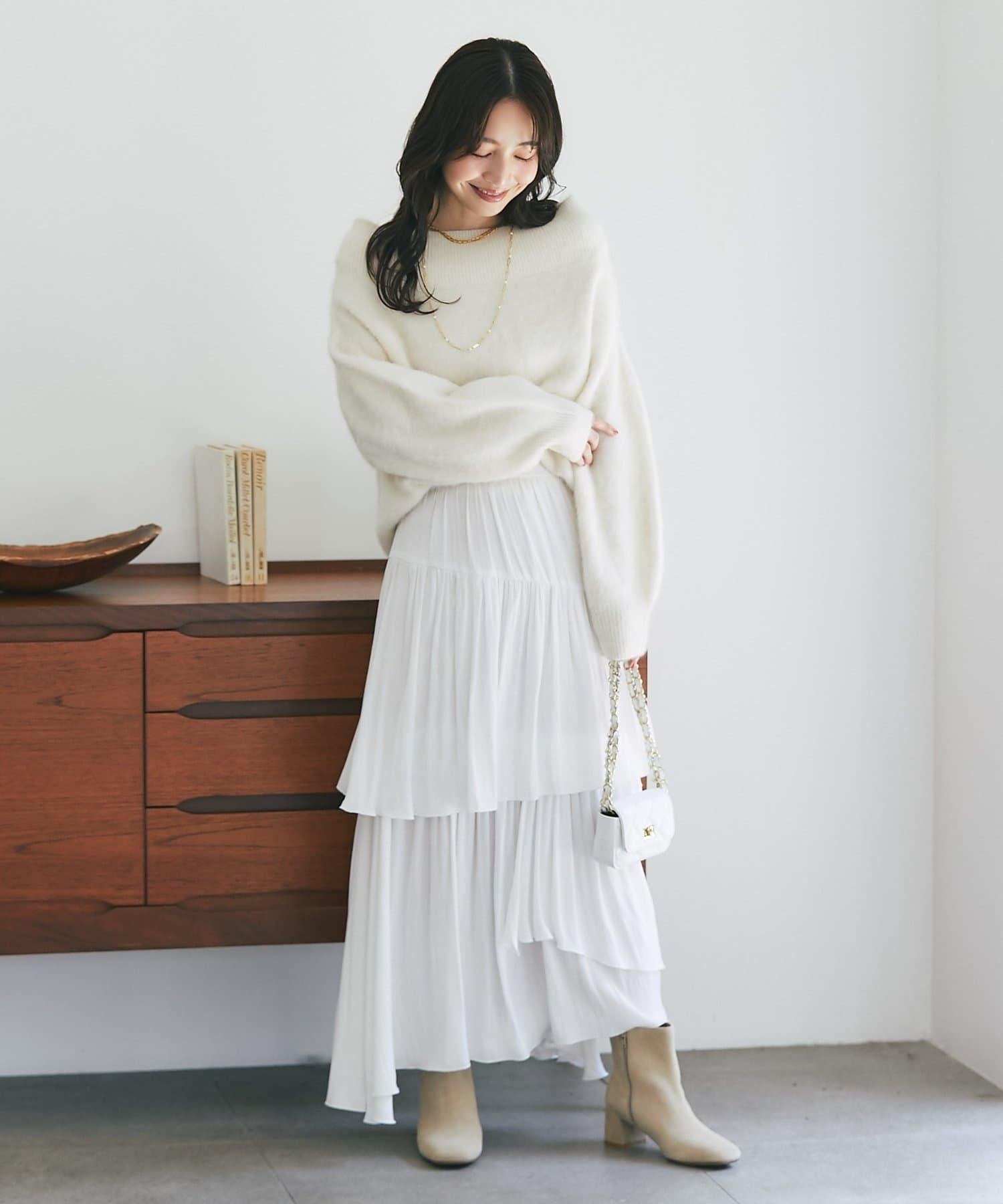 經典的瓶領針織衫,給人柔軟蓬鬆的感覺。