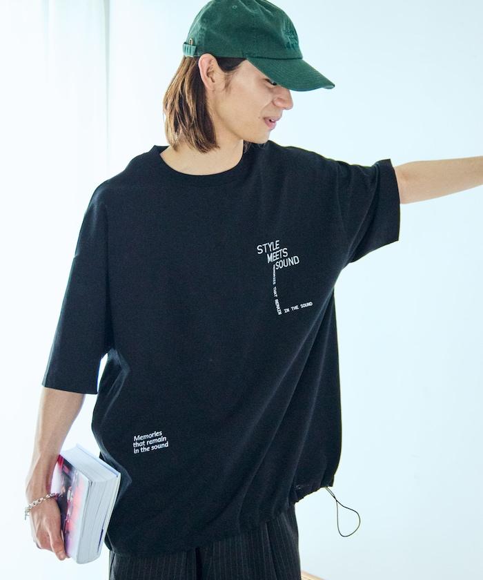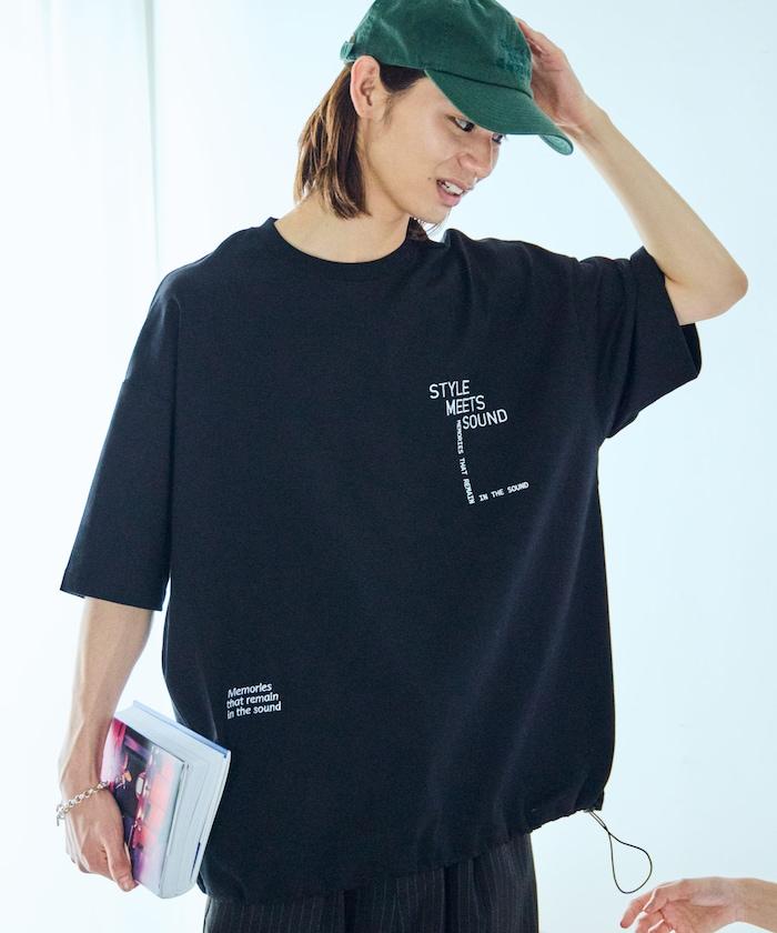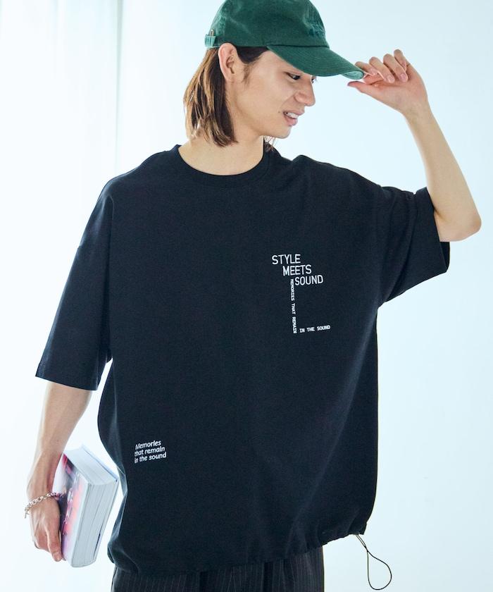 大輪廓設計刺繡下襬繩帶 T 恤