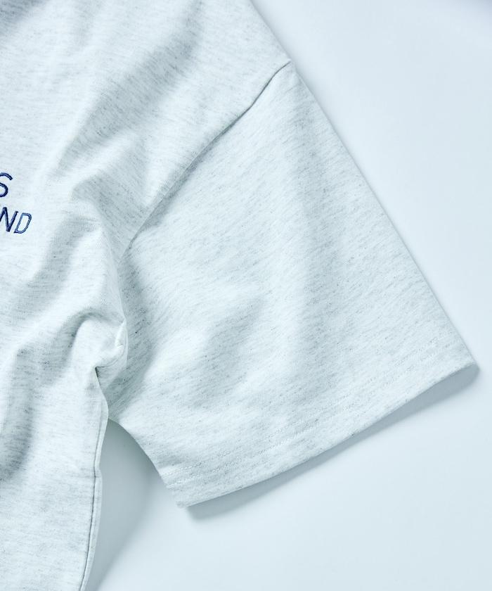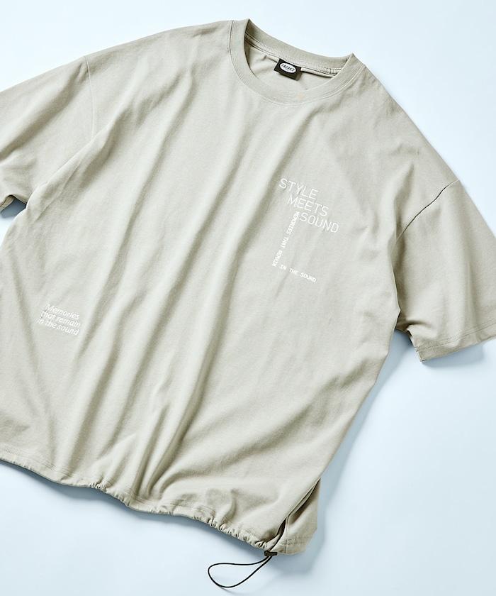 大尺寸設計刺繡下襬繩帶圓領T恤
