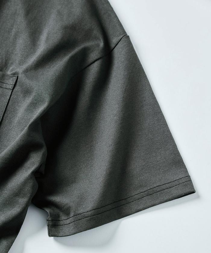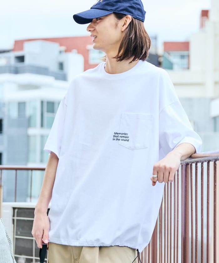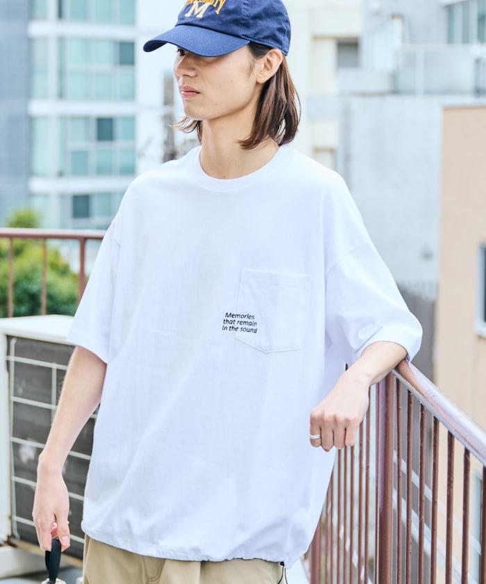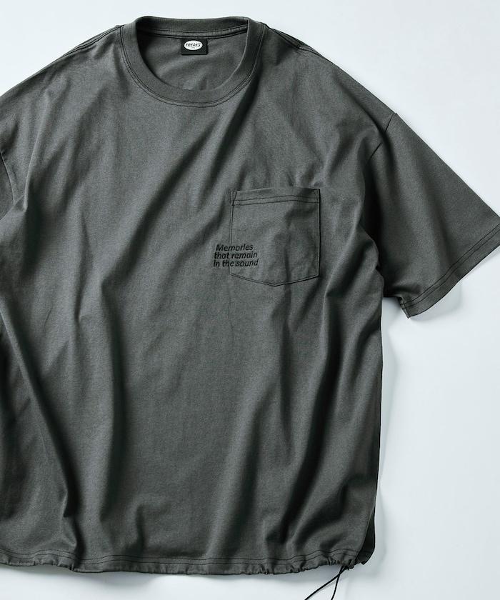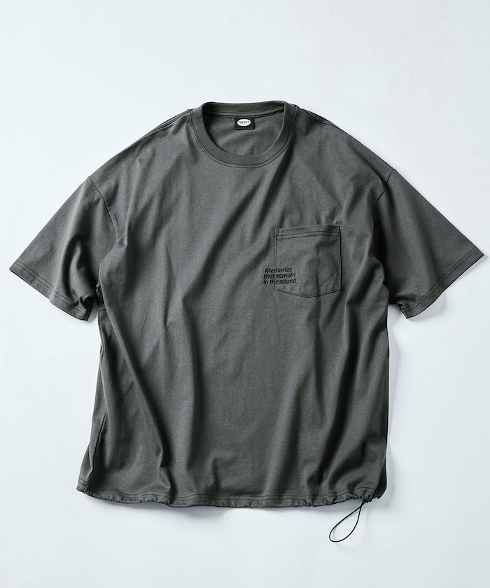 大尺寸 印花裝飾 下襬繩帶 口袋T恤
