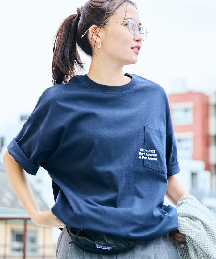 大輪廓單點刺繡下襬繩口袋 T 恤