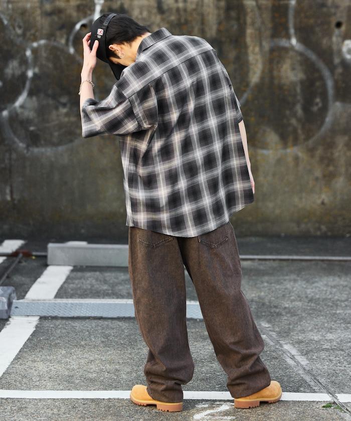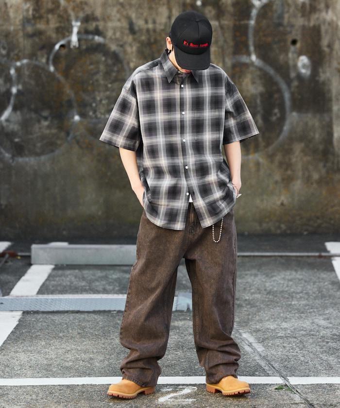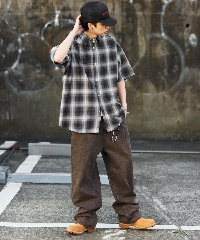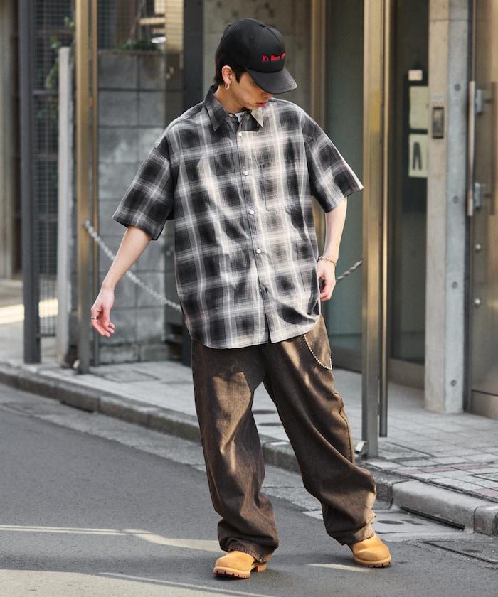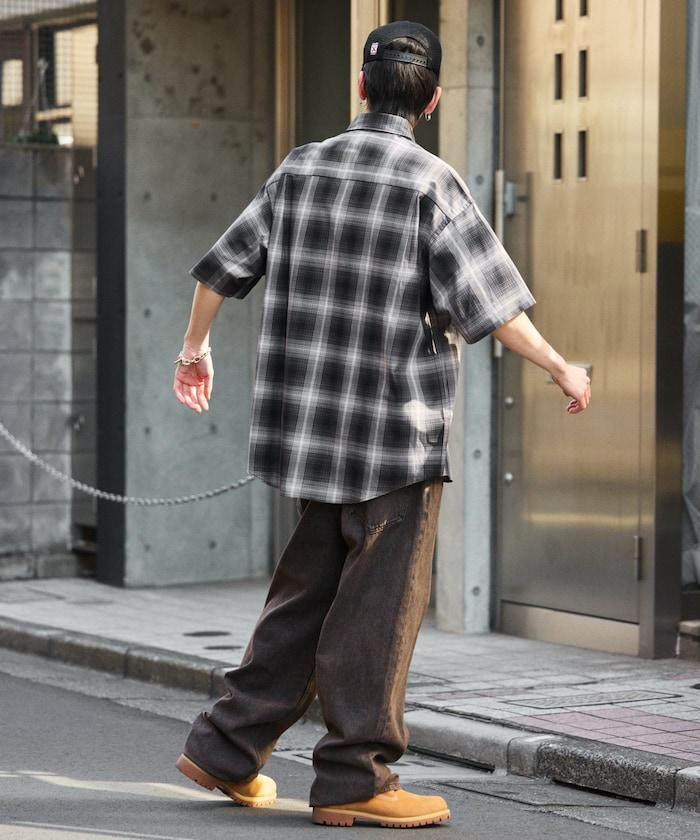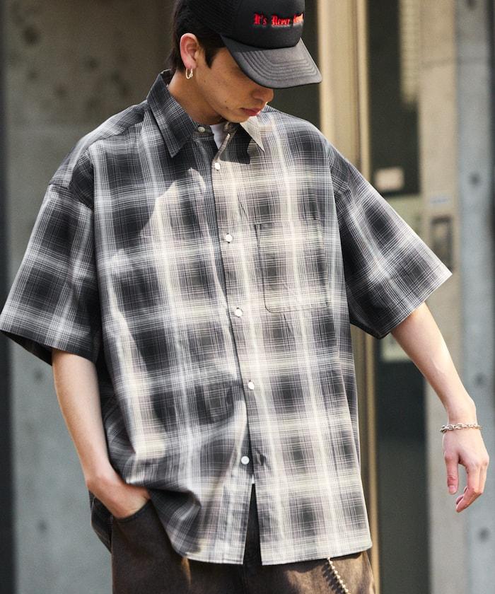 春夏混色格紋襯衫,廓形寬鬆,有一種下墜感。