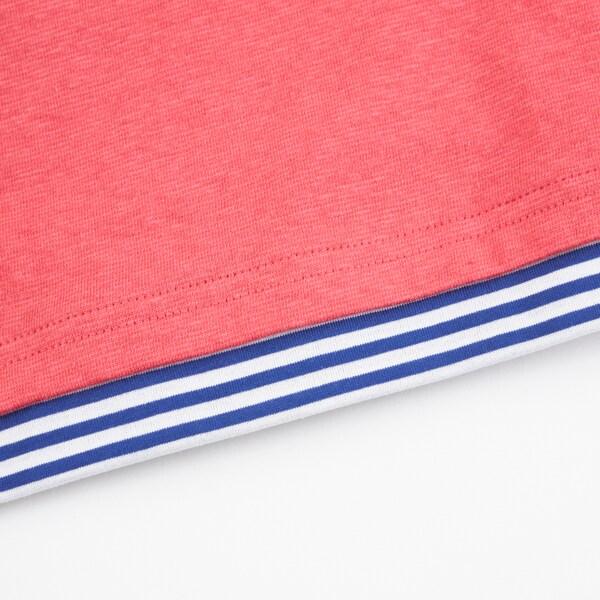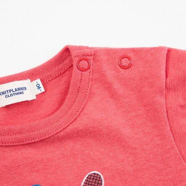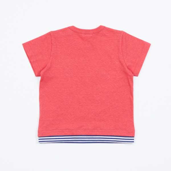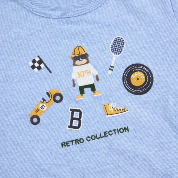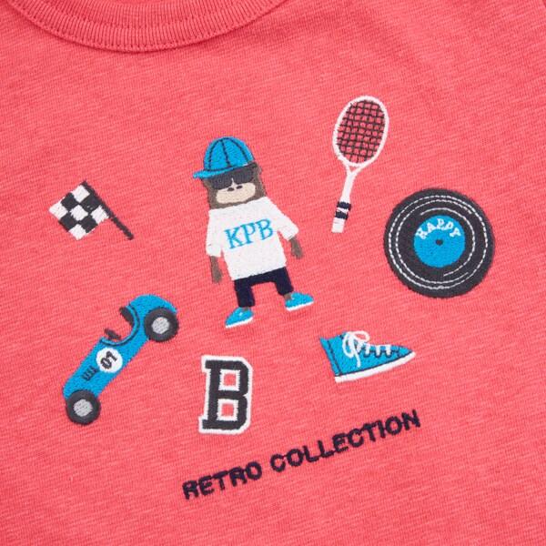繡有猩猩和賽車圖案的夏季質感針織短袖 T 恤。下襬有鑲邊圖案,是一款具有層次感的時尚單品。