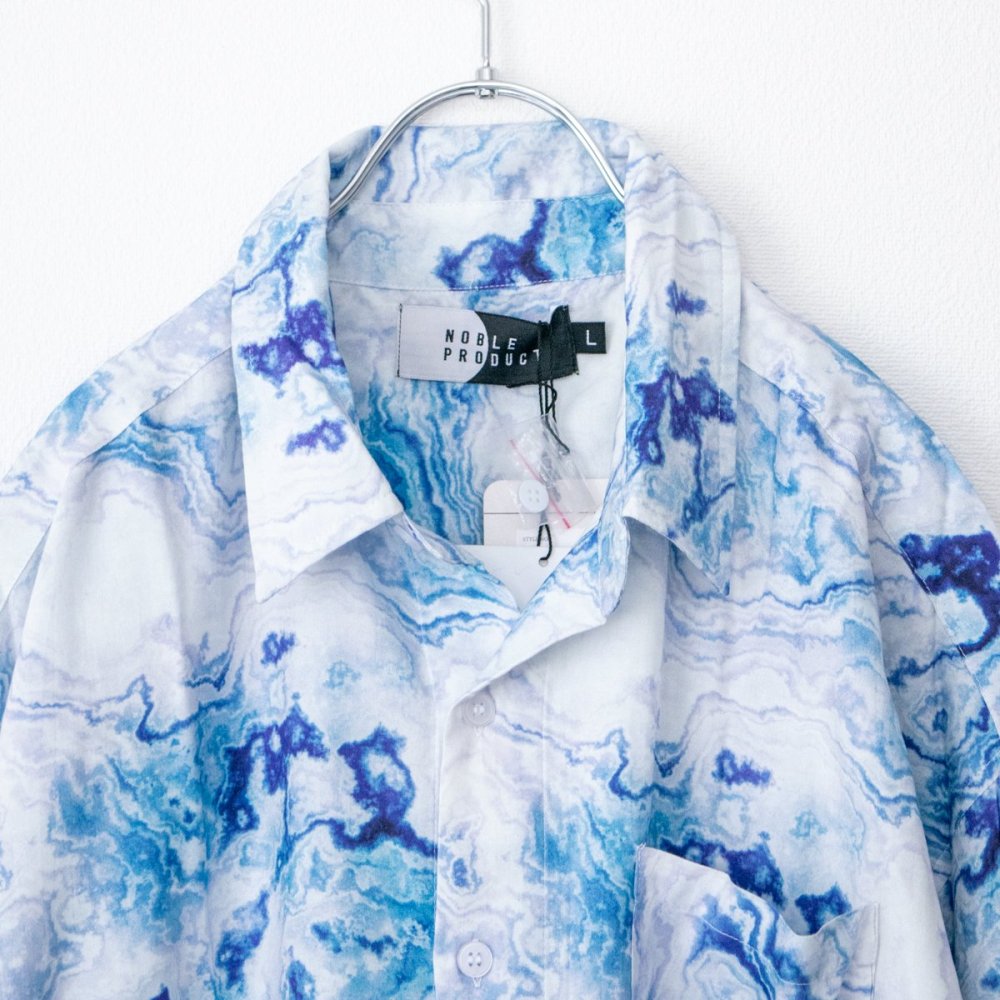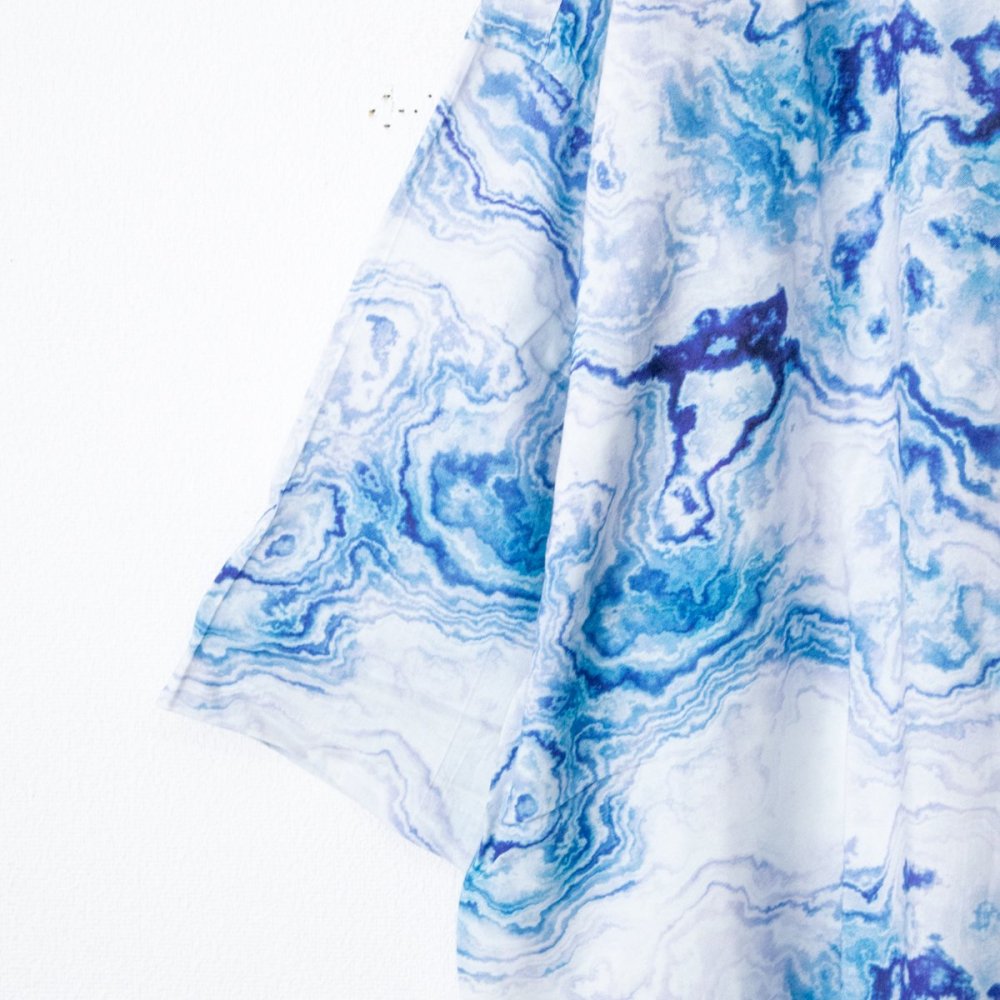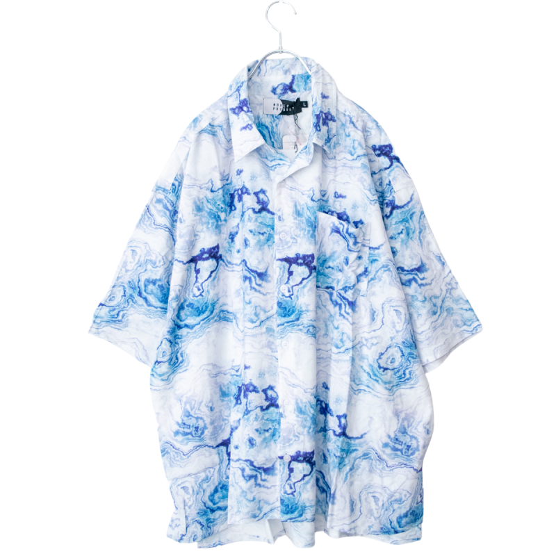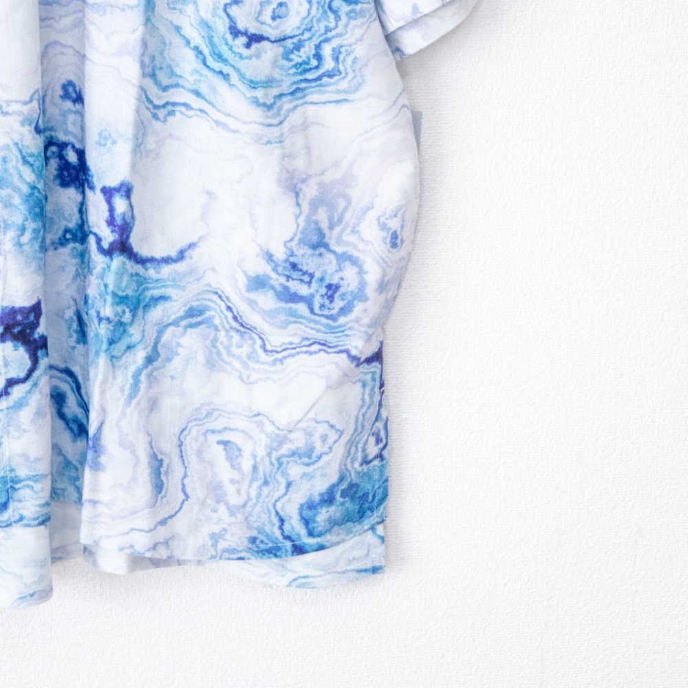 大理石紋綢緞全印花短袖襯衫 藍色 (CT7087BL)