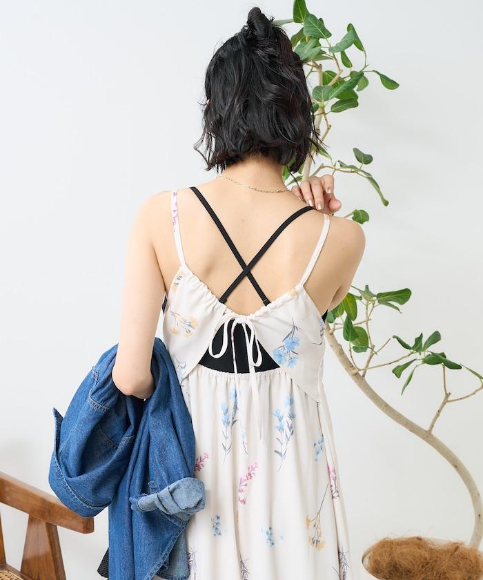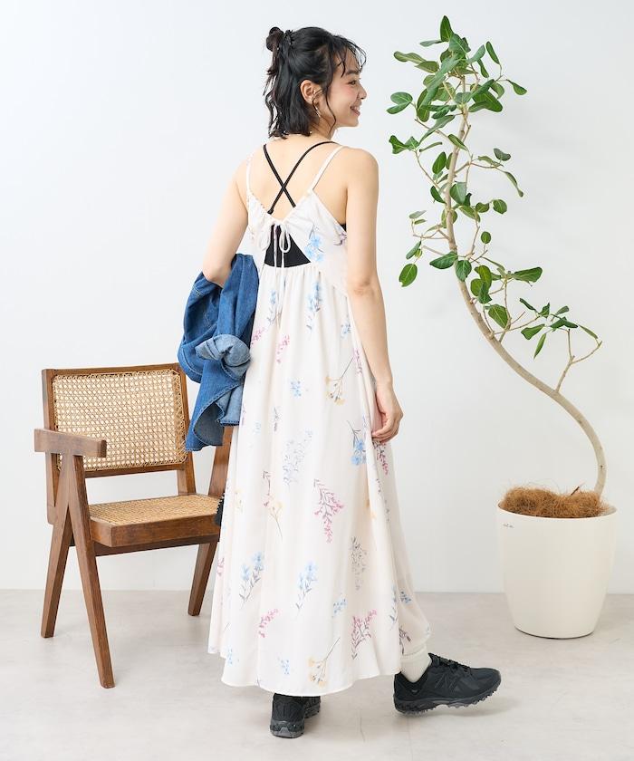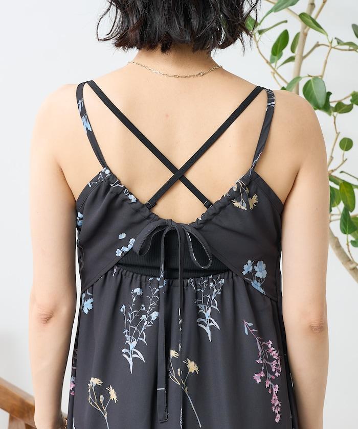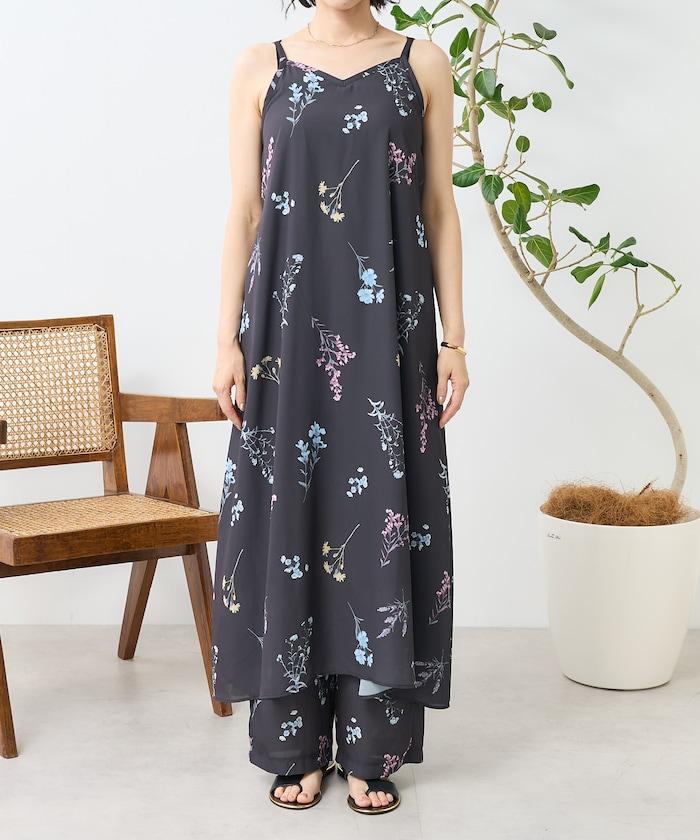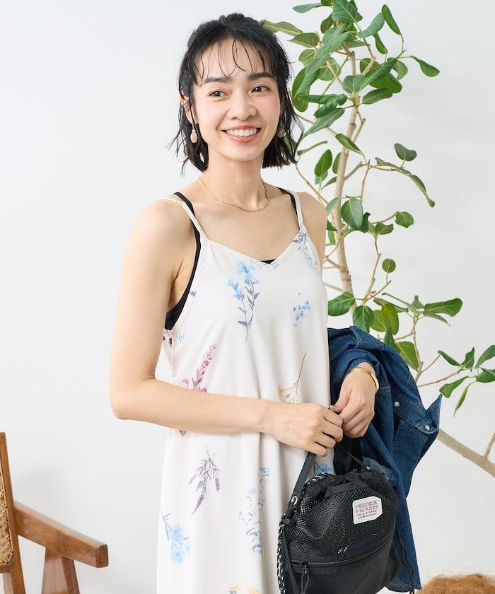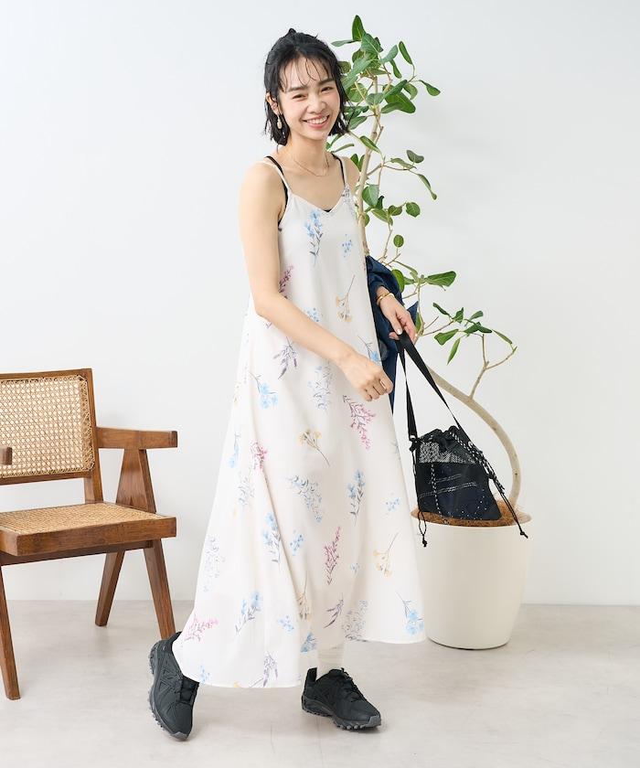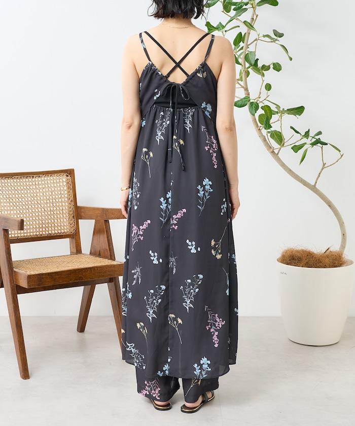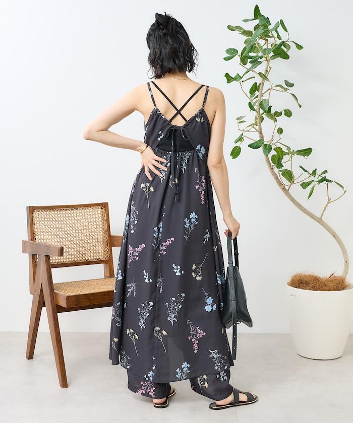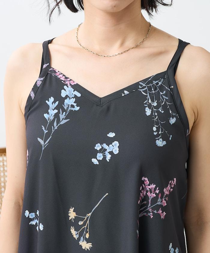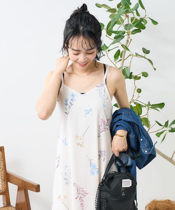 大花印花吊帶連衣裙