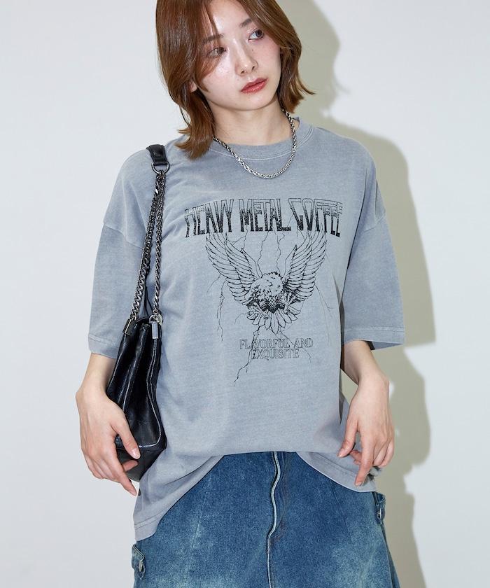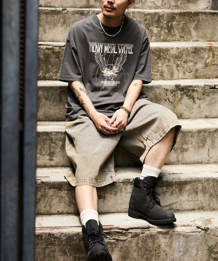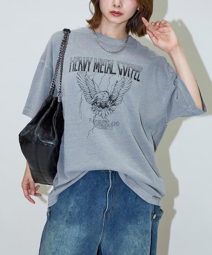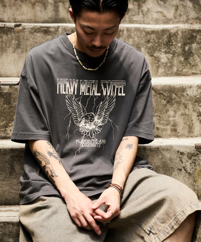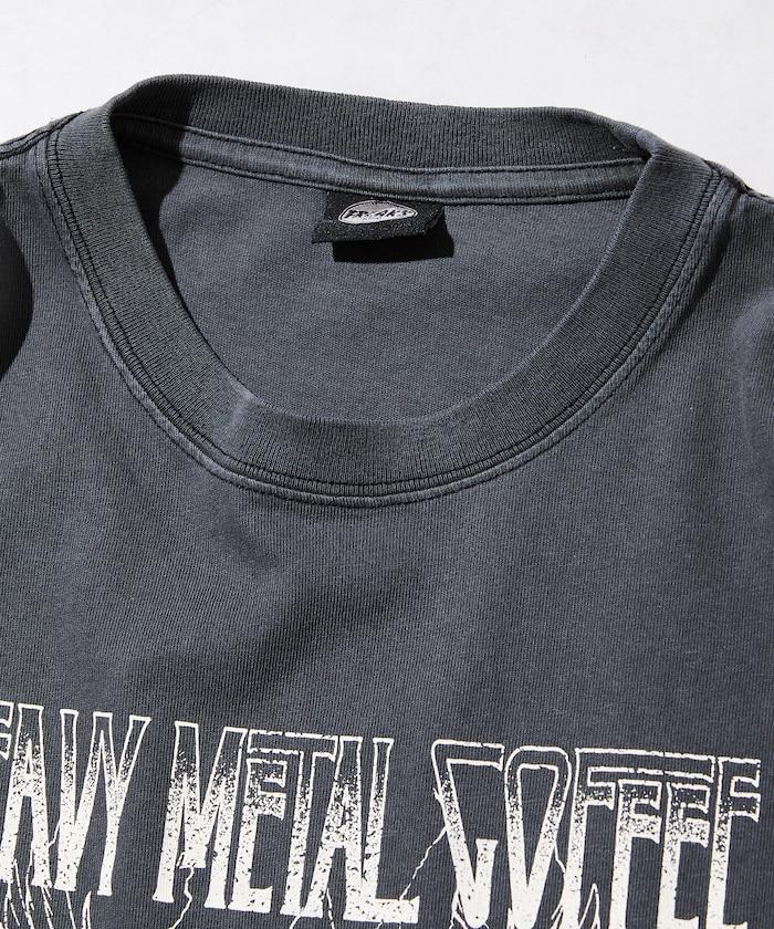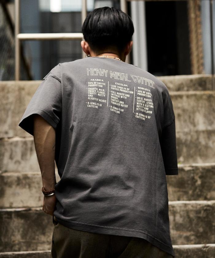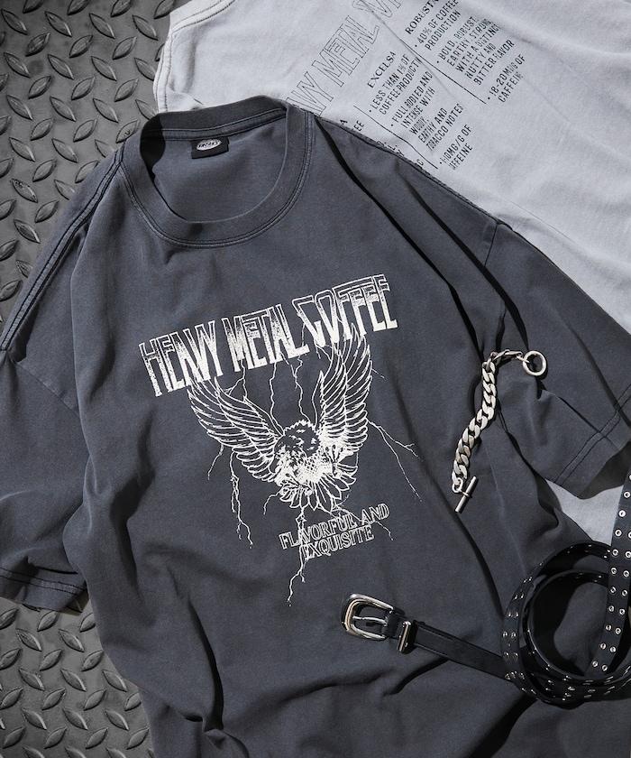 大號剪裁 皮革染色 裂紋印花 圓領T恤 / 重金屬咖啡 【限定推出】