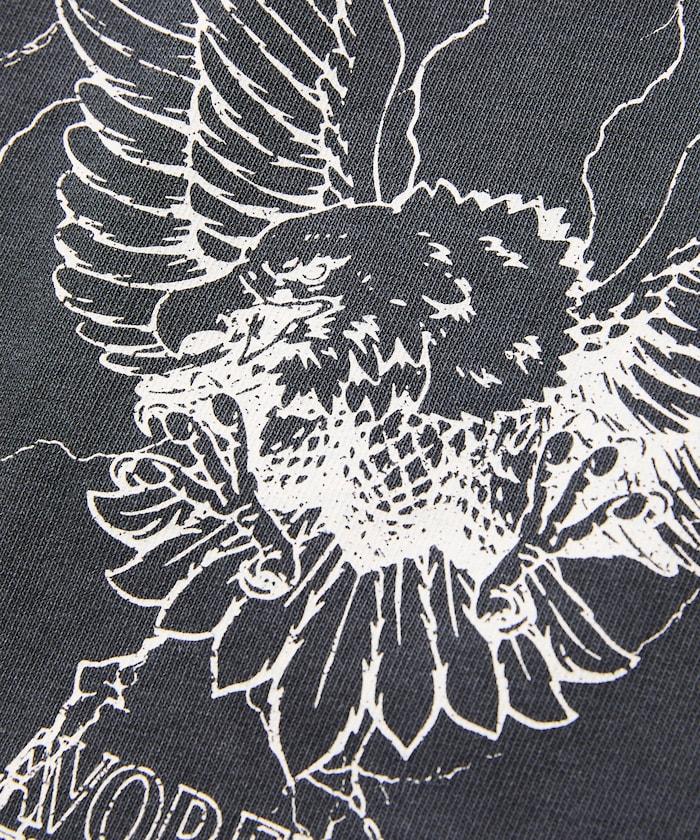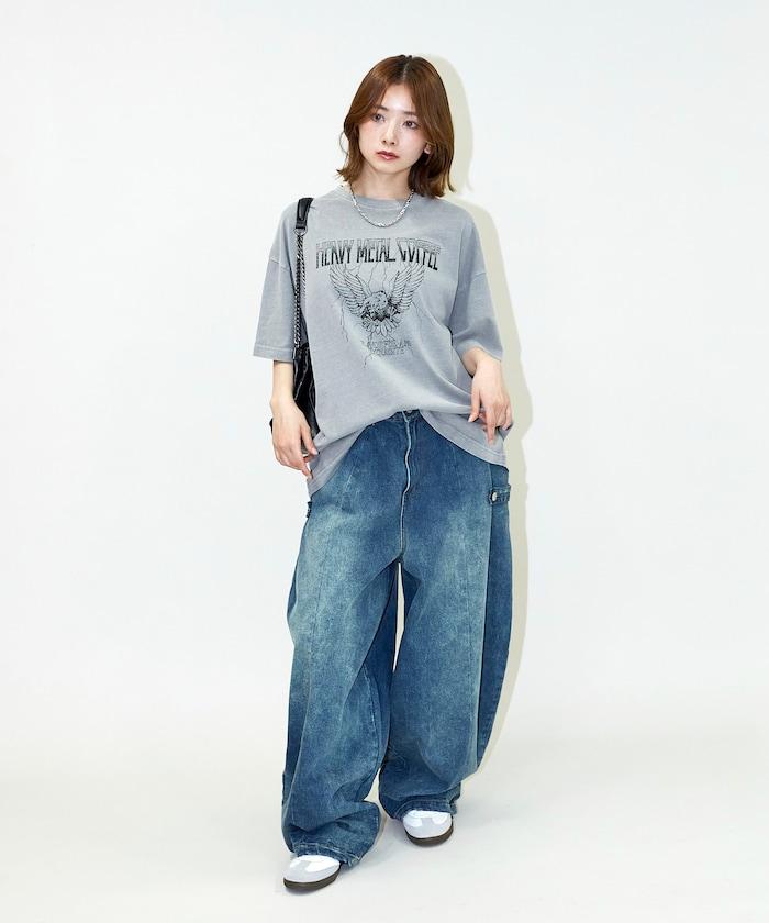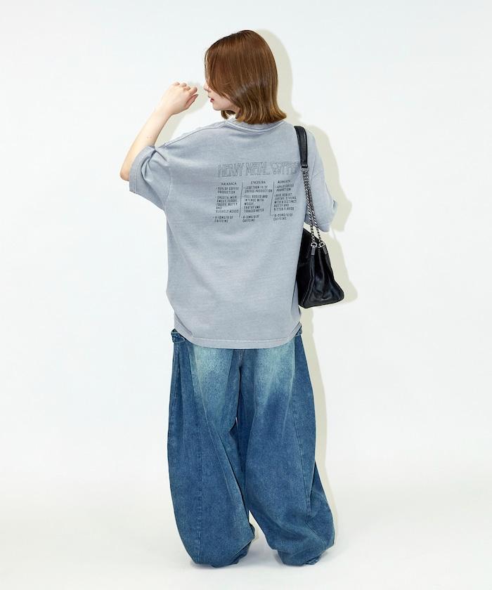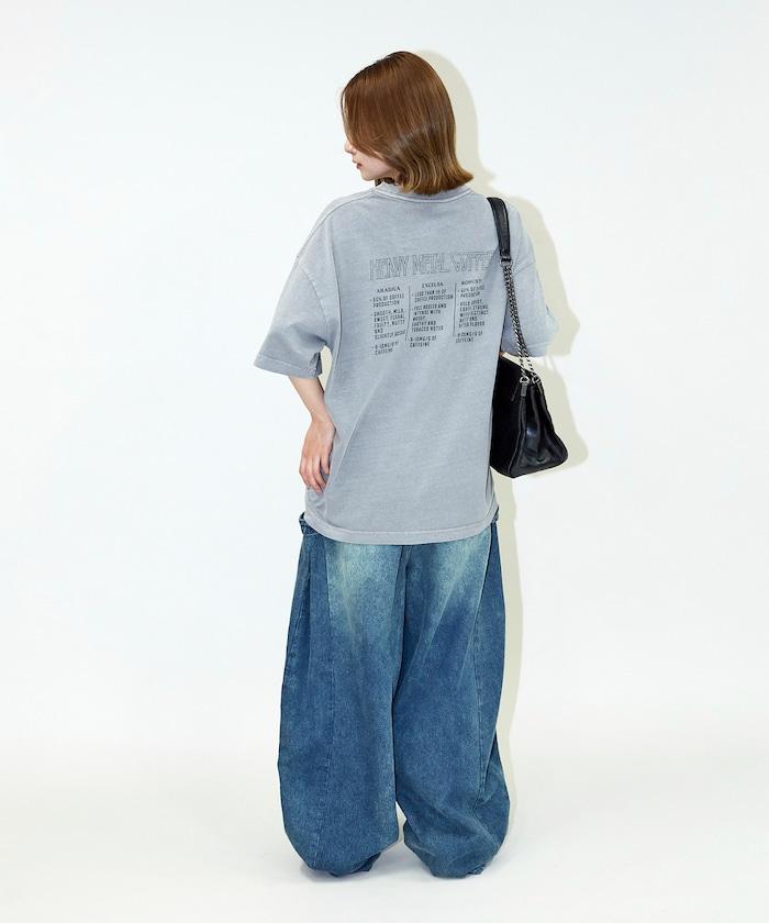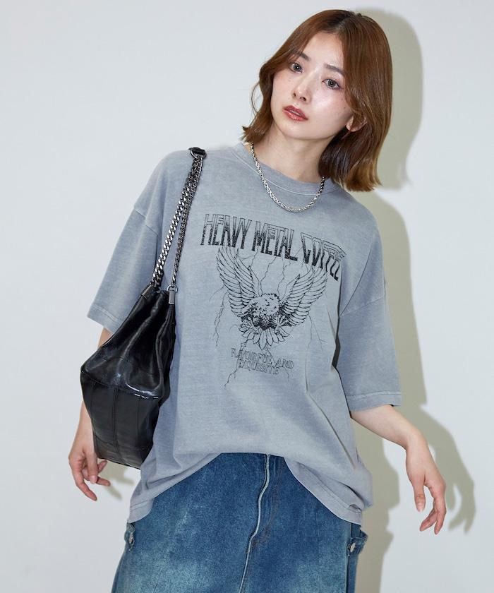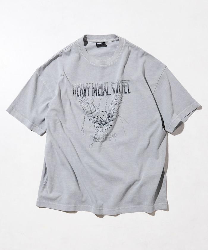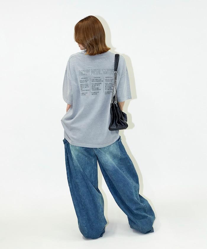 大號剪裁 皮革染色 裂紋印花 圓領T恤 / 重金屬咖啡 【限定推出】