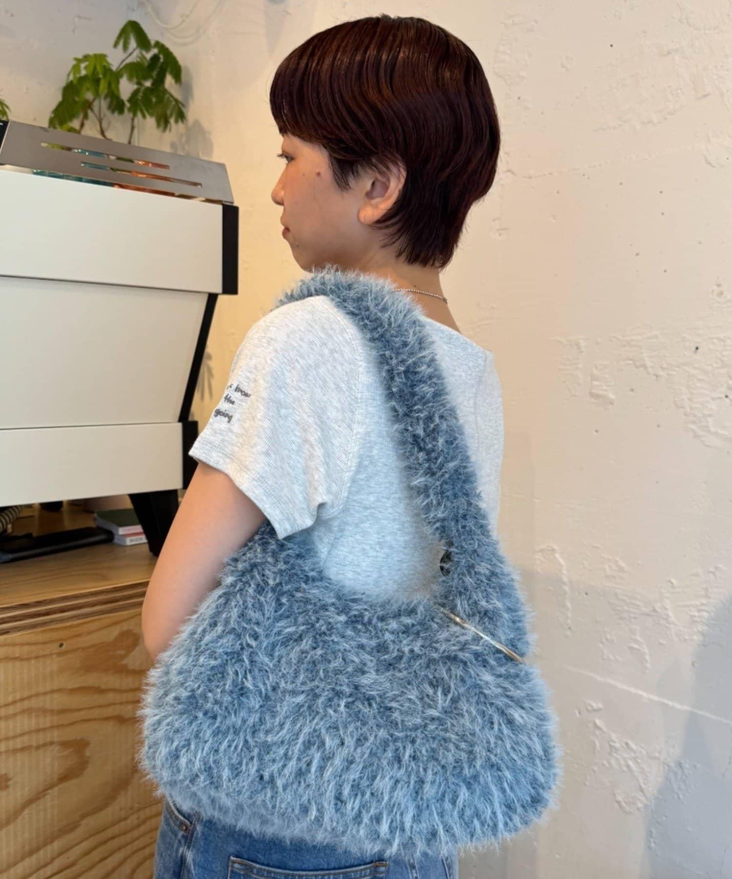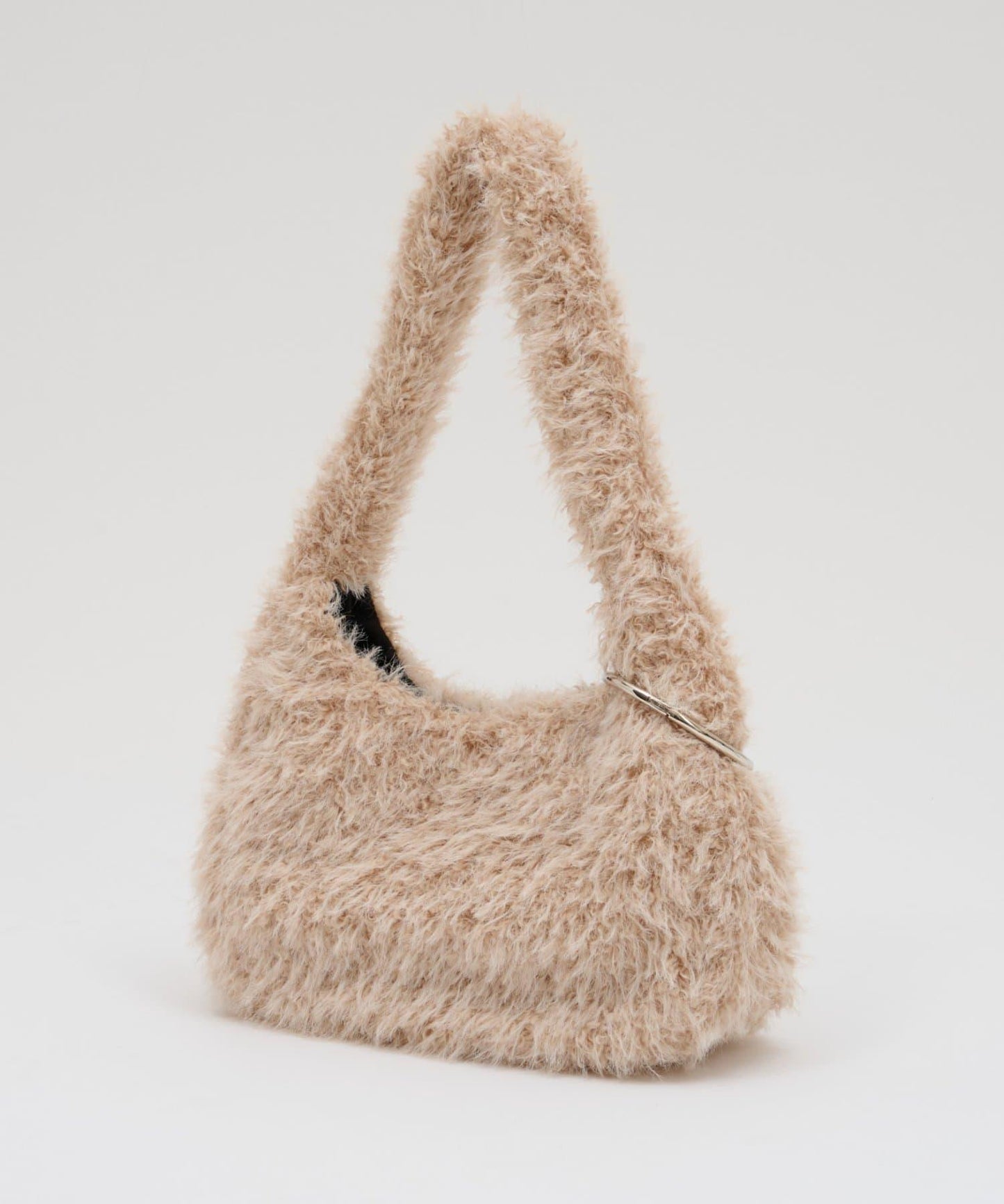 這款單手柄手袋採用蓬鬆的蟒蛇毛材料製成,看起來就像一隻泰迪熊!