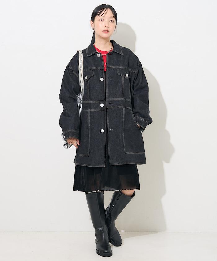 這款牛仔夾克採用 A 字形剪裁,給人一種時髦的感覺。