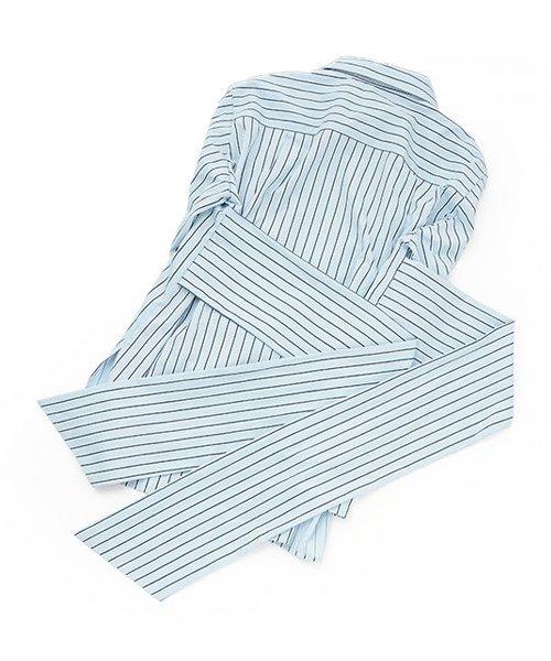 這款襯衫上衣設計簡潔,大緞帶的點綴使其更加突出。