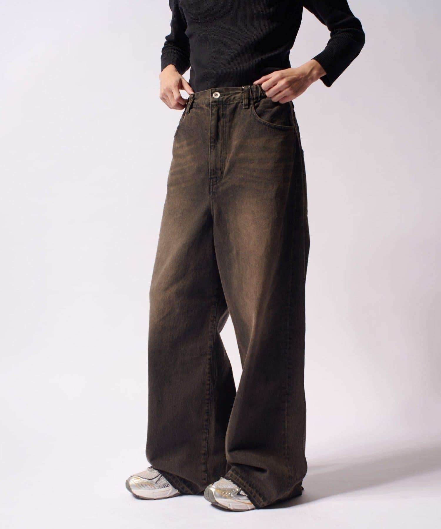 腰部有鬆緊帶,並通過繫帶進行調節。下襬採用咬邊設計,就像牛仔布被解開了一樣。這是一種全新的牛仔布料,即使是牛仔布料,也能輕鬆穿著。
