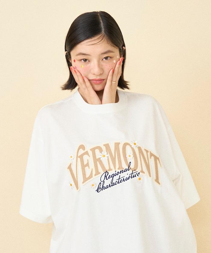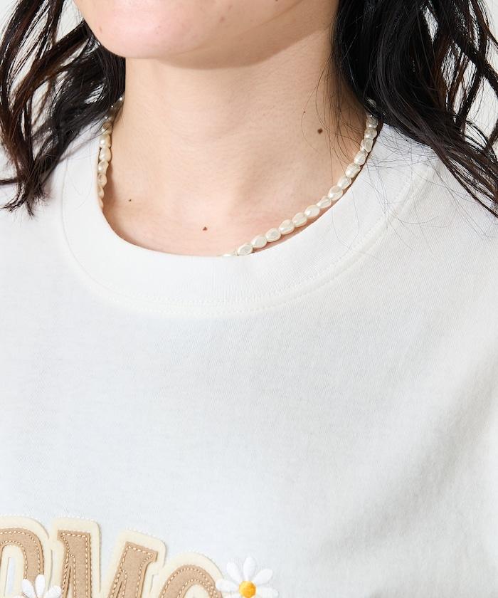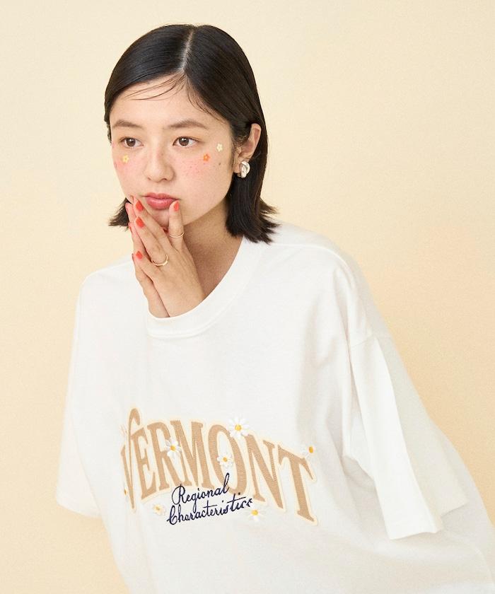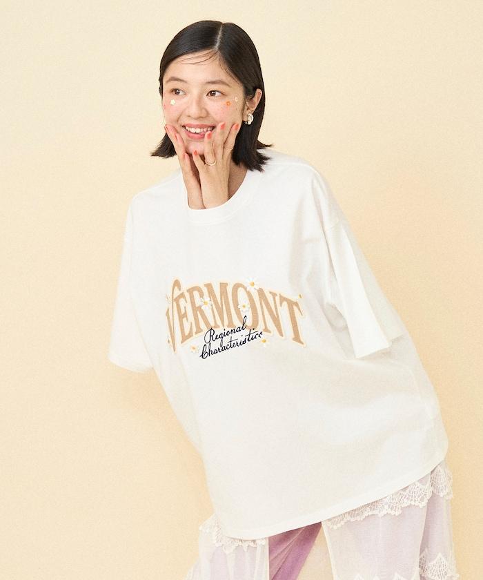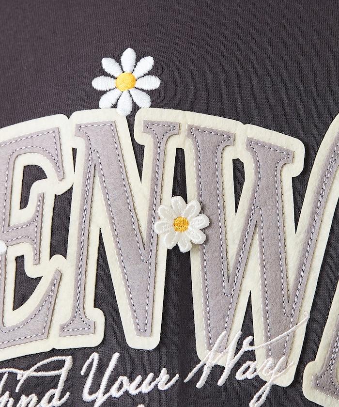 學院風的徽章標誌配上雛菊刺繡,休閒又可愛。