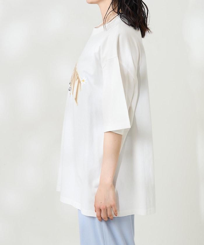 這款 T 恤可搭配寬鬆長褲、牛仔長褲或運動褲,展現男孩子氣,也可搭配喇叭裙,展現女性魅力。