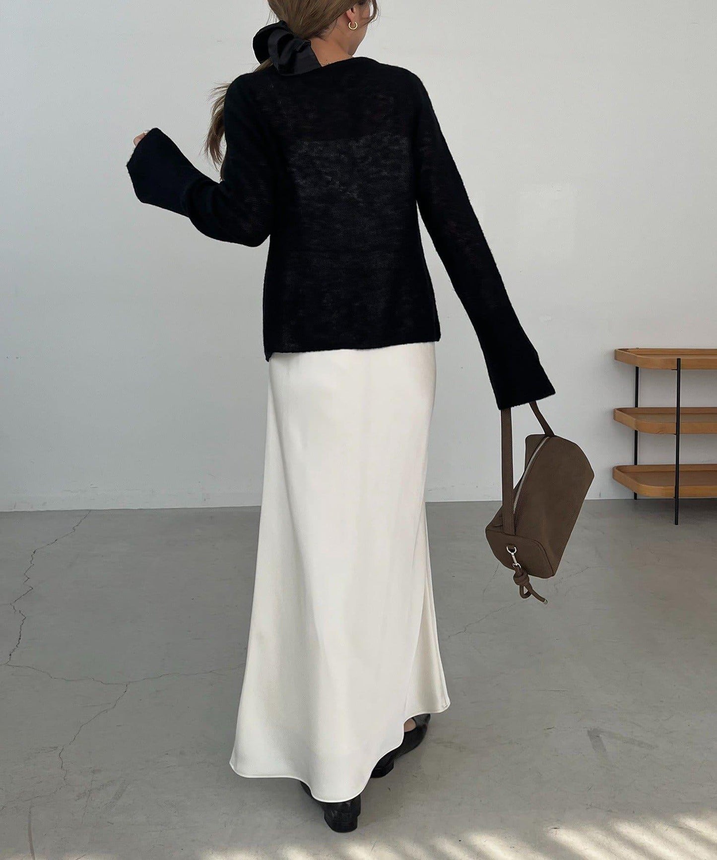 下襬掛鉤打開穿,增加寬鬆感。
