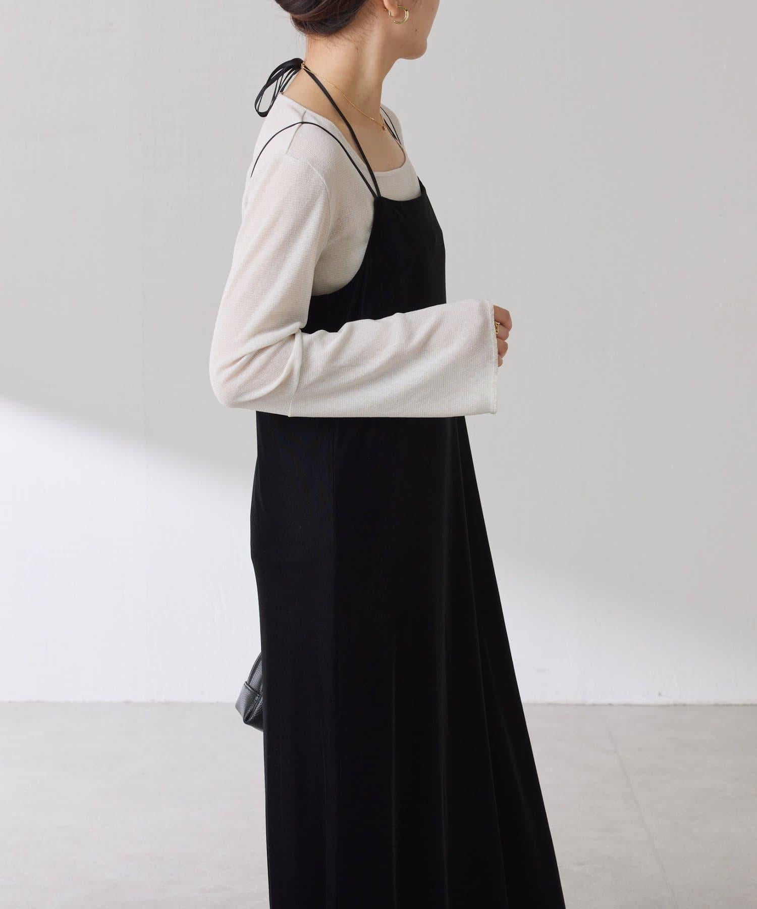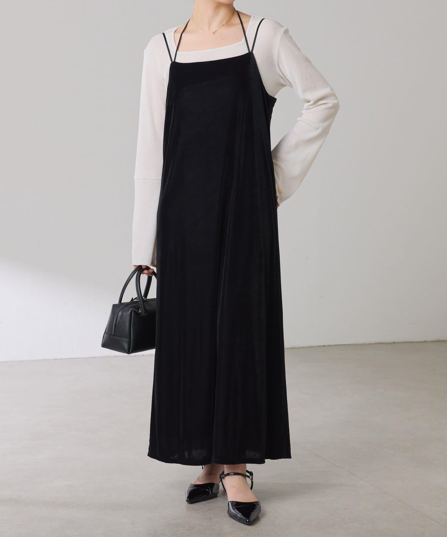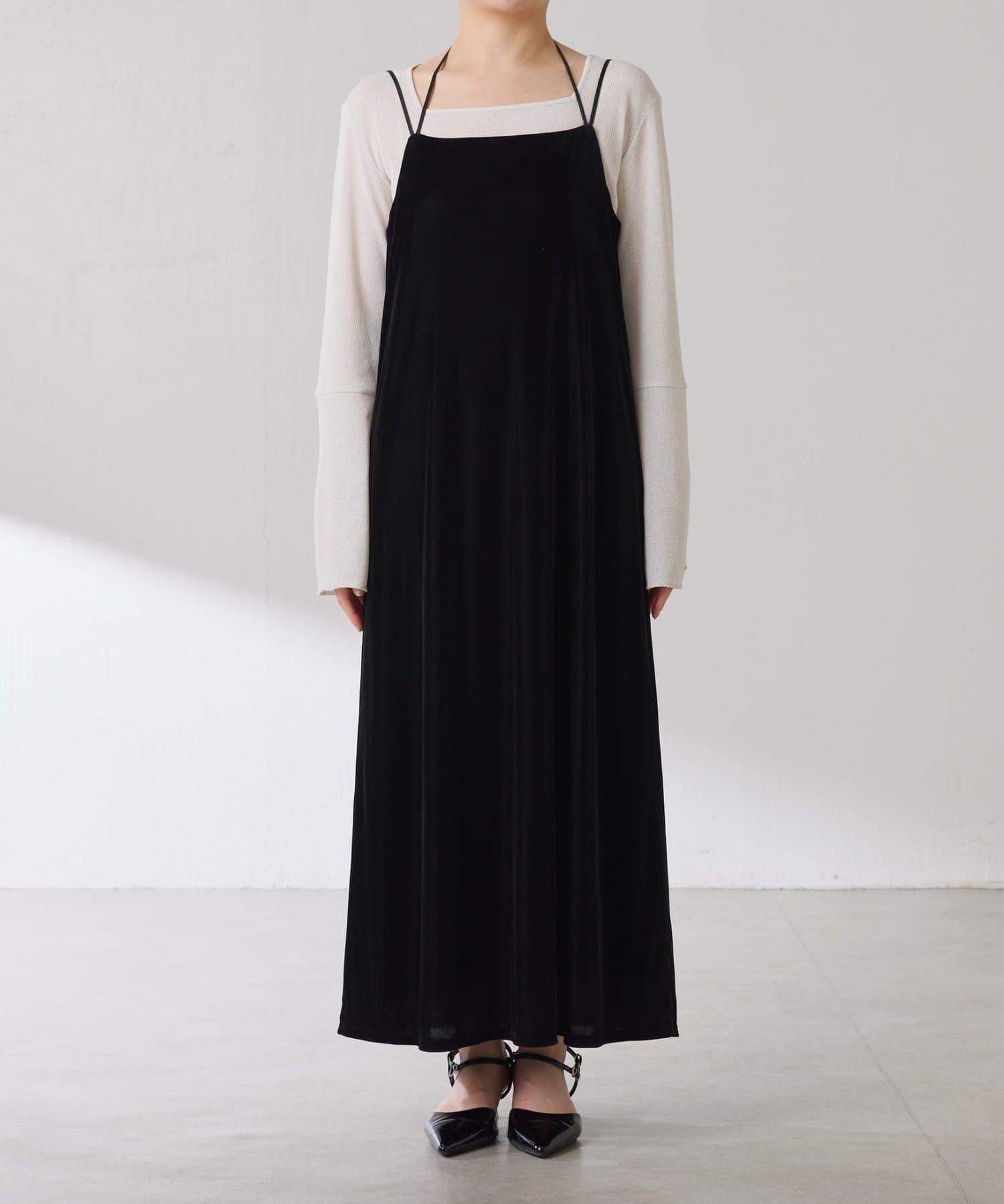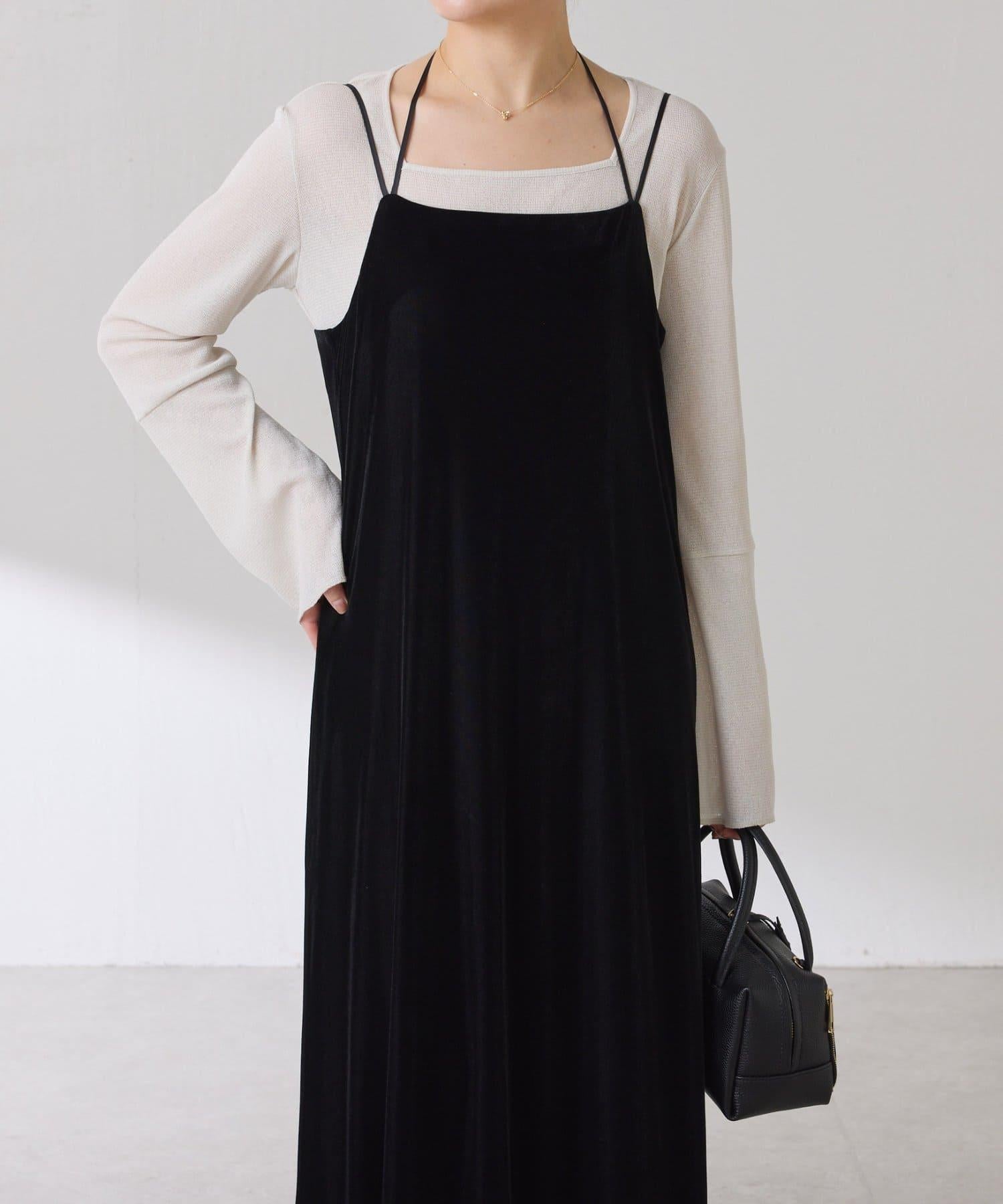 這款天鵝絨吊帶連衣裙採用清新的吊帶設計。