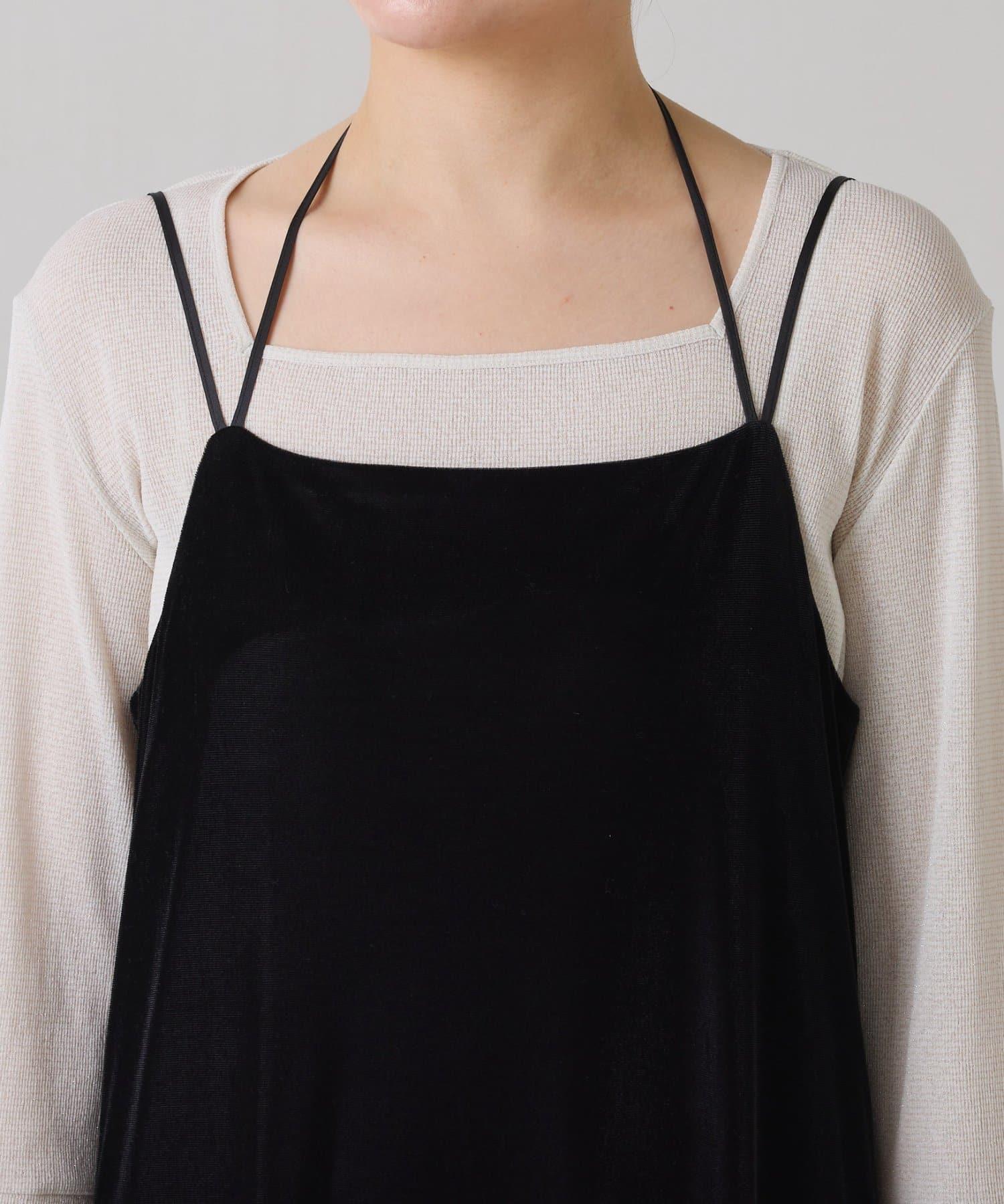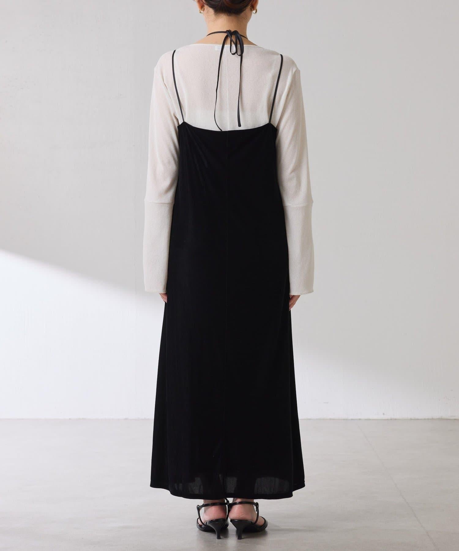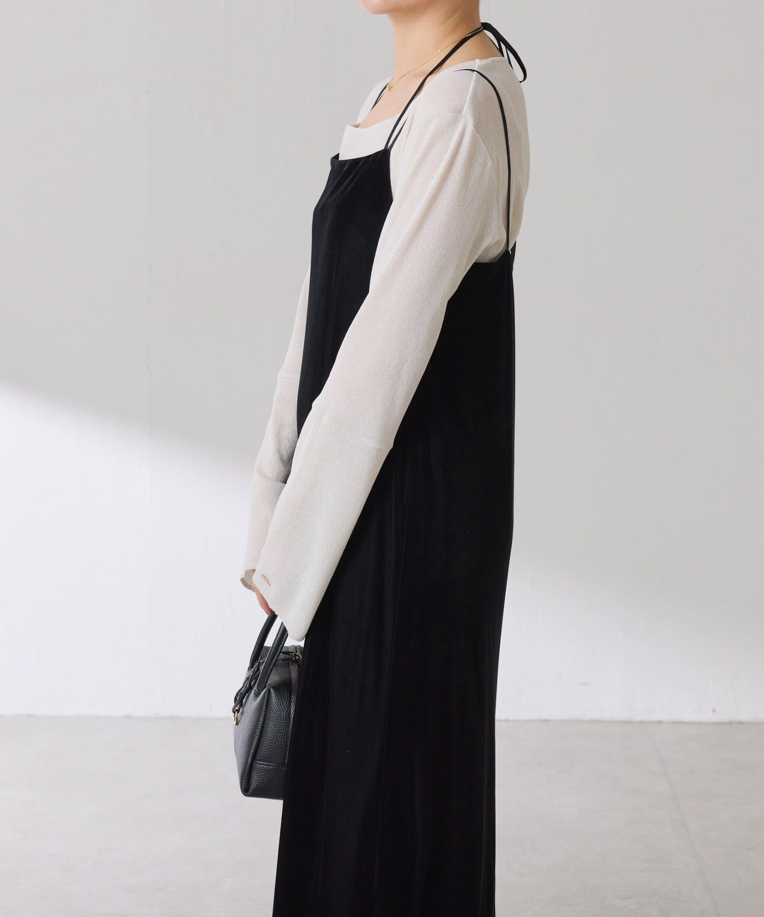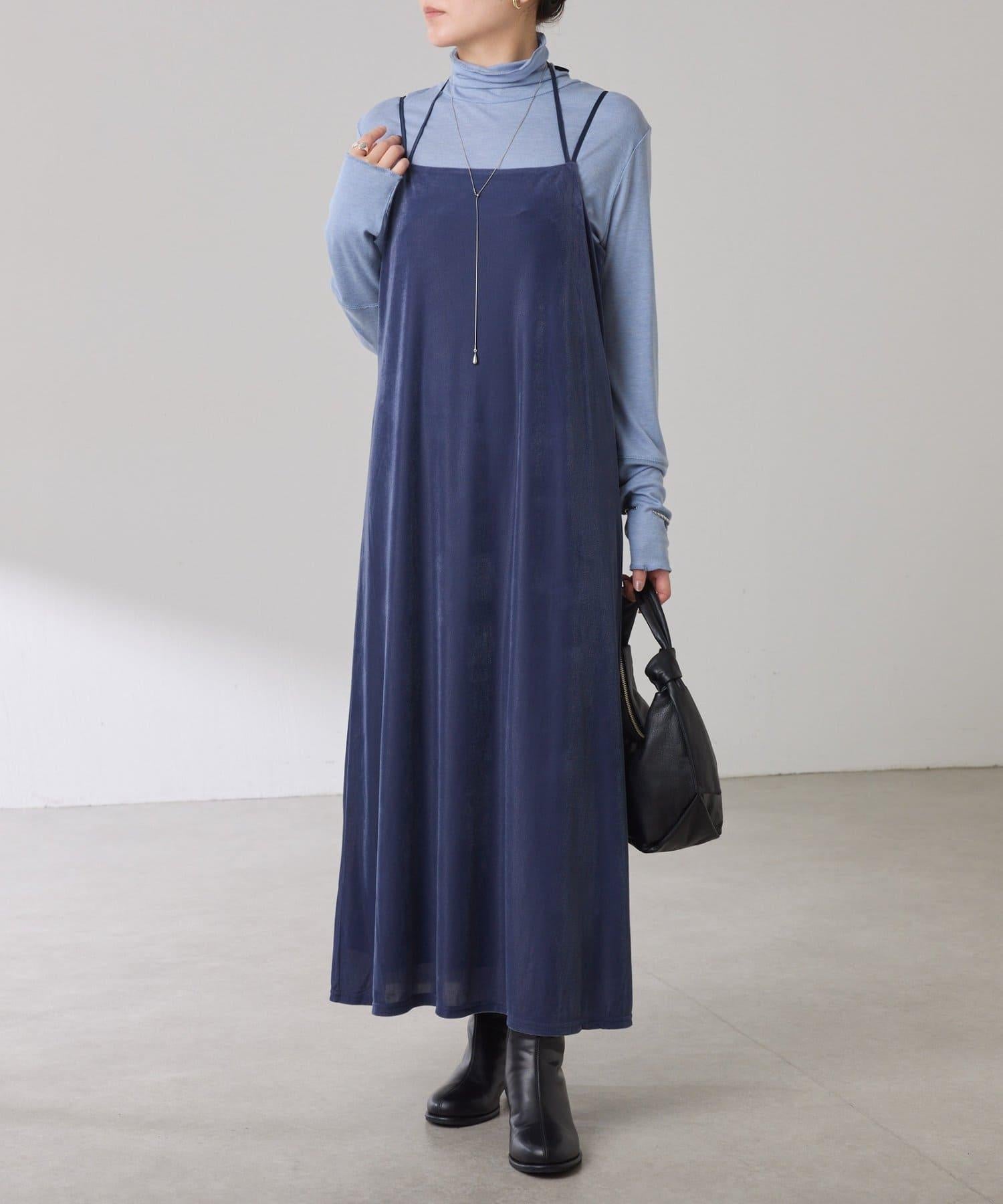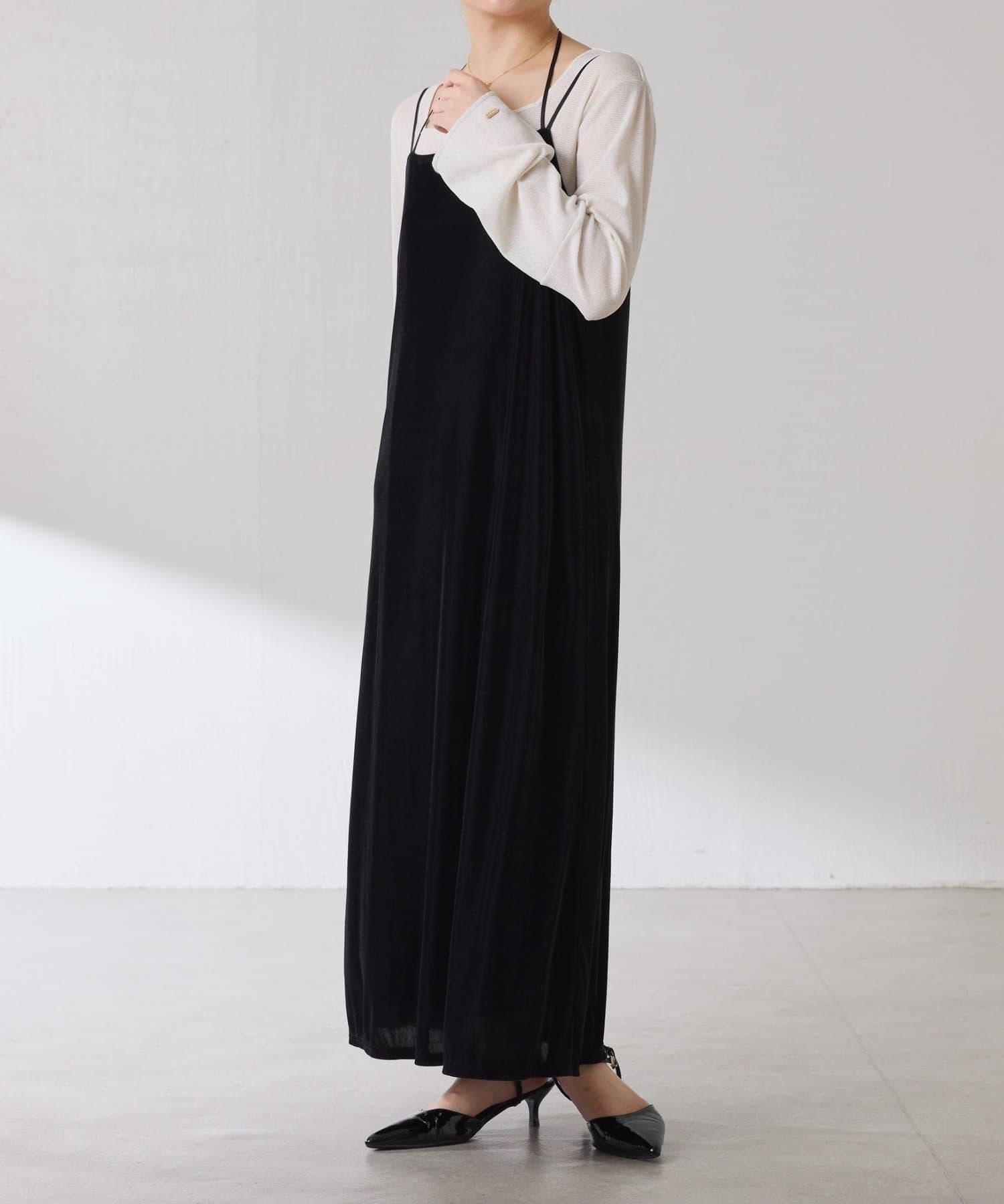 這款天鵝絨吊帶連衣裙採用清新的吊帶設計。